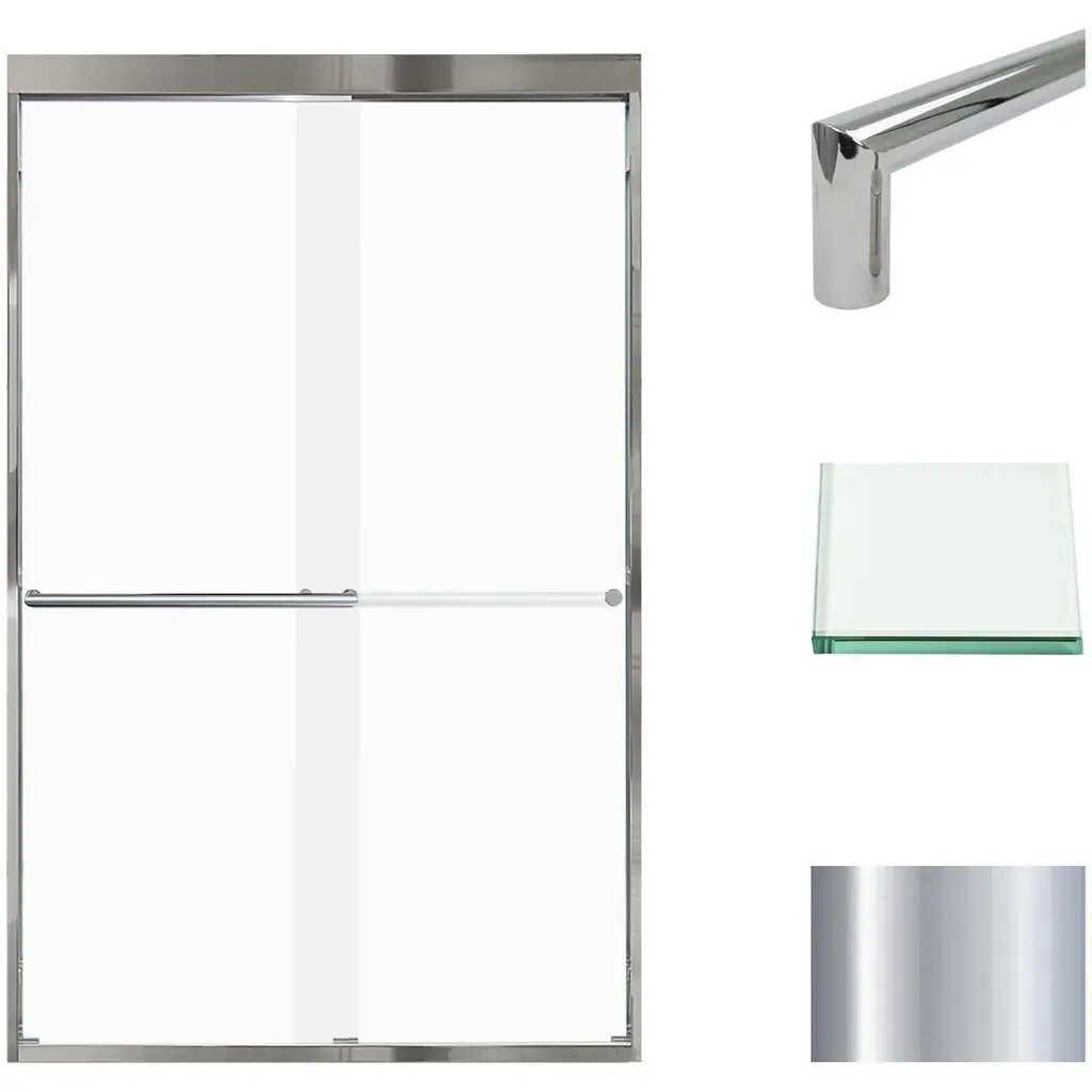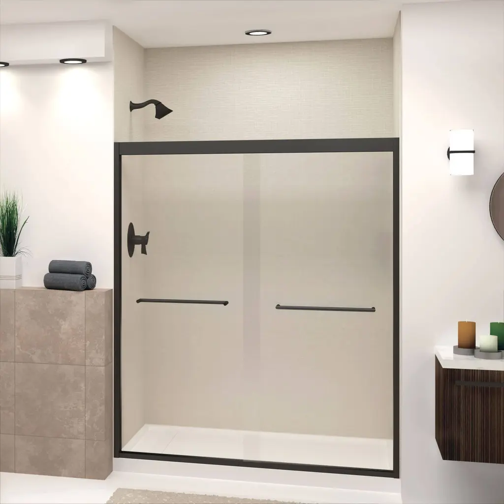 The Transolid Frederick Semi-Frameless By-Pass Shower Door Collection combines the practicality of a space saving design with custom quality craftsmanship. The collection features thick, premium 5/16 in. (8mm) clear tempered glass with professionally applied Nano clear glass coating, which provides superior dirt and water repellant and stain resistant benefits. TruMotion® technology makes our shower doors close softly and effortlessly no matter how hard you slam them or how heavy they are and the Frederick door provides up to 2/5 in. of out-of-plumb adjustability on each side to provide a watertight fit in your alcove. The Frederick Door is available in a wide array of width and height options with several desirable hardware finish options to match your bathroom's interior design and layout perfectly. Built for an alcove (3-wall) shower enclosure, sliding glass shower doors can be opened from left or right with its full by-pass (both panels slide) design. 20 in. (500 mm from center to center) sliding shower door handles also function as towel bars, providing handy storage space for a folded bath towel or two hand towels. Multiple Transolid handle options are available, but this combination features the traditional Turin handles. The Turin handles are part of the Meridian series and feature a unique, high-end design, adding a distinctive look to your Frederick shower door. These handles are substantial in weight and are every bit as functional as they are beautiful. Look for the matching grab bar to complete the look!Transolid FBPT607008C-T Features: