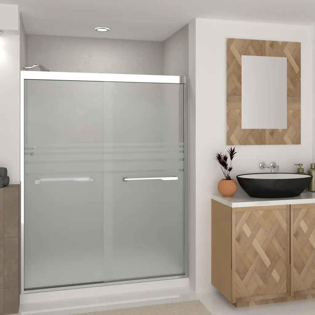 The Transolid Frederick Semi-Frameless By-Pass Shower Door Collection combines the practicality of a space saving design with custom quality craftsmanship. The collection features thick, premium 5/16 in. (8mm) frosted tempered glass with professionally applied Nano Frosted glass coating, which provides superior dirt and water repellant and stain resistant benefits. TruMotion® technology makes our shower doors close softly and effortlessly no matter how hard you slam them or how heavy they are and the Frederick door provides up to 2/5 in. of out-of-plumb adjustability on each side to provide a watertight fit in your alcove. The Frederick Door is available in a wide array of width and height options with several desirable hardware finish options to match your bathroom's interior design and layout perfectly. Built for an alcove (3-wall) shower enclosure, sliding glass shower doors can be opened from left or right with its full by-pass (both panels slide) design. 20 in. (500 mm from center to center) sliding shower door handles also function as towel bars, providing handy storage space for a folded bath towel or two hand towels. Multiple Transolid handle options are available, but this combination features the rustic Justin handles. The Justin handles are part of the Diamond series and feature a unique, high-end design, adding a distinctive look to your Frederick shower door. These handles are substantial in weight and are every bit as functional as they are beautiful. Look for the matching grab bar to complete the look!Transolid FBPT607608F-J Features:Overall Height: 76" (bottom to top of door fixture)