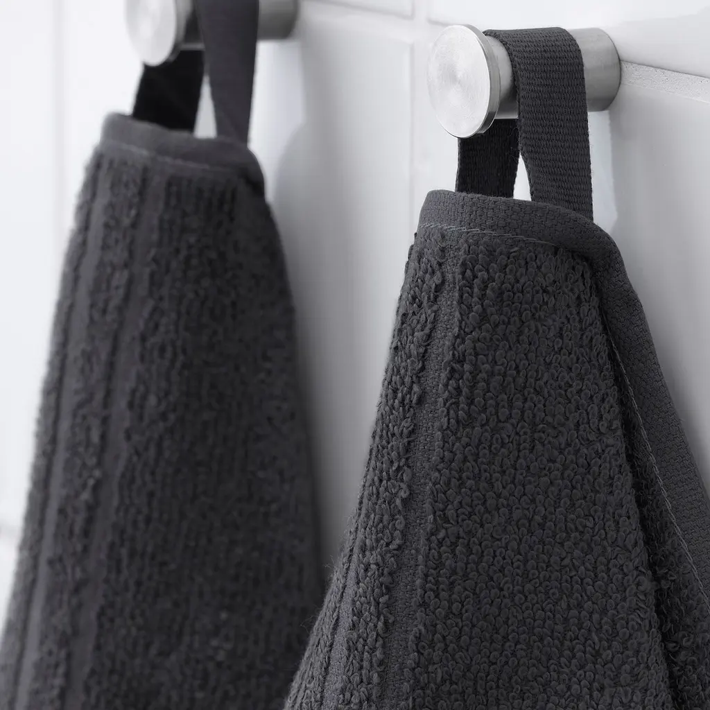 VÅGSJÖN Hand towel - dark gray 16x28 ". A terry towel in medium thickness that is soft and absorbent (weight 400 g/m²). Made of 100% cotton - a natural and durable material that becomes softer with every wash. Available in several sizes. Available in different colors.