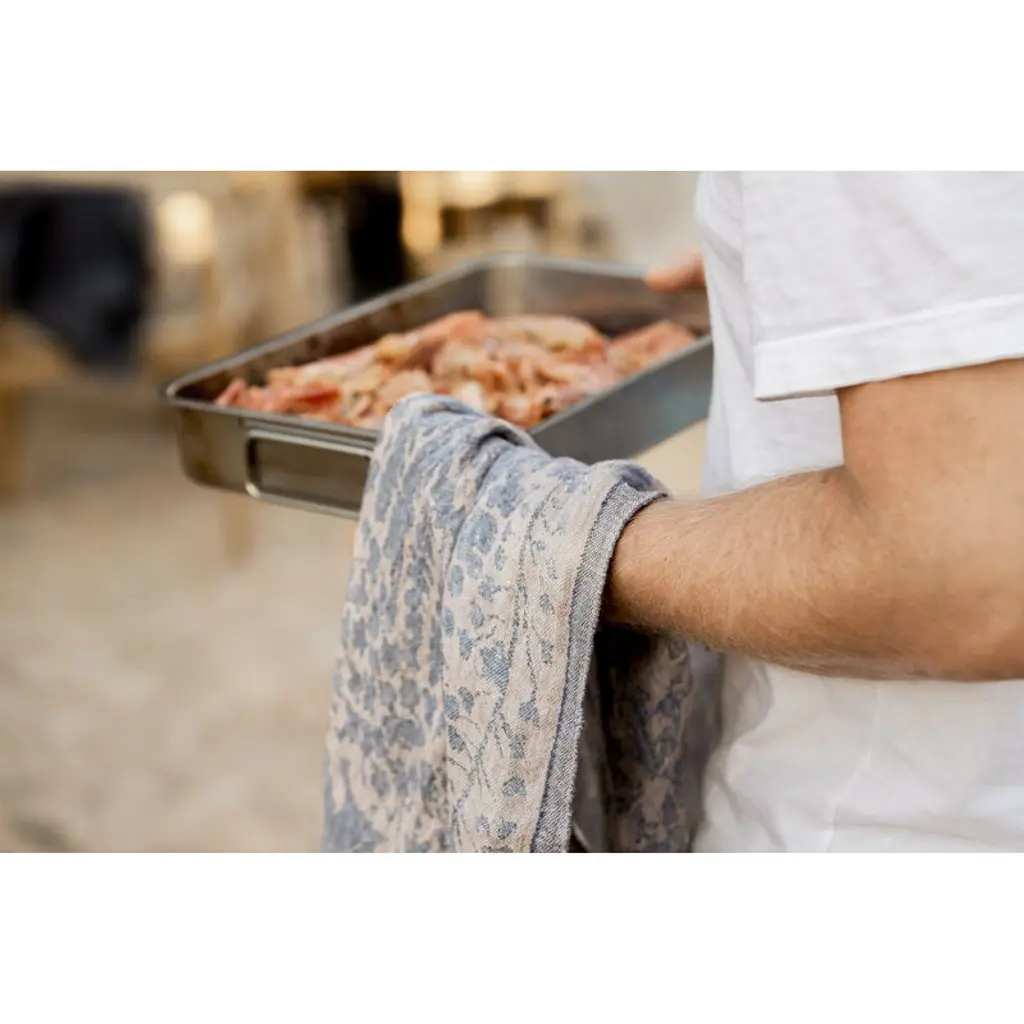 The Villiyrtit hand towel, designed by Matti Pikkujämsä for Lapuan Kankurit, is adorned with a rich, flowing pattern showcasing the delicacies of Finnish nature – "villiyrtit" is Finnish for wild herbs. The pattern is mirrored on the other side in opposite colors. Made from 100% linen, the towel is absorbent, dries quickly and feels pleasant against the skin. The towel has been woven in Finland at the own weaving mill of Lapuan Kankurit.