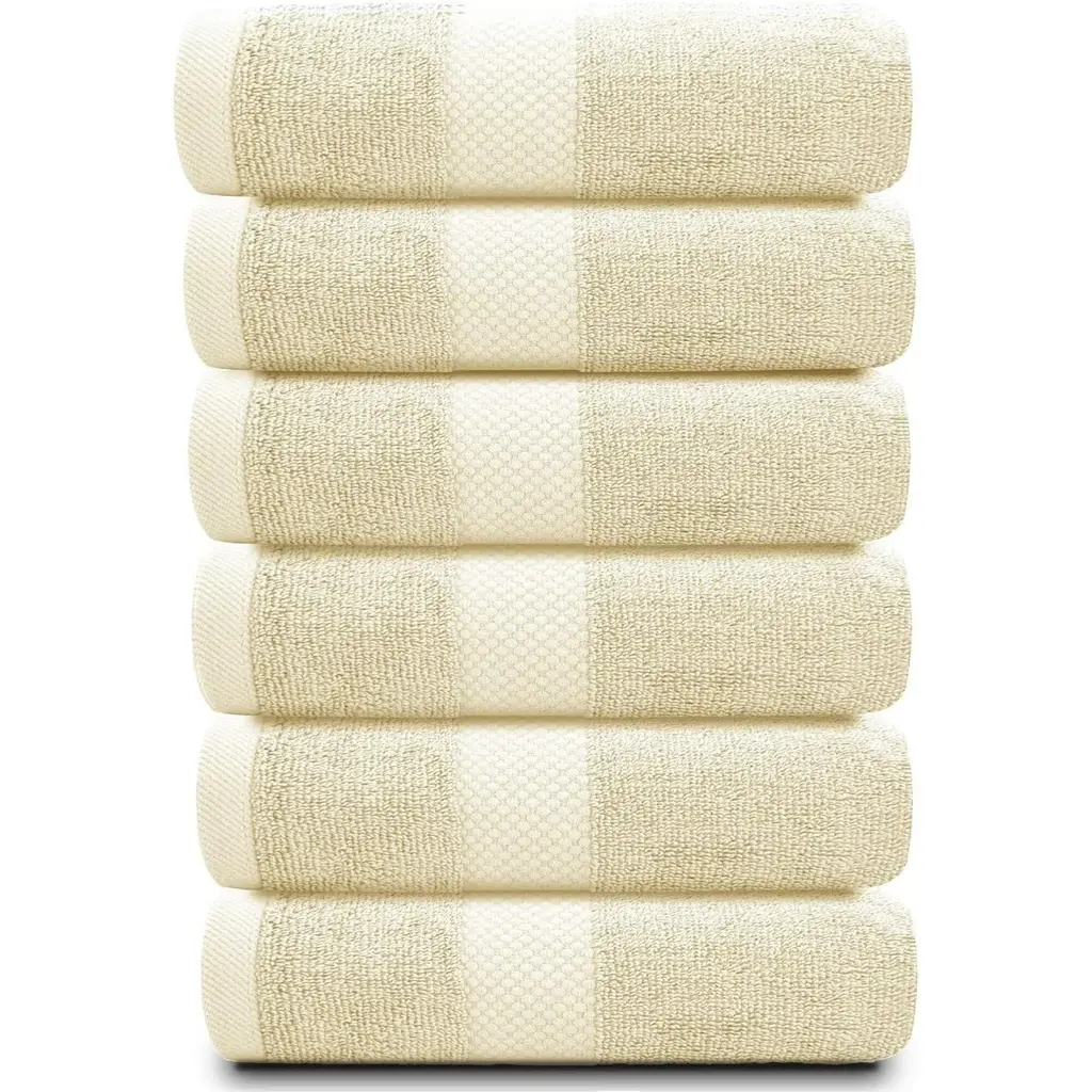 White Classic Luxury Cotton Hand Towel 16x30 - Set Of 6 - Beige