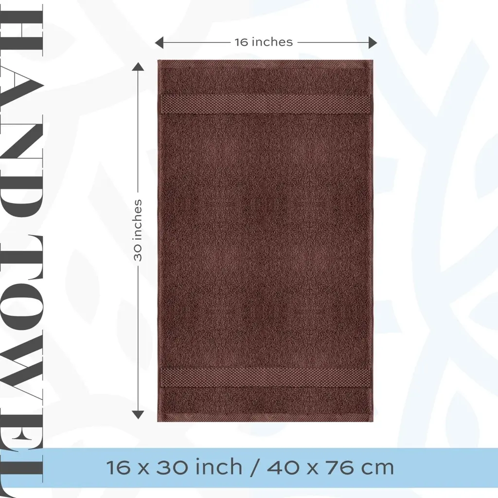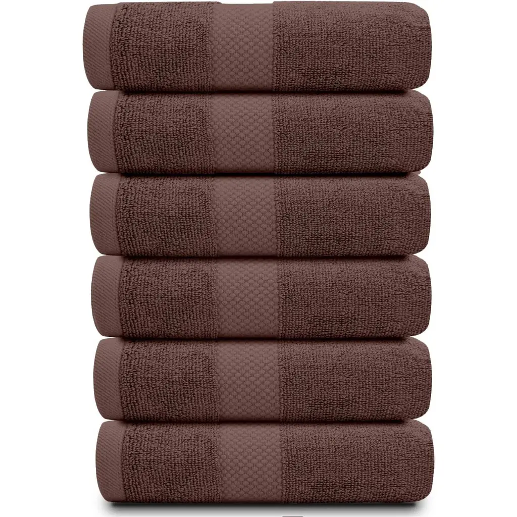 White Classic Luxury Cotton Hand Towel 16x30 - Set Of 6 - Brown