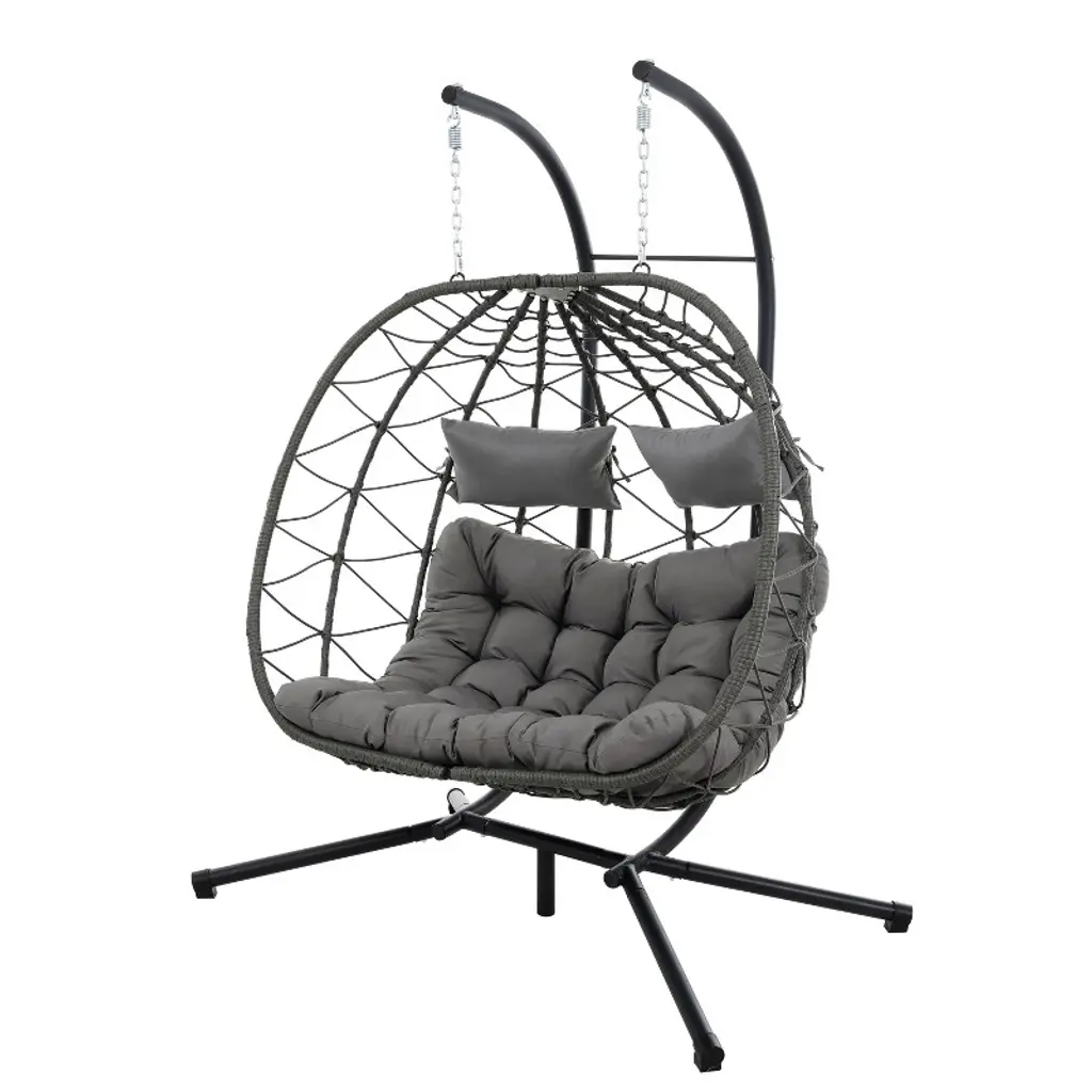 Koro Grey Metal Wicker Outdoor Hanging Double Egg Chair | Fabric | Solid