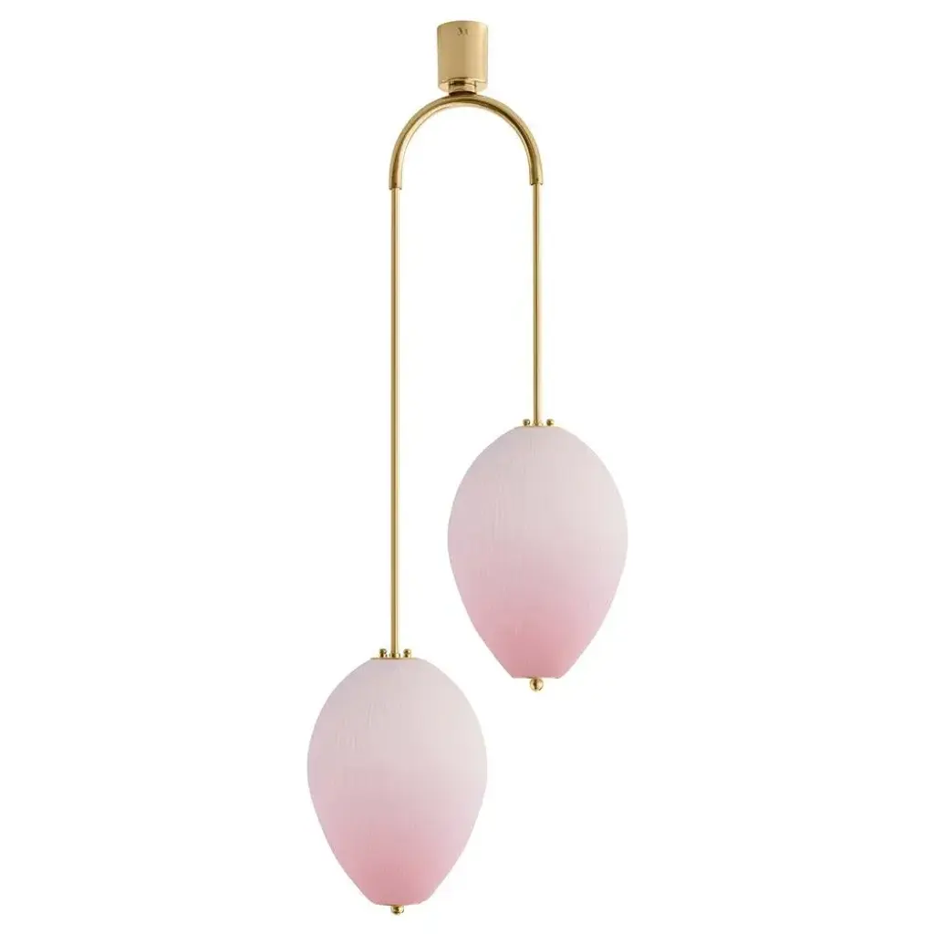 Double chandelier china 10 by magic circus editions dimensions: h 121.5 x w 44.3 x d 25.2 cm materials: brass, mouth blown glass sculpted with a diamond saw colour: soft rose available finishes: brass, nickel available colours: enamel soft white, soft rose, jade green, mustard yellow, rich grey, opal grey all our lamps can be wired according to each country. If sold to the usa it will be wired for the usa for instance. up to 250v (europe/uk standard).