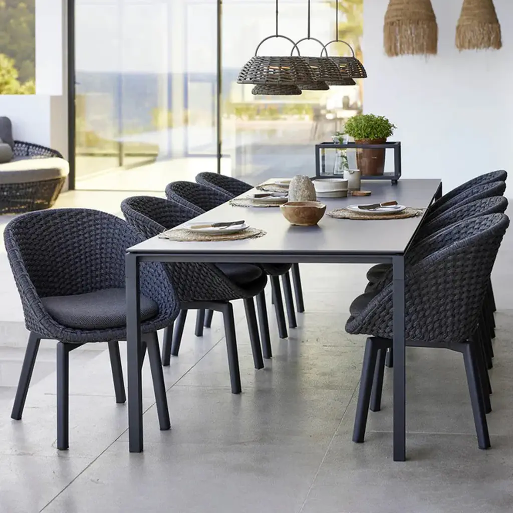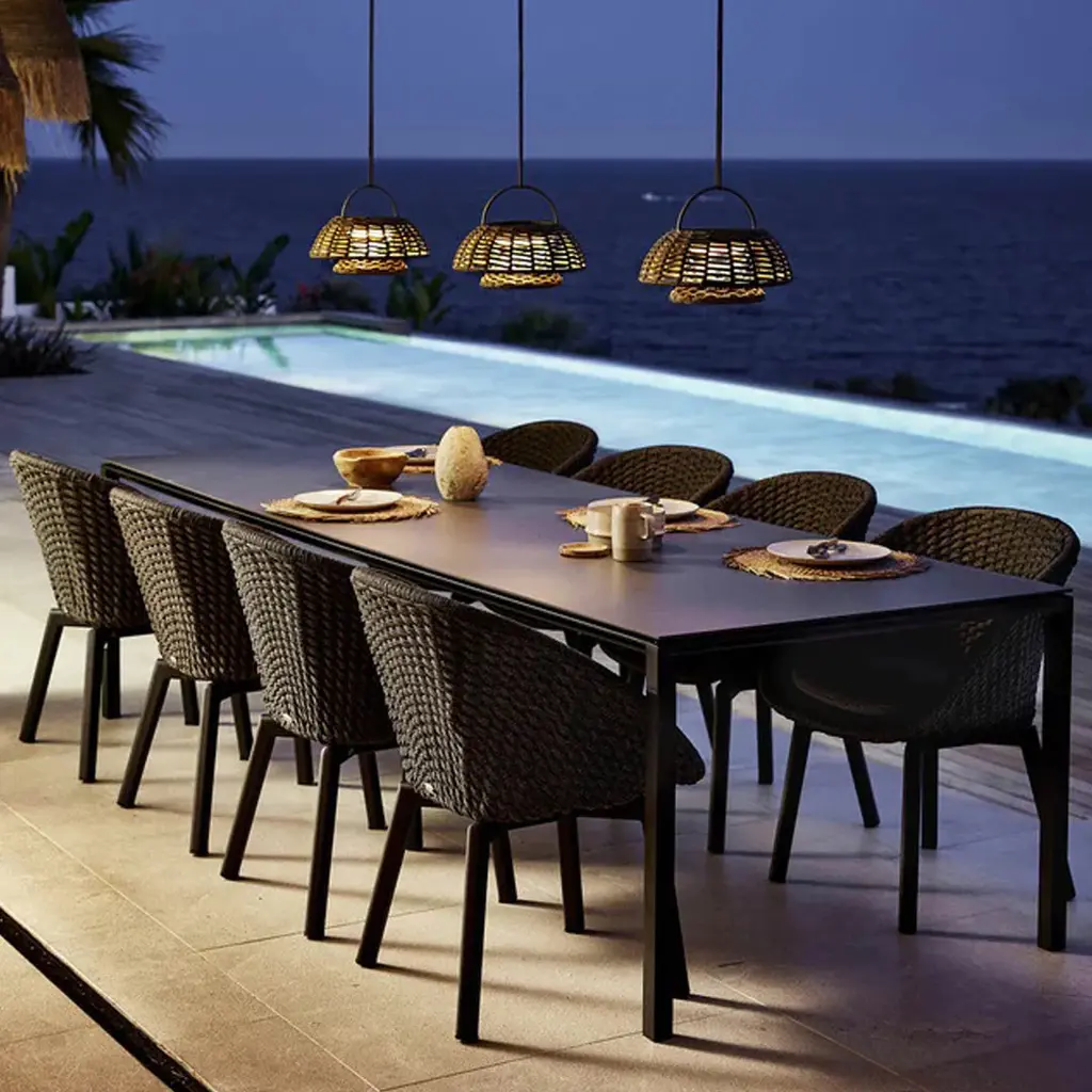 Create a cosy and homey atmosphere in your outdoor space with the Illusion hanging lamp. The decorative lamp is designed by Cane-line Design. It has a vibrant and elegant wicker pattern paired with the durable and weather-resistant material, Cane-line Soft Rope, which adds a soft touch to the appearance. The Illusion lamp is an excellent accessory to frame specific areas in your outdoor space, such as the dining area, lounge area or everywhere else. Prolong the evenings on the terrace with the Illusion lamp, which shed a cosy and homey light to your space. The lamp includes a moveable LED solar unit, which has different light settings that can be adjusted with the remote. The sleek and elegantly stand is made from powder-coated aluminium, a practical add-on for the Illusion hanging lamp. Prolong the evenings on the terrace and shed a cosy light with Illusion lamp.