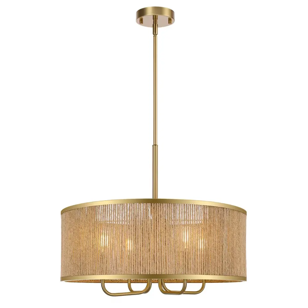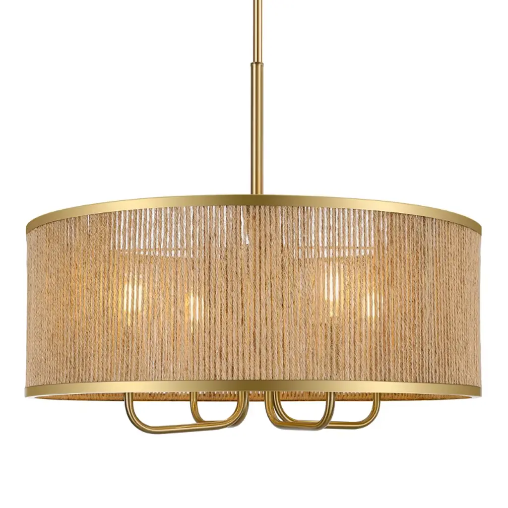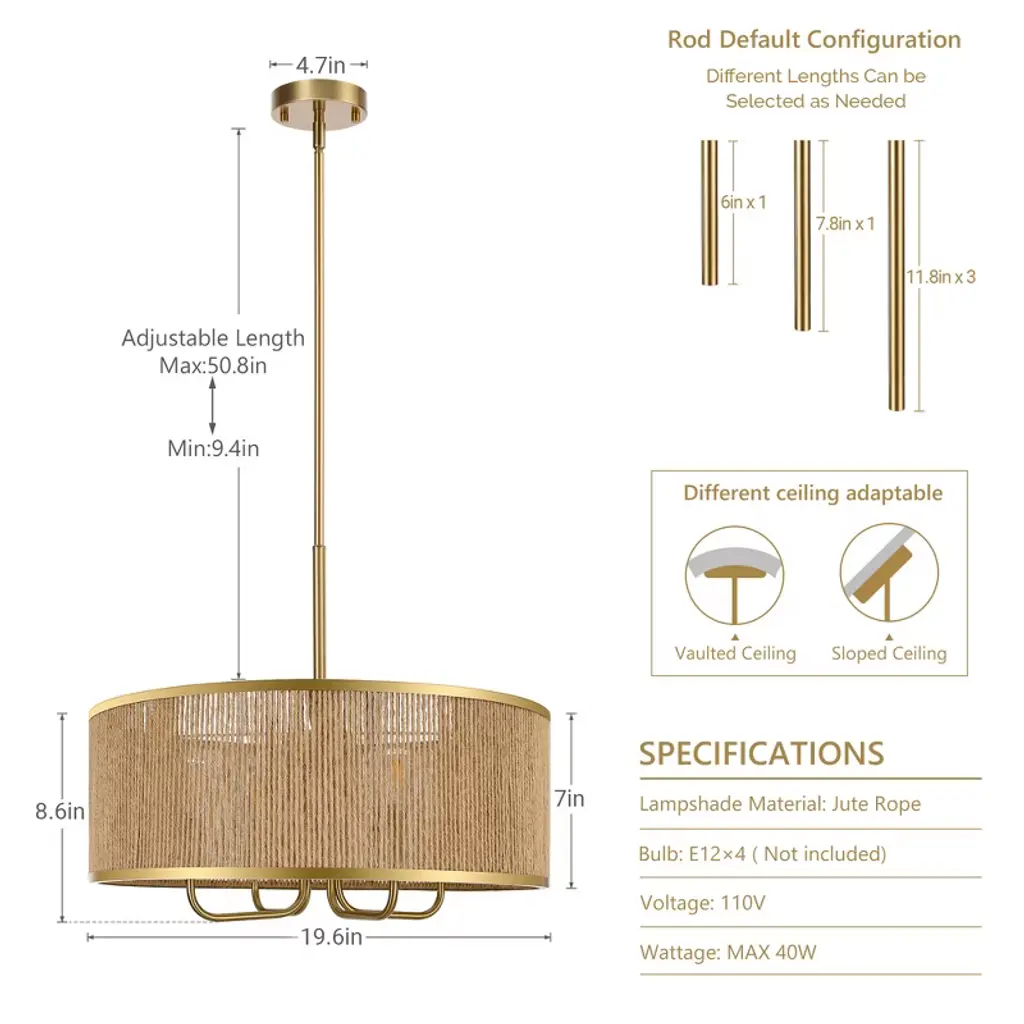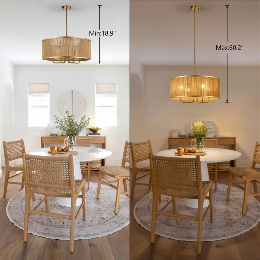 Lamqee Farmhouse Rattan Chandeliers 4 Lights Boho Ceiling Hanging Lighting With Hand Woven Hemp Rope Shade Pendant Lights