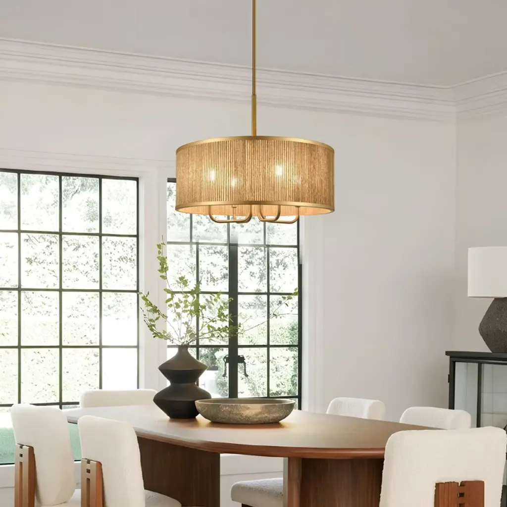 LamQee golden electroplated metal frame adds a touch of refinement, perfectly balancing the natural, textured appeal of the genuine jute lampshade—creating a harmonious contrast that catches the eye instantly. When lit, warm light filters gently through the gaps of the jute, casting soft, inviting glows that fill your room with a cozy, welcoming atmosphere, ideal for dining areas, living rooms, or entryways.Crafted from high-quality materials, the natural jute lampshade boasts authentic, earthy textures and a warm touch, infusing your space with the warmth of handcrafted artistry