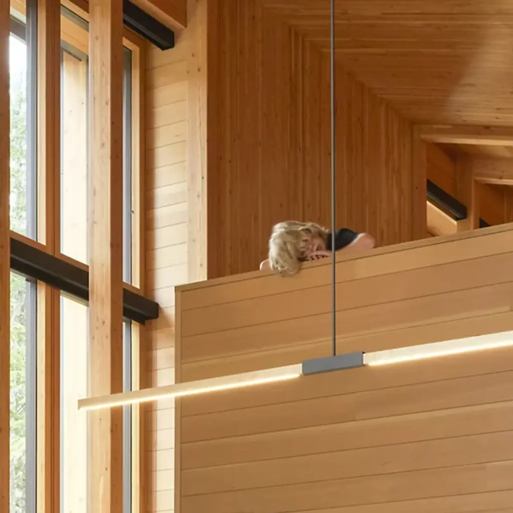 There's more than meets the eye with the 6 Foot LED Linear Suspension from Stickbulb. Standing out in the minimalist beauty of its contemporary design is its sophisticated modular abilities. Two neatly cut segments of fine and textured wood are nestled inside a clean, metal hardware. Open its clamps and shift the natural, linear forms upwards and downwards. This shift in directions allows for a clean downlight onto the surface below or an evocative upplight that glazes the ceiling.
