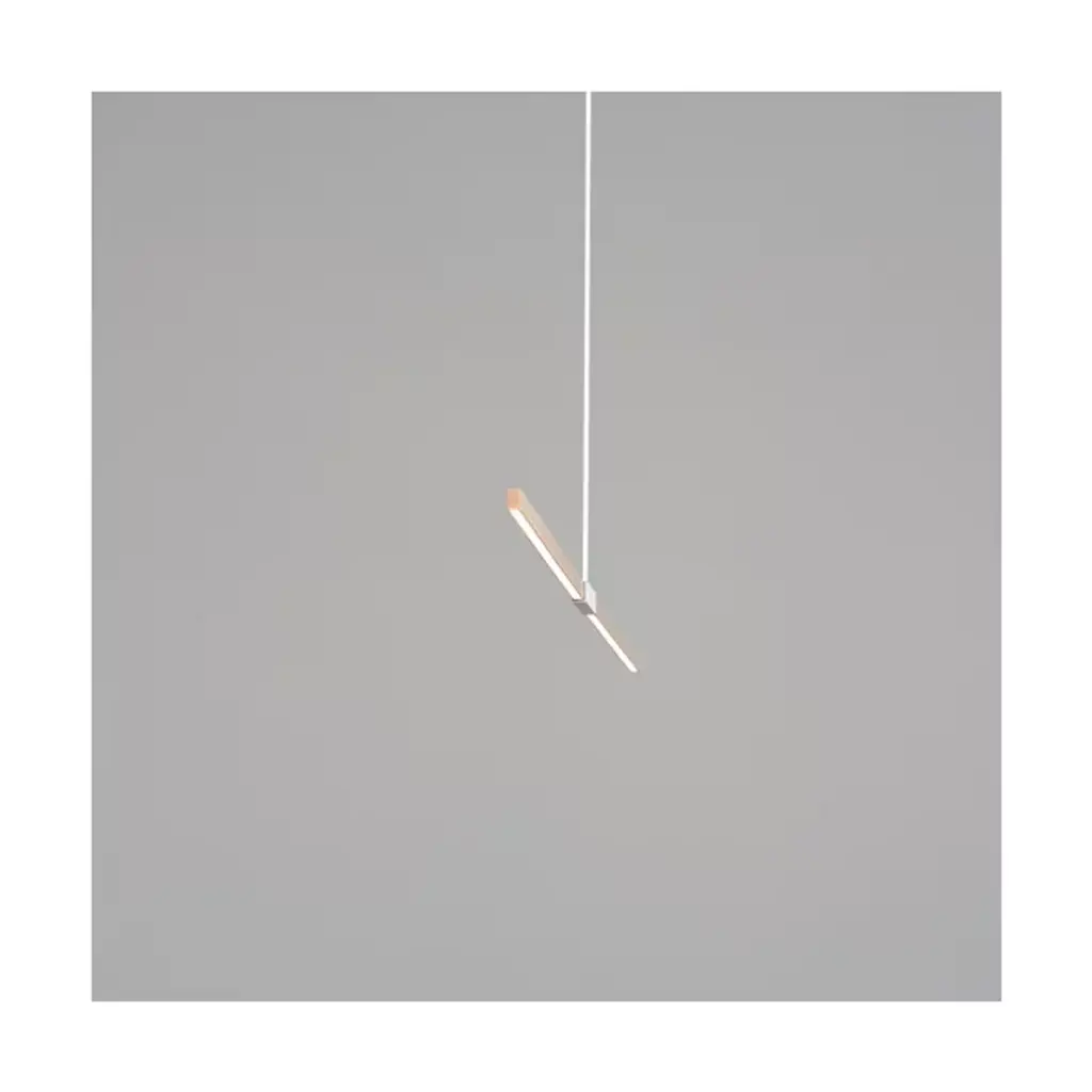 Be treated with an evocative, upward glow or a clean and uniform downlight in the multi-faceted design of the 8 Foot LED Linear Suspension from Stickbulb. It's a wholly contemporary piece, versatile in nature, underlined by the clamping mechanism hidden in its neat metal body. This design detail adds to the upward or downward configuration of its two beautifully textured wooden forms, lined on their narrow side with a strip of LEDs. The geometrically perfect angles of the piece make it a stunning architectural composition.