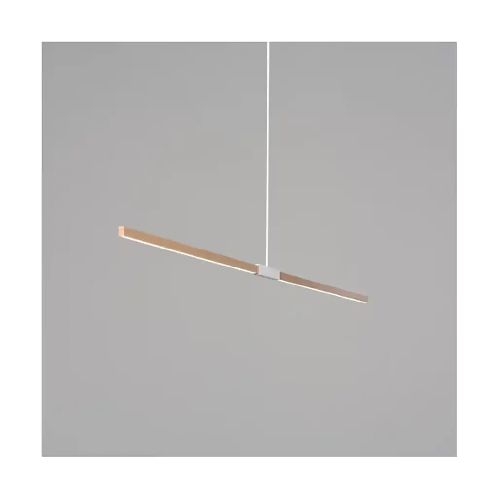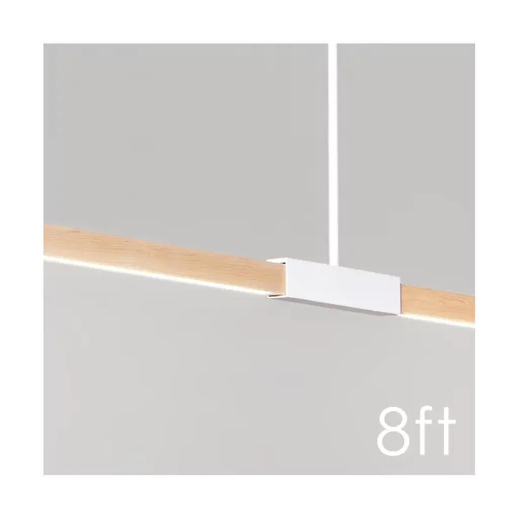 Be treated with an evocative, upward glow or a clean and uniform downlight in the multi-faceted design of the 8 Foot LED Linear Suspension from Stickbulb. It's a wholly contemporary piece, versatile in nature, underlined by the clamping mechanism hidden in its neat metal body. This design detail adds to the upward or downward configuration of its two beautifully textured wooden forms, lined on their narrow side with a strip of LEDs. The geometrically perfect angles of the piece make it a stunning architectural composition.