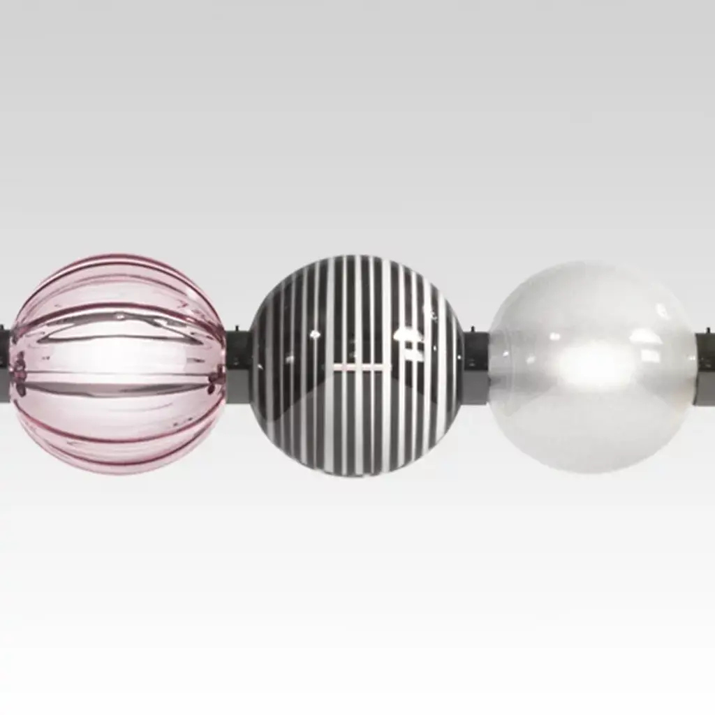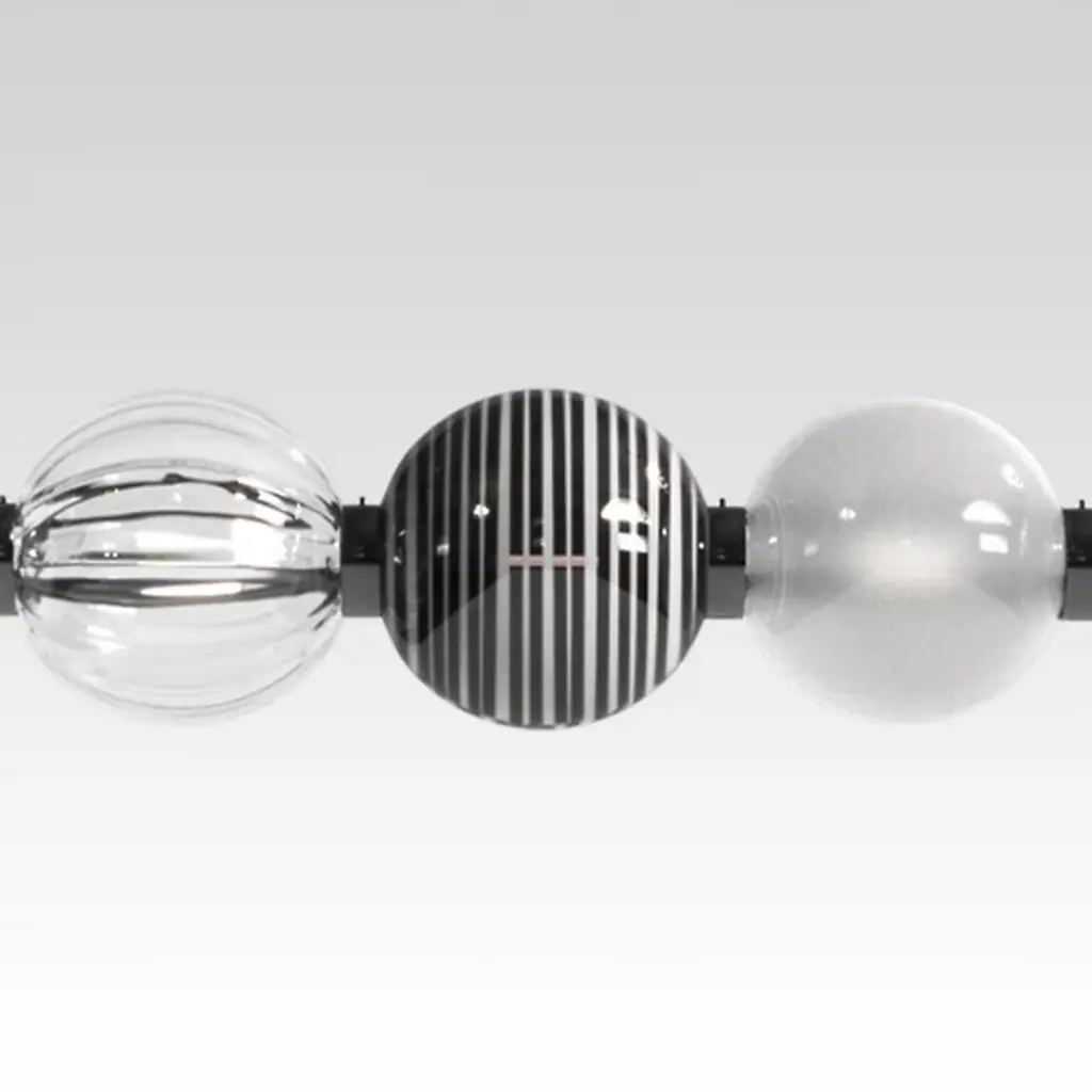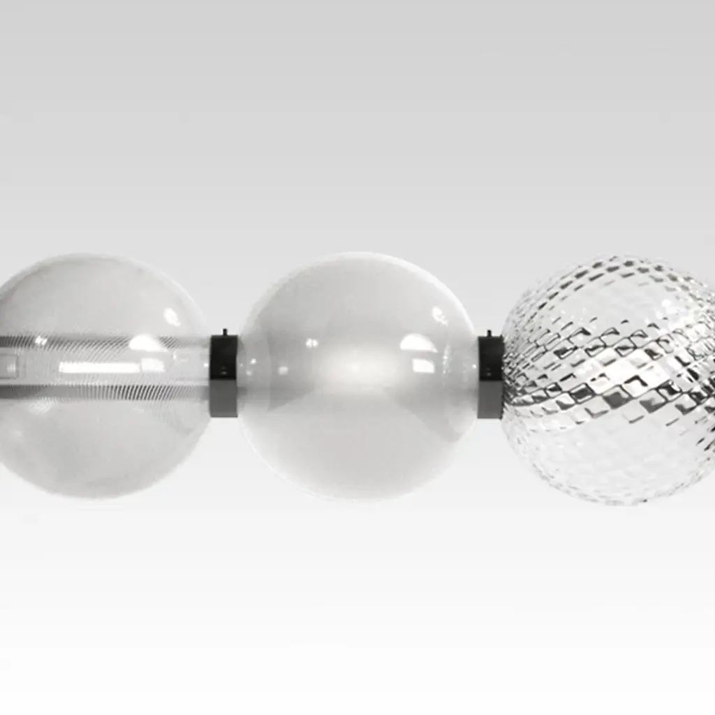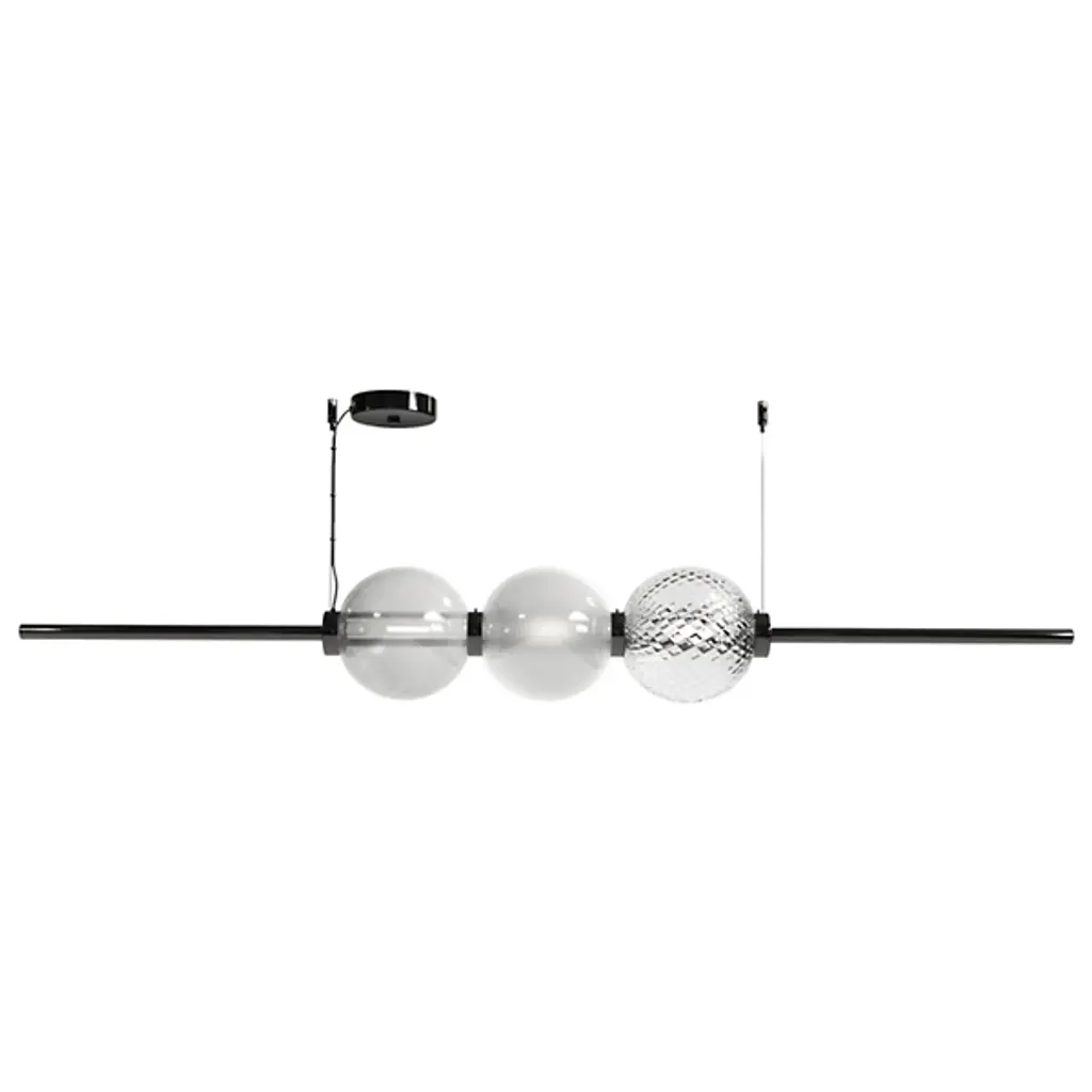 The Abaco Linear Suspension from Venini brings artistic flair to your home décor. This beautiful fixture is designed by Guggisberg & Balwdin, a design duo originating from Sweden who spent decades honing their craft, designing lamps and vases which were aesthetically pleasing as well as functional. Abaco adheres to the tenets of these designers. Crafted in the Italian style, this linear suspension features globes of the finest glass, which boast frosted and geometrically patterned surfaces, giving your linear suspension a bejeweled sensibility.