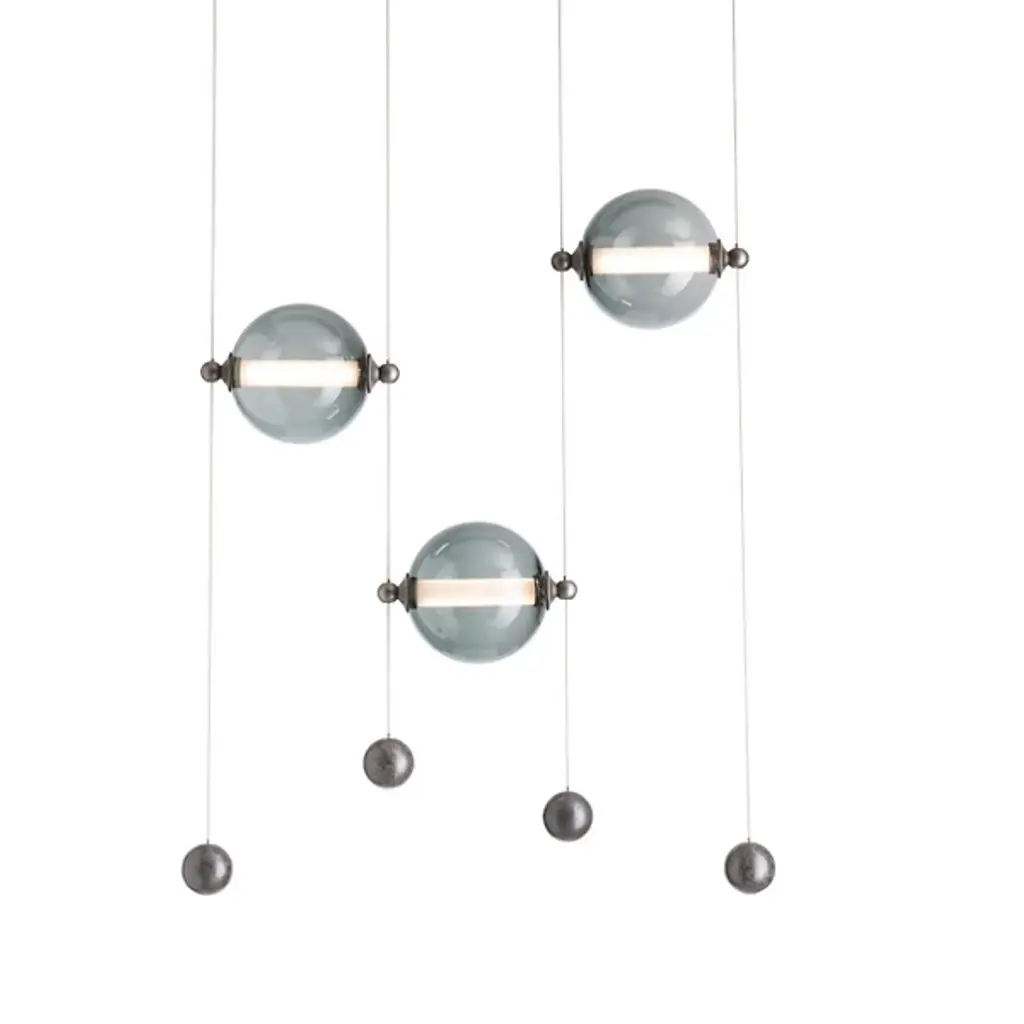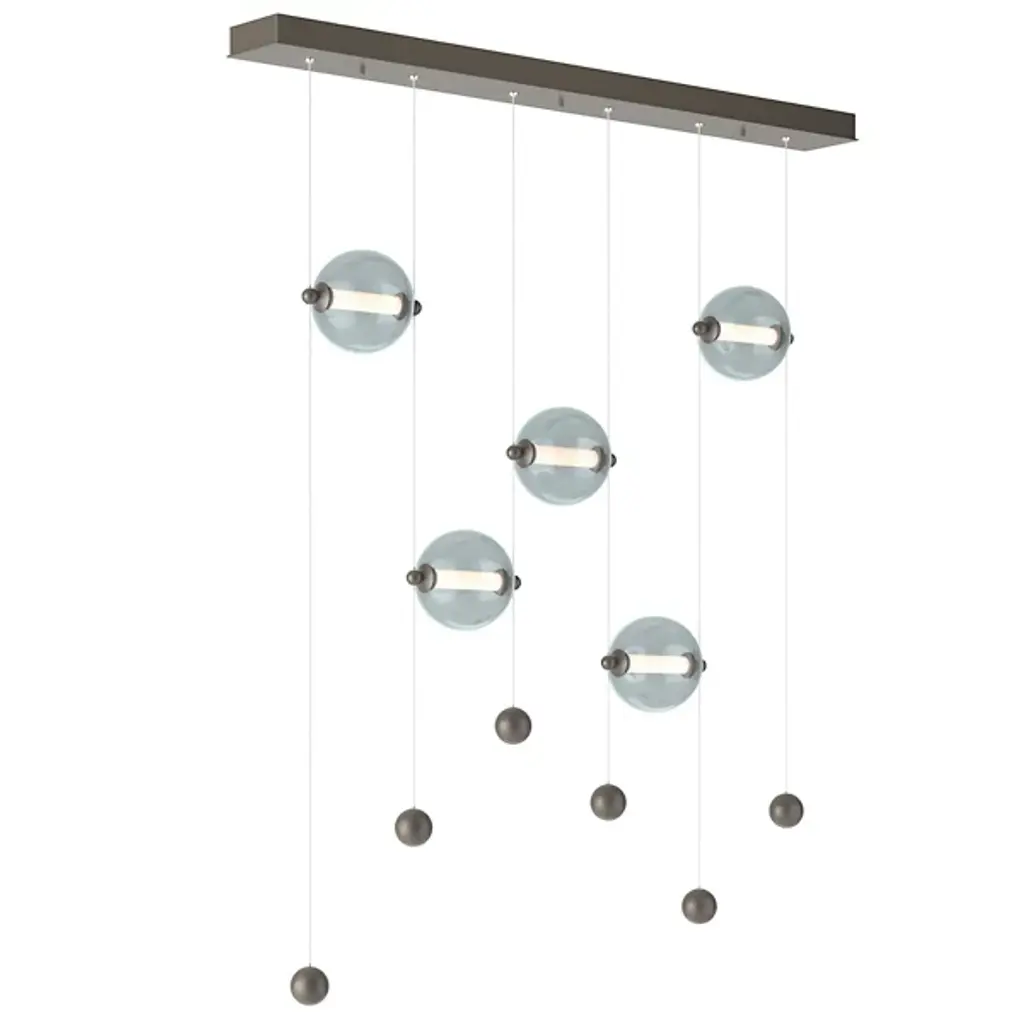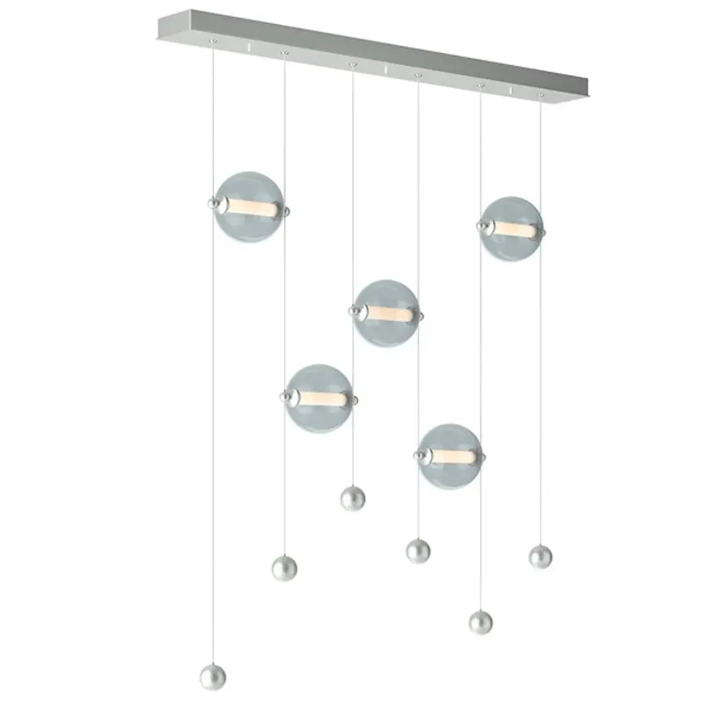Immediately inviting and eye-catching. The Abacus LED Linear Suspension from Hubbardton Forge is a stunning modern display that elegantly and evenly lights any room, matching a range of modern home decors. A thick rectangular ceiling mount presents four thin wires, each one capped off by smooth orbs. Throughout the piece hang clear spheres, seemingly floating as they delicately attach to the wires. Within each sphere is a crisp glow, created by an integrated, energy-efficient LED within a glass cylinder. Each piece contributes to the spread of an even, warm glow throughout the space, enchanting your modern space.