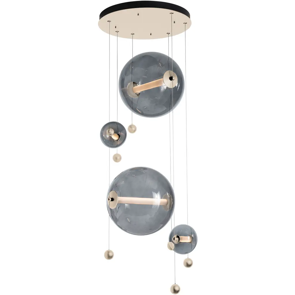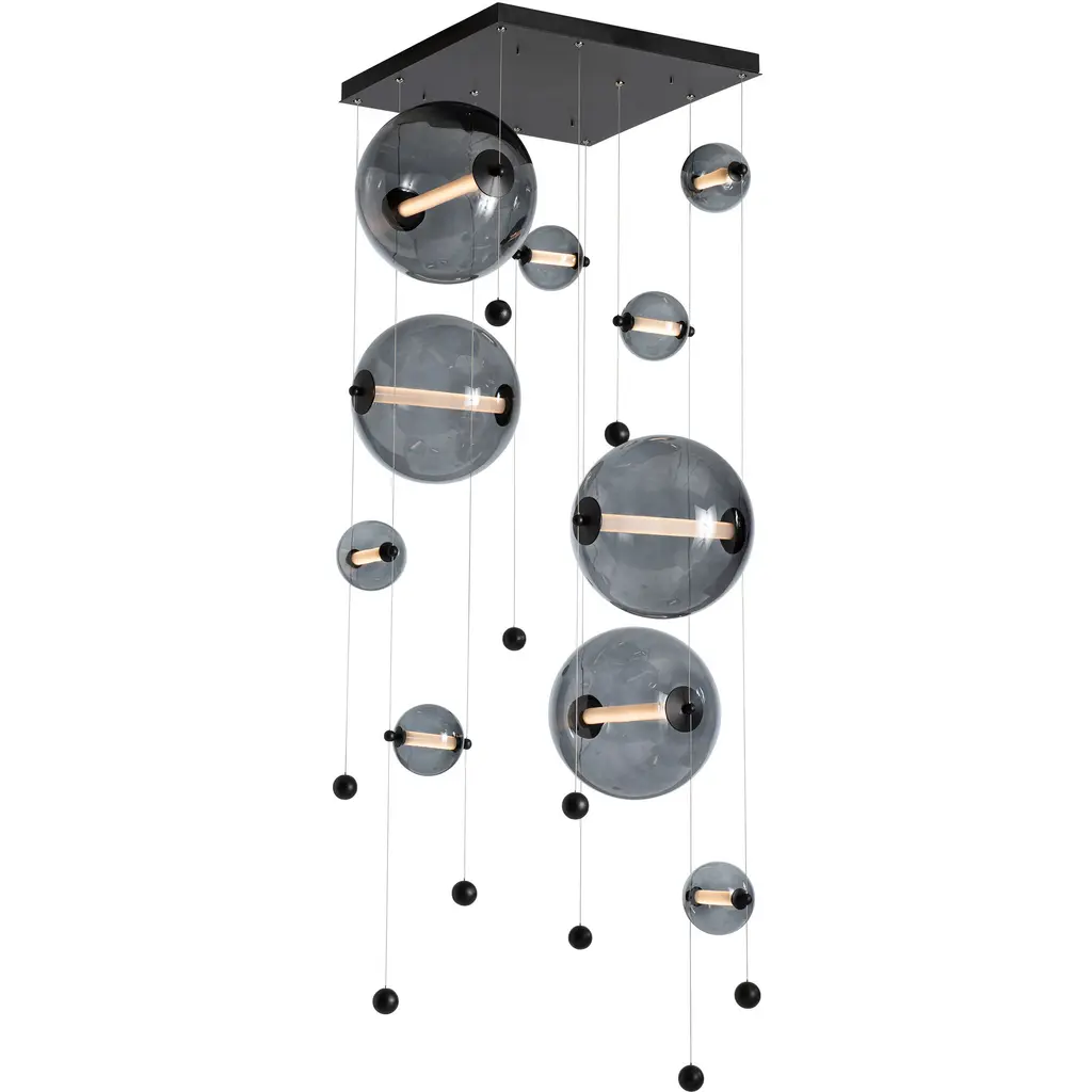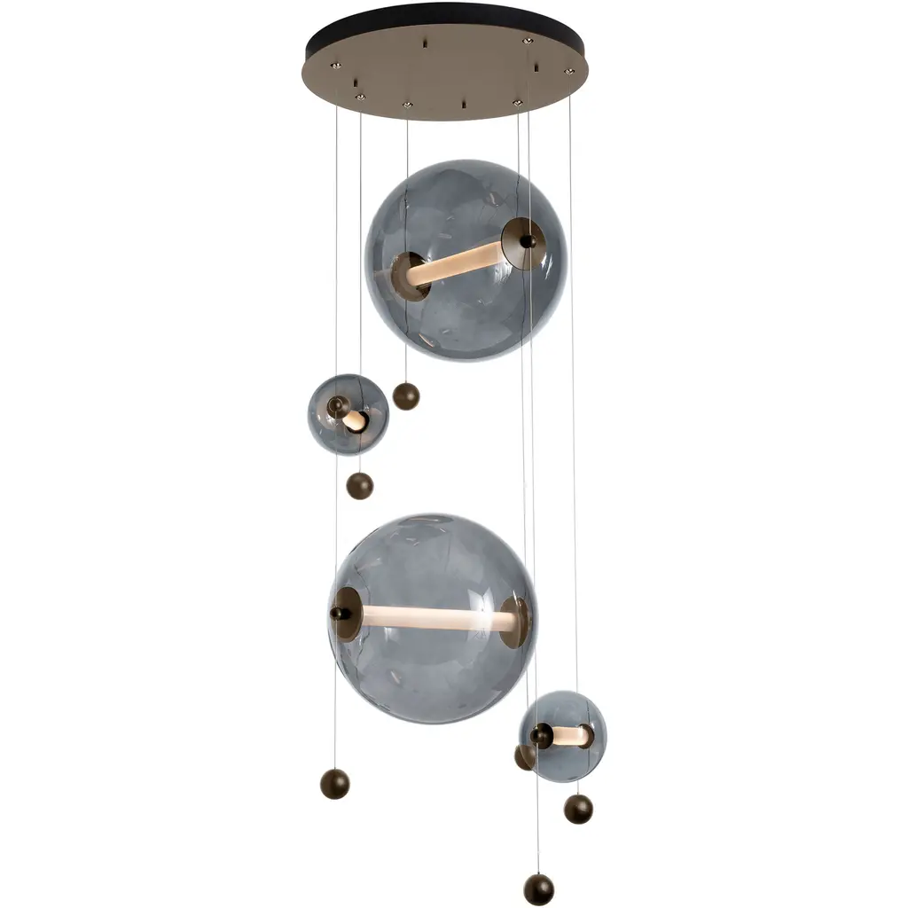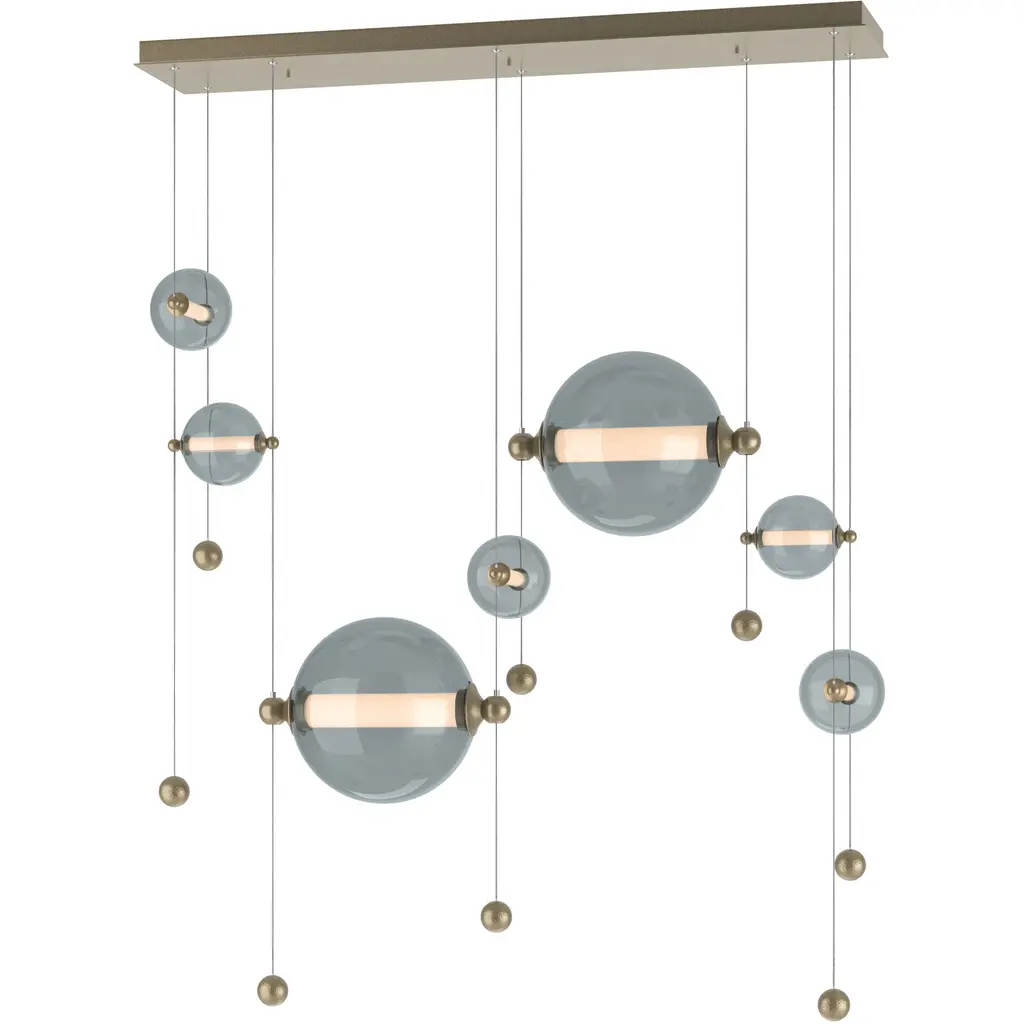 Immediately inviting and eye-catching. The Abacus LED Linear Suspension from Hubbardton Forge is a stunning modern display that elegantly and evenly lights any room, matching a range of modern home decors. A thick rectangular ceiling mount presents four thin wires, each one capped off by smooth orbs. Throughout the piece hang clear spheres, seemingly floating as they delicately attach to the wires. Within each sphere is a crisp glow, created by an integrated, energy-efficient LED within a glass cylinder. Each piece contributes to the spread of an even, warm glow throughout the space, enchanting your modern space.