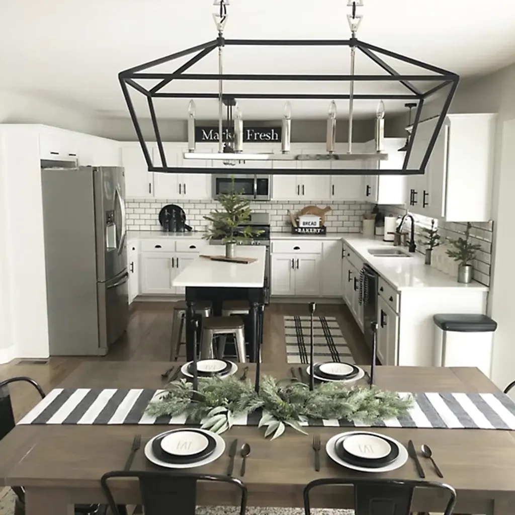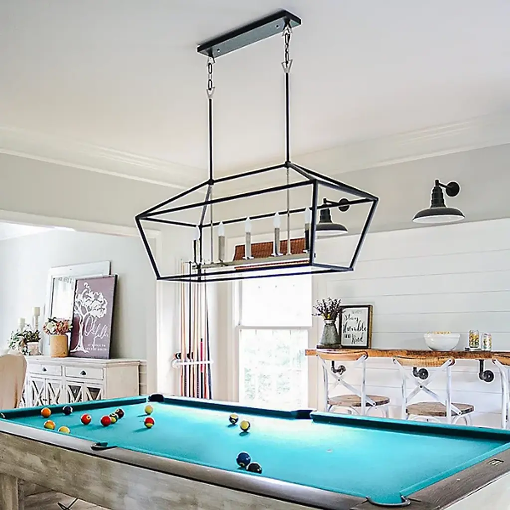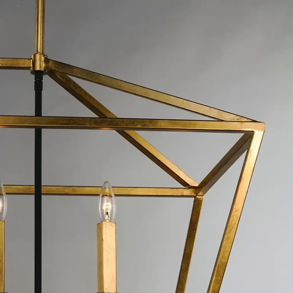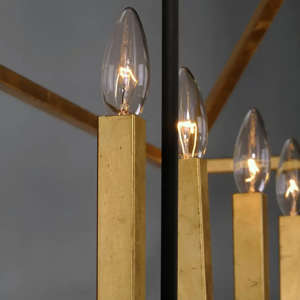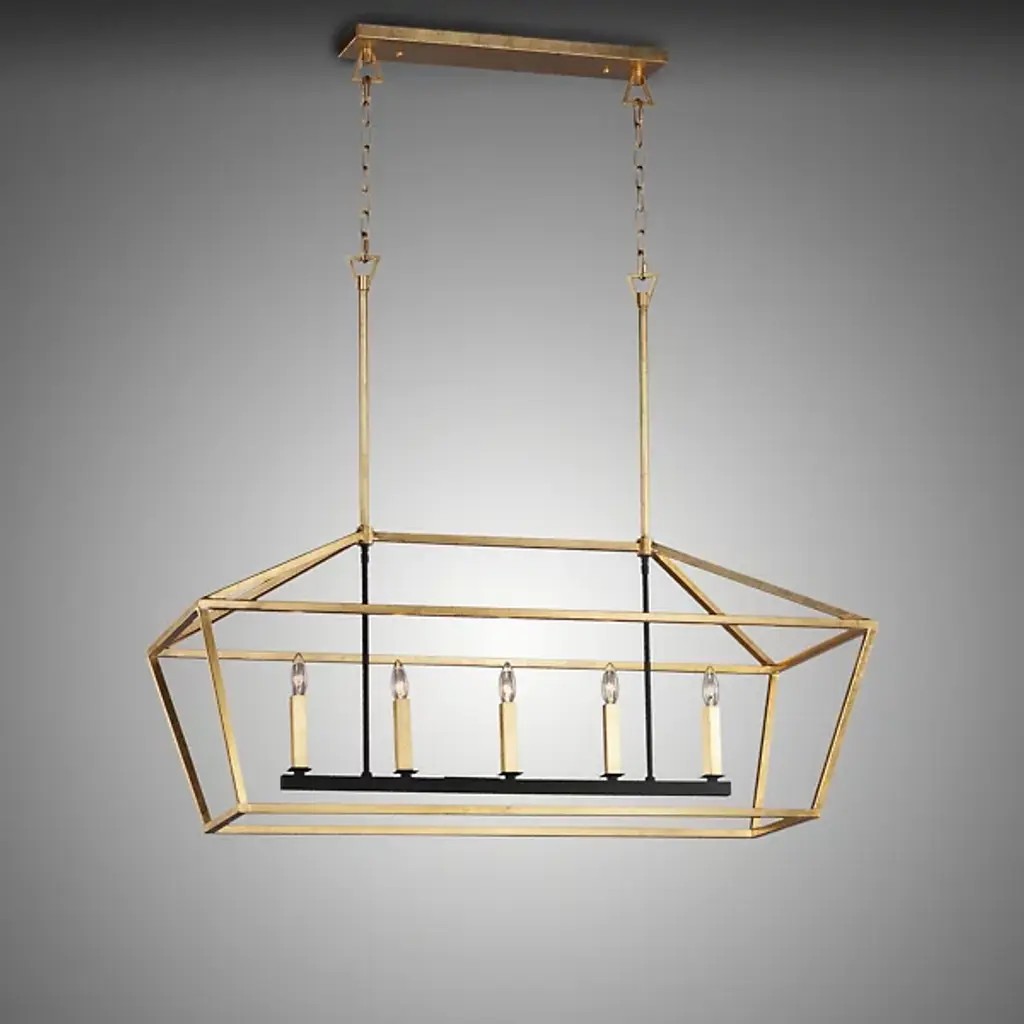 A dramatic effect. The Abode Linear Suspension by Maxim Lighting is simple yet striking. Its caged shade frames a streamlined candelabra for clean lines and an open, airy look. Suiting contemporary or transitional dining rooms and kitchens, it's a dimmable ceiling fixture allowing easy control of illumination according to the task or mood. This decorative lighting is perfect over a table, island or bar thanks to its rectangular canopy and suspension hardware with stylish geo accents.