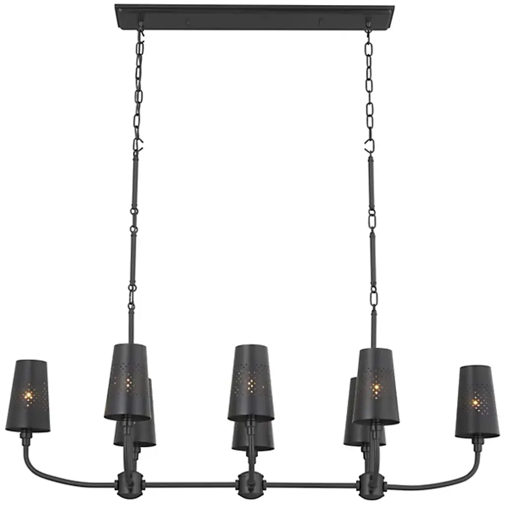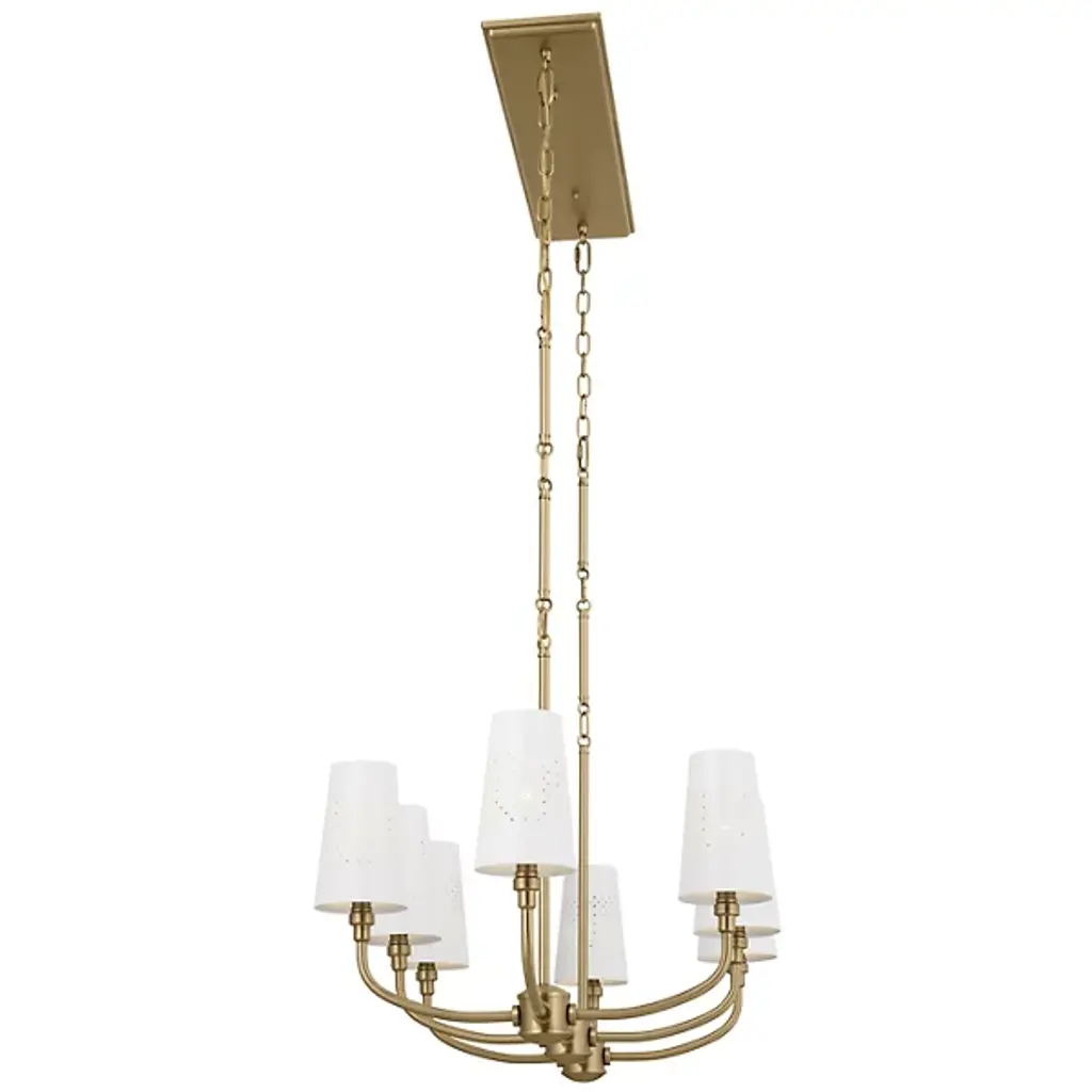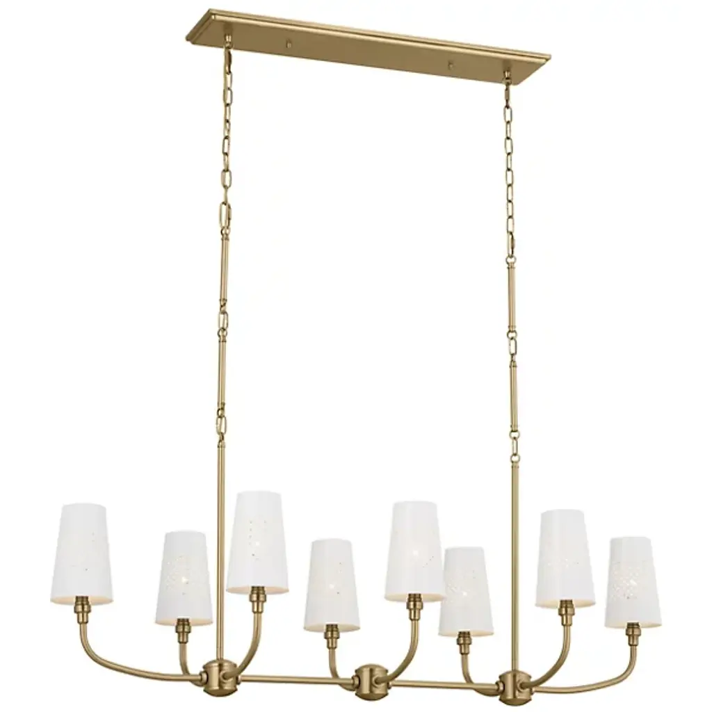 The stylish Adeena Linear Suspension by Kichler is here to illuminate your 21st-century venue. Designed with the same hallmark semi-see-through shades as companion fixtures in the Adeena family, this linear suspension provides ample amounts of light for your living space. Dual chains suspend from a rectangular canopy at your ceiling to facilitate a metal bar’s midair suspension. This bar is lined with multiple groups of wending arms that perfectly balance shades that house incandescent bulbs. This mid-century modern chandelier is sure to fulfill your lightning needs while catching the eyes of your friends and family.