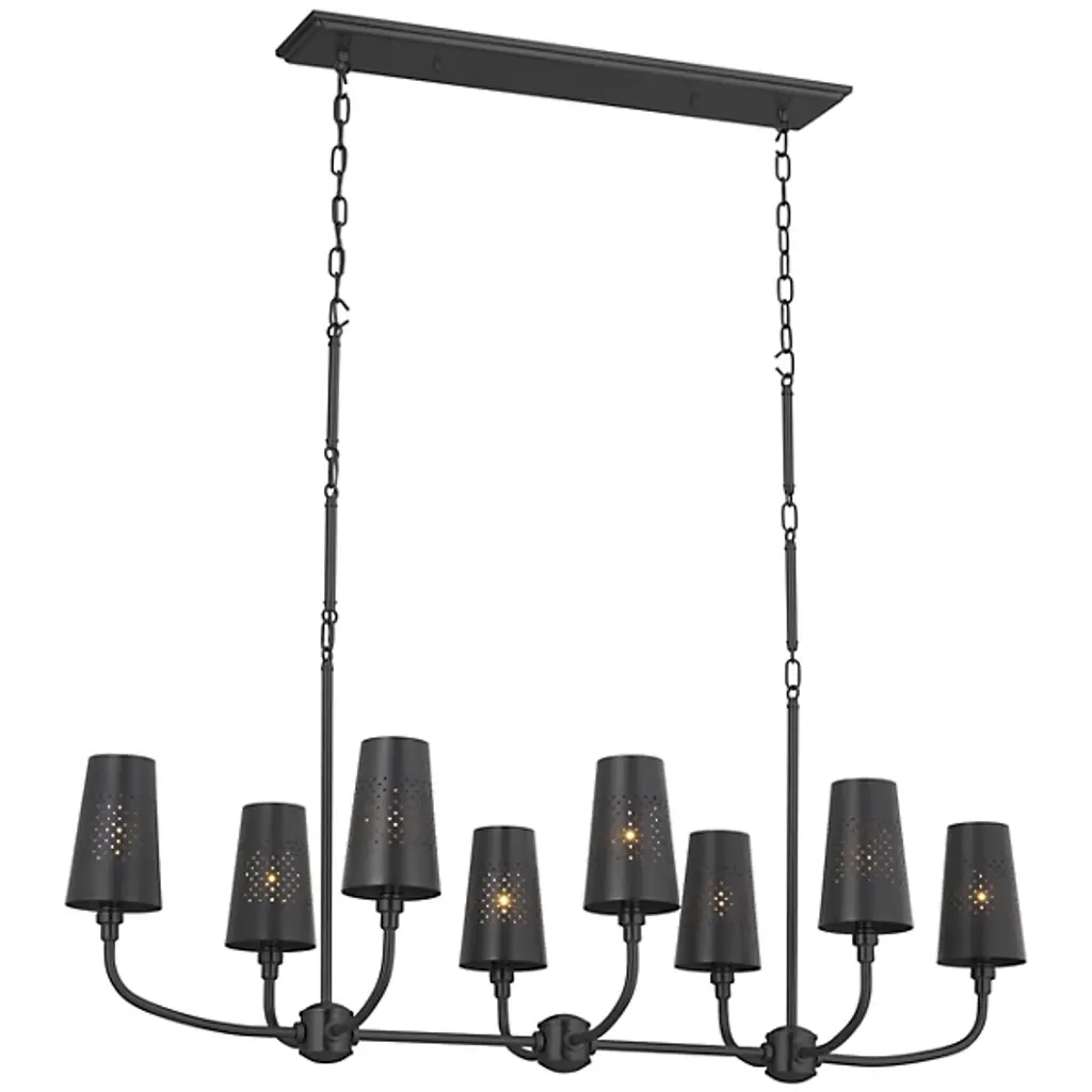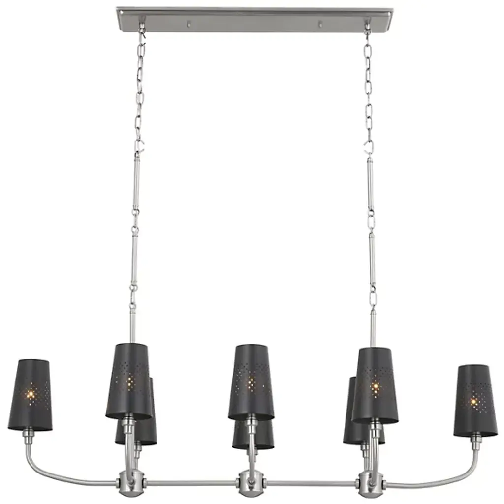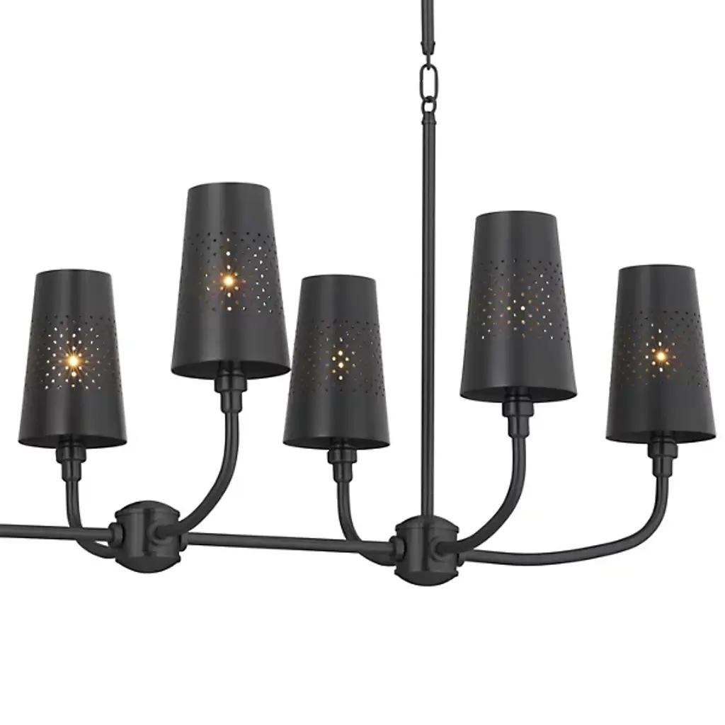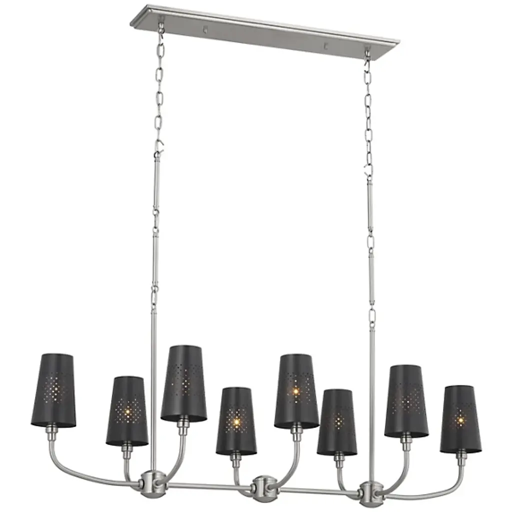 The stylish Adeena Linear Suspension by Kichler is here to illuminate your 21st-century venue. Designed with the same hallmark semi-see-through shades as companion fixtures in the Adeena family, this linear suspension provides ample amounts of light for your living space. Dual chains suspend from a rectangular canopy at your ceiling to facilitate a metal bar’s midair suspension. This bar is lined with multiple groups of wending arms that perfectly balance shades that house incandescent bulbs. This mid-century modern chandelier is sure to fulfill your lightning needs while catching the eyes of your friends and family.