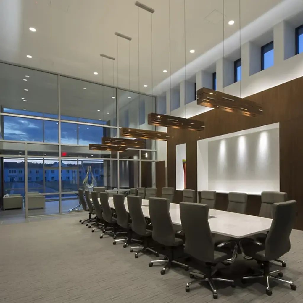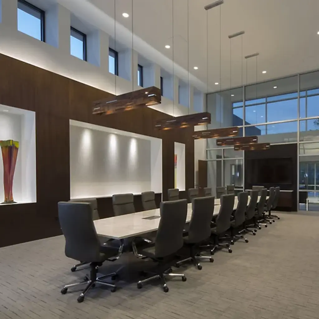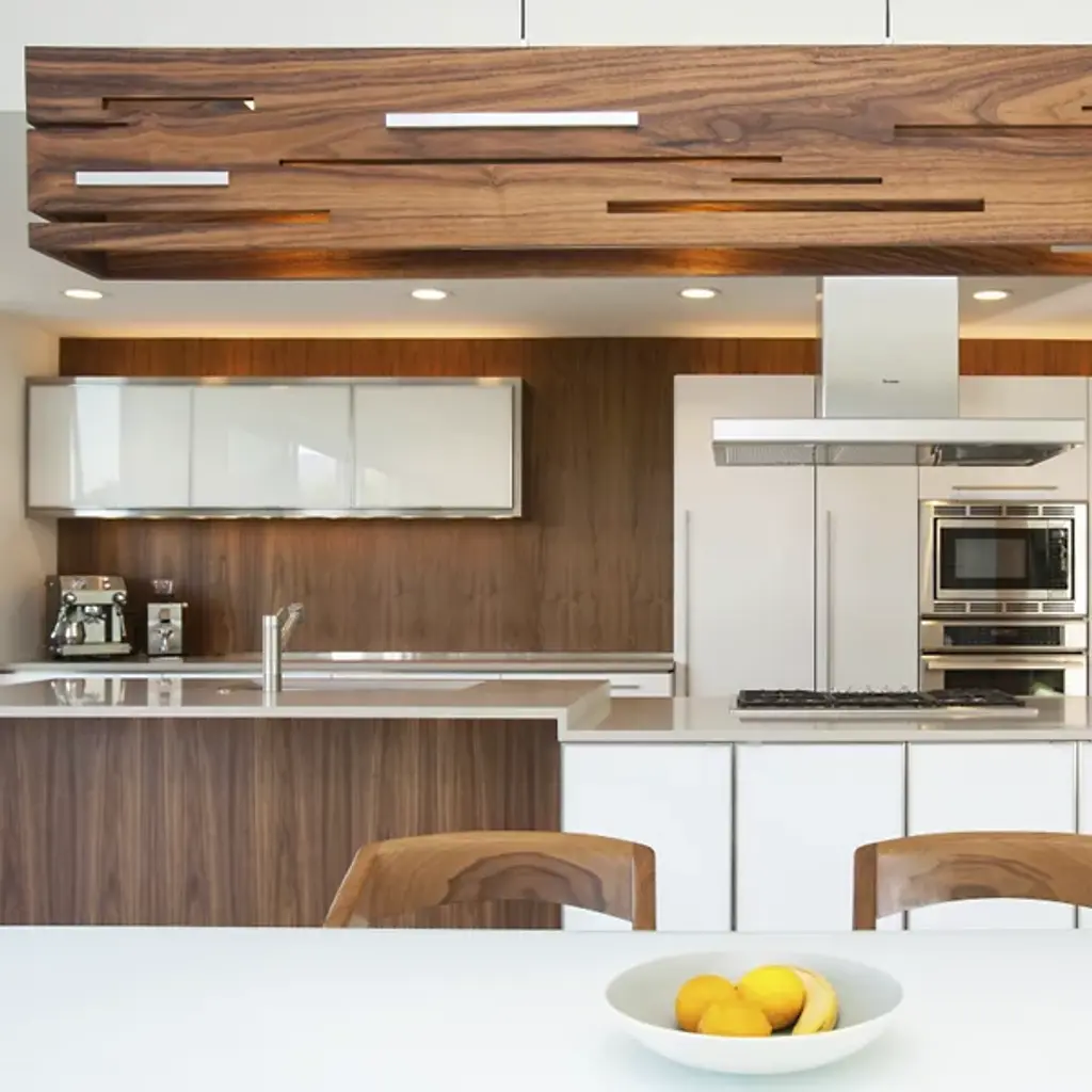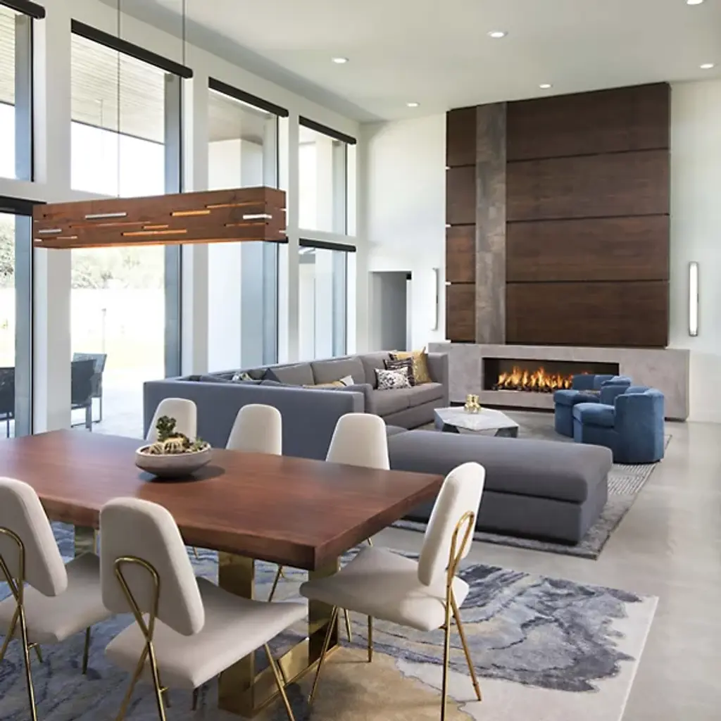 The Aeris LED Linear Suspension from Cerno is a formidable slab of energy efficient linear lighting. A lean block of wondrous walnut features staggered segments of light-emitting cutaways, creating slivers of glowing ambiance that augment the up and down (and dimmable) LED illumination. The natural swirls and waves brought by the wood make each one of these pendants unique and are contrasted by the metal inlays. It comes with 72” of field-adjustable cord, so you don’t have to worry about your ceiling’s height.