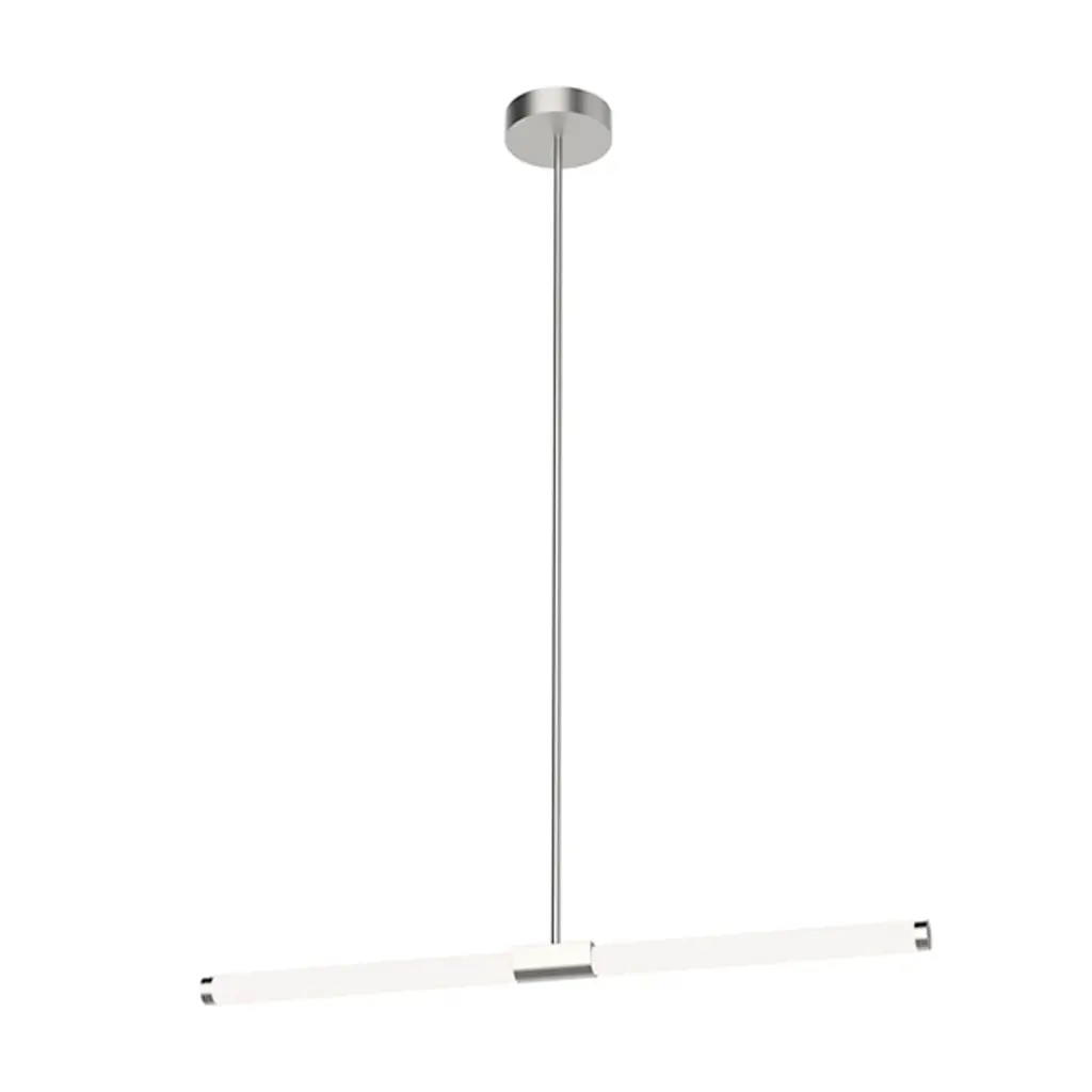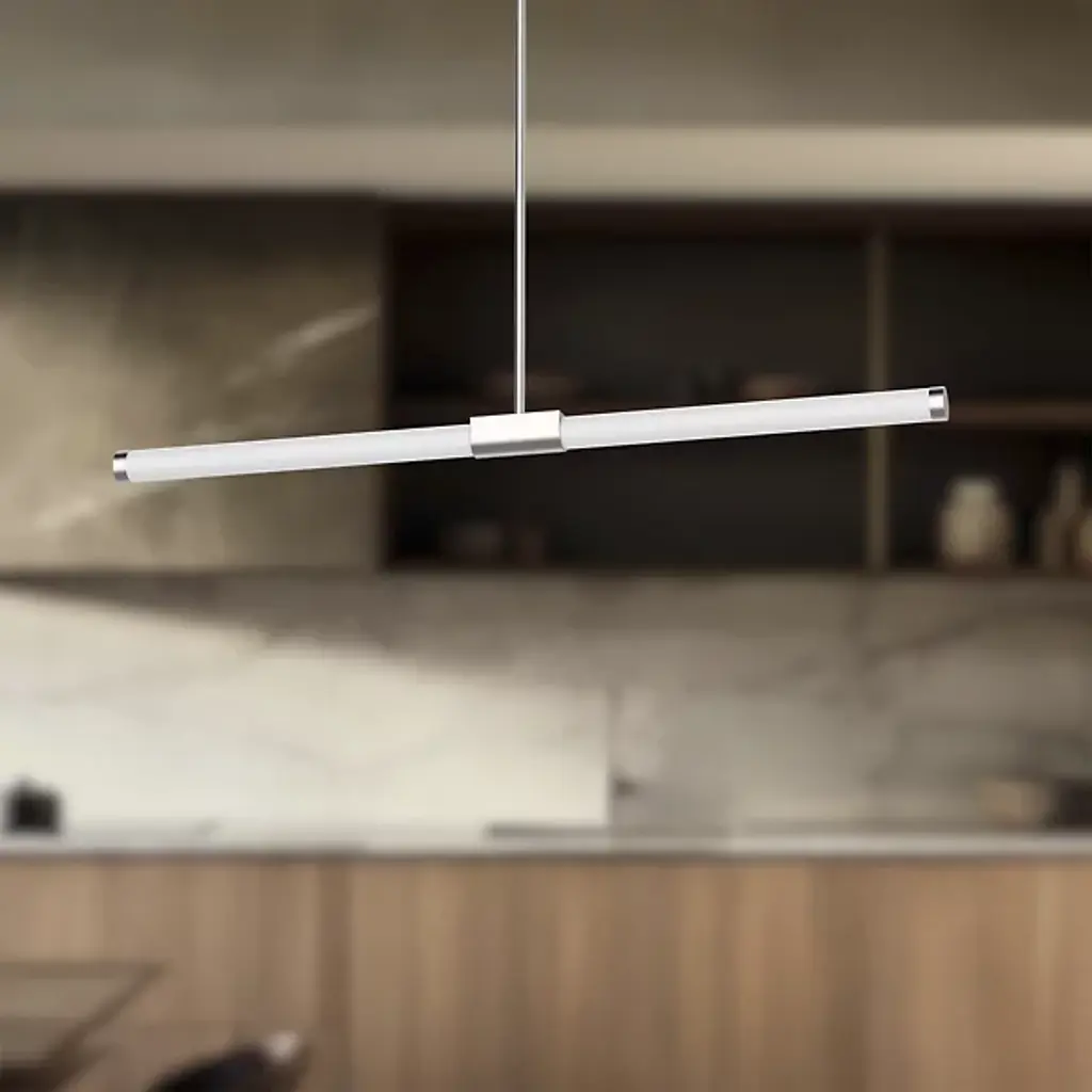 Clean, sharp, sophisticated. Brighten up and style up your rooms with the refined modern design of the Akari 537 LED Linear Suspension from Kuzco Lighting. The precision displayed in this purely geometric piece makes it a welcome addition with a range of home styles. You'll have no problem finding a placement for it as a compact canopy mounts it to your walls. It drops in an adjustable downrod that helps outline an eye-catching t-shaped silhouette. Streaming across, a slender frosted acrylic tube charms in its light, opaque hue. Metal details sharpen up the shape of the tube with a touch of sleek contrast. LED light evenly scatters through the diffuser to deliver a soft ambient glow and a crisp silhouette.