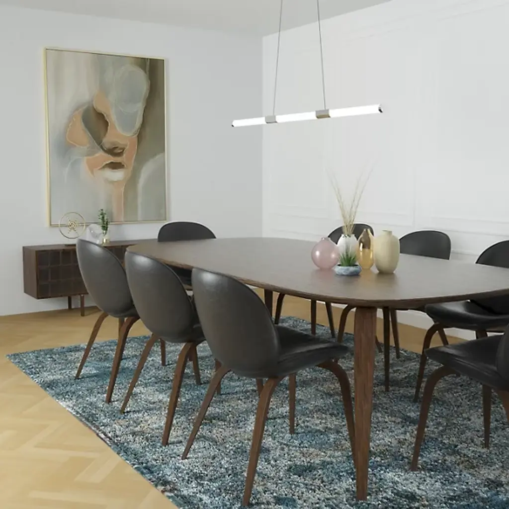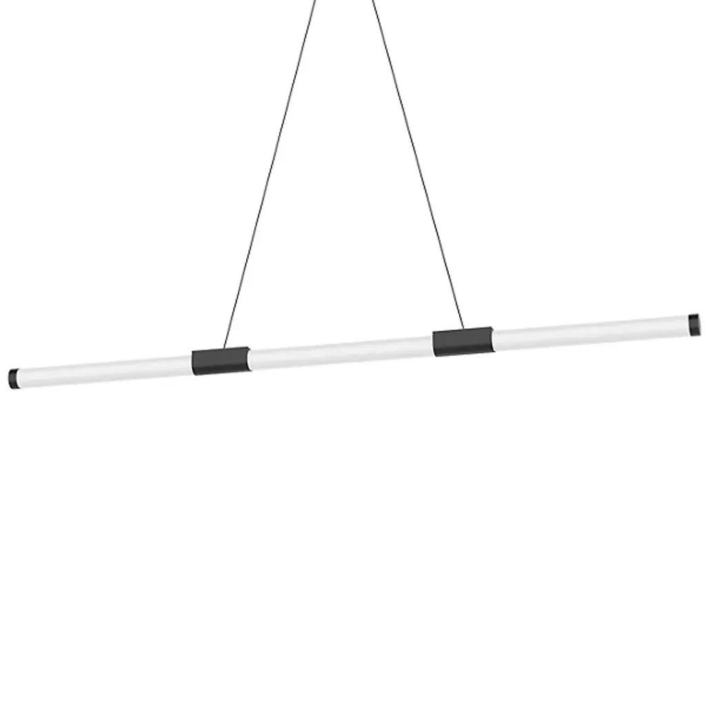 A sleek, minimalist standout. Pair your kitchen island or dining table with the even stream of clean light produced by the Akari LED Linear Suspension from Kuzco Lighting. The suspension is visually clear and easy on the eyes, two qualities that are essential in communal lighting. Tethered to a compact canopy, ultra-fine cords produce dynamic angles that complement the bar feature. The three frosted acrylic bars and metal elements in between make for an elegant two-tone look. This streamlined construction pairs up with an array of LEDs to produce a tidy glow.