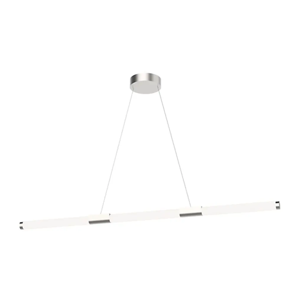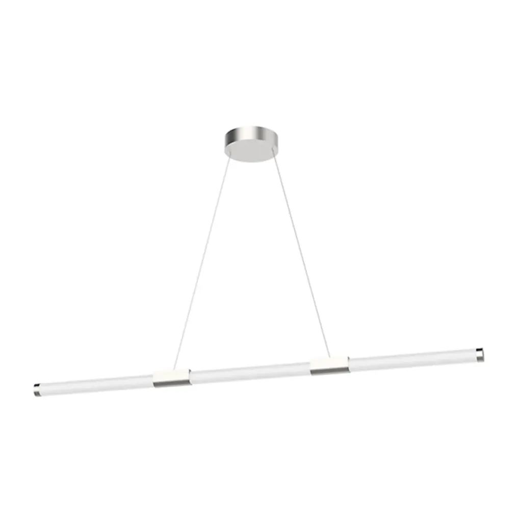A sleek, minimalist standout. Pair your kitchen island or dining table with the even stream of clean light produced by the Akari LED Linear Suspension from Kuzco Lighting. The suspension is visually clear and easy on the eyes, two qualities that are essential in communal lighting. Tethered to a compact canopy, ultra-fine cords produce dynamic angles that complement the bar feature. The three frosted acrylic bars and metal elements in between make for an elegant two-tone look. This streamlined construction pairs up with an array of LEDs to produce a tidy glow.