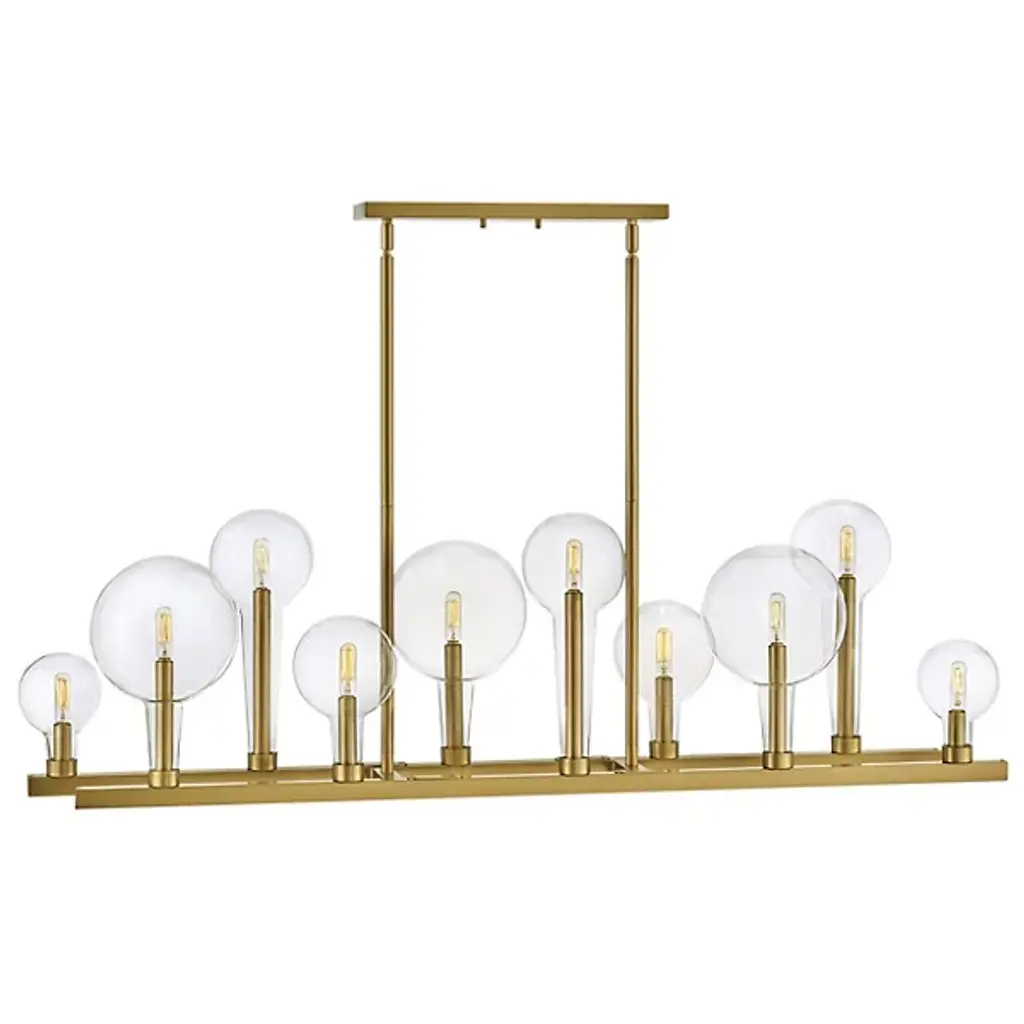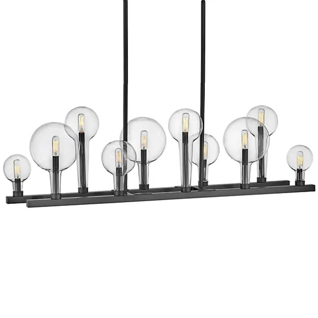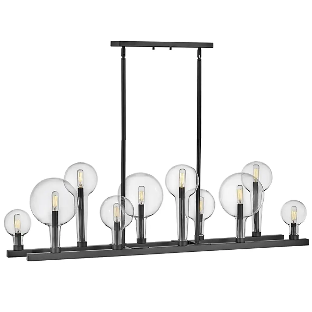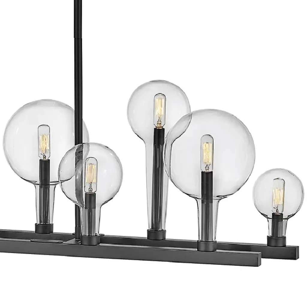 The Alchemy Linear Suspension by Hinkley Lighting is a robust but pared down industrial design inspired by vintage flasks found in chemistry classrooms. Lending a lovely layer of light to spaces, an arrangement of simple stems and visible bulbs are enclosed in tapered glass globes in varying sizes for a simple composition that rests along parallel arms. With a crisp and minimalistic look, this piece brings a handsome touch to the spaces it brightens.