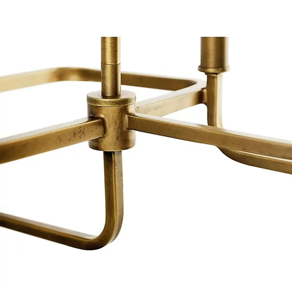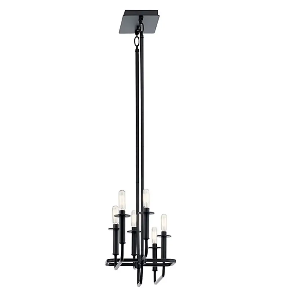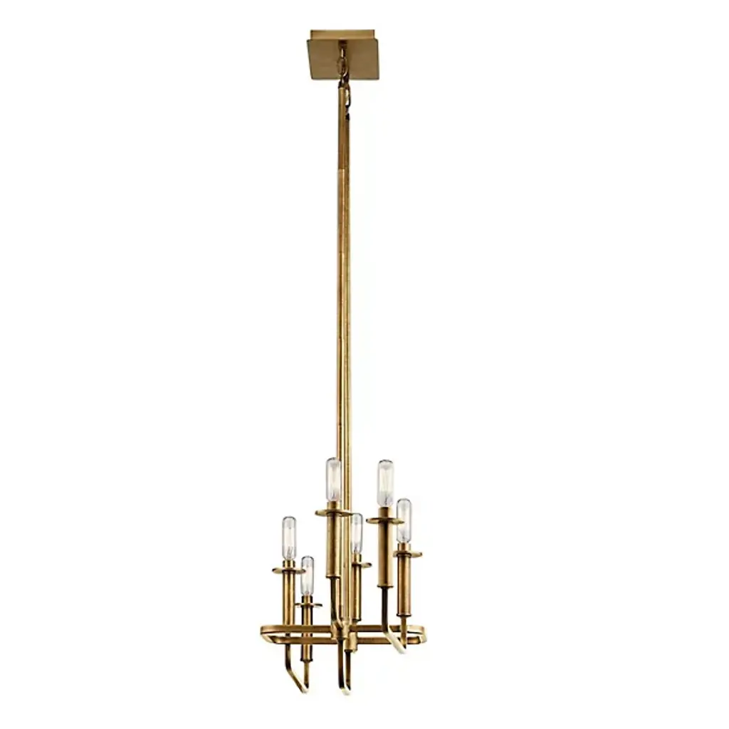 Jazz up your living spaces with the natural asymmetry of the Alden Linear Suspension by Kichler. Dropping from a rectangular metal canopy via two long stems, the metal frame extends flat-sided arms up from a round-cornered frame, each ending in a smooth-sided candelabra socket. While the open lights shine brightly all around, the disc fittings below the lamping block direct downlight. Graceful and practical, the Alden is an intriguing statement sure to enliven modern and minimalist décor alike.