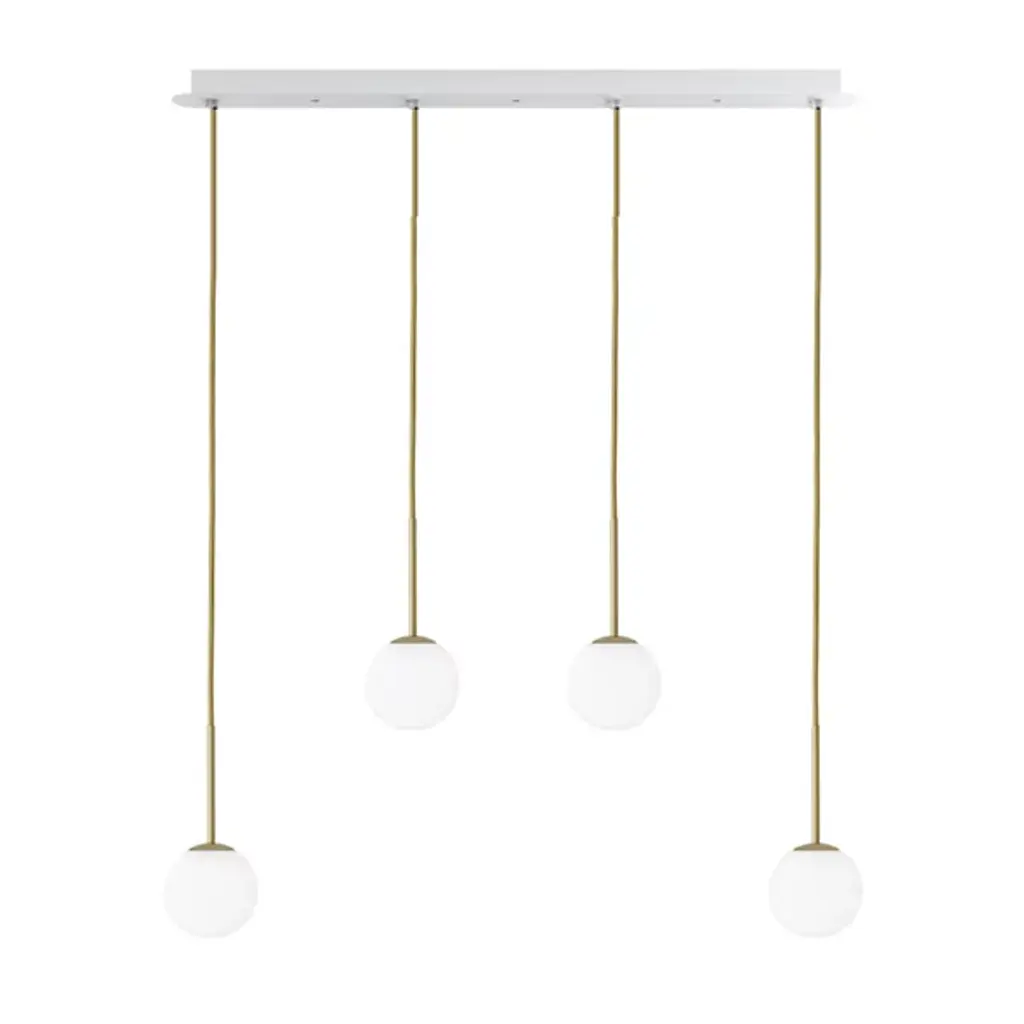 The Alfi LED Linear Suspension from Estiluz is designed by Estudi{H}ac. It received the NYCxDESIGN Award in 2022. This stunning fixture seamlessly blends Spanish and contemporary styles, creating a visually captivating addition to your space. Alfi features a distinctive globe motif that adds a touch of elegance. Crafted from high-quality metal and glass, this linear suspension provides brilliant illumination overhead. The integrated LED technology casts a warm and inviting glow.
