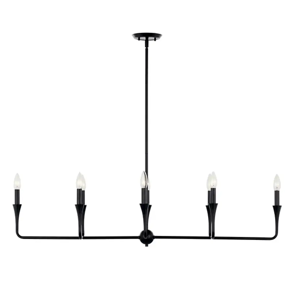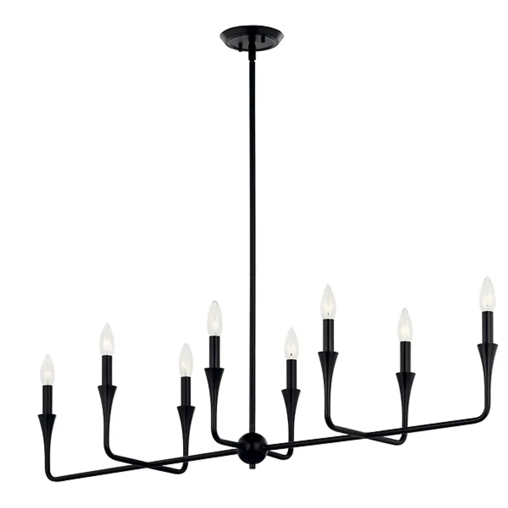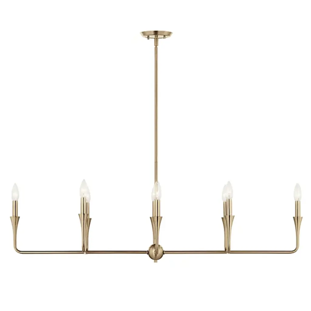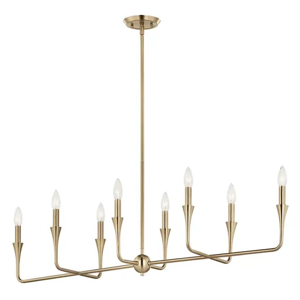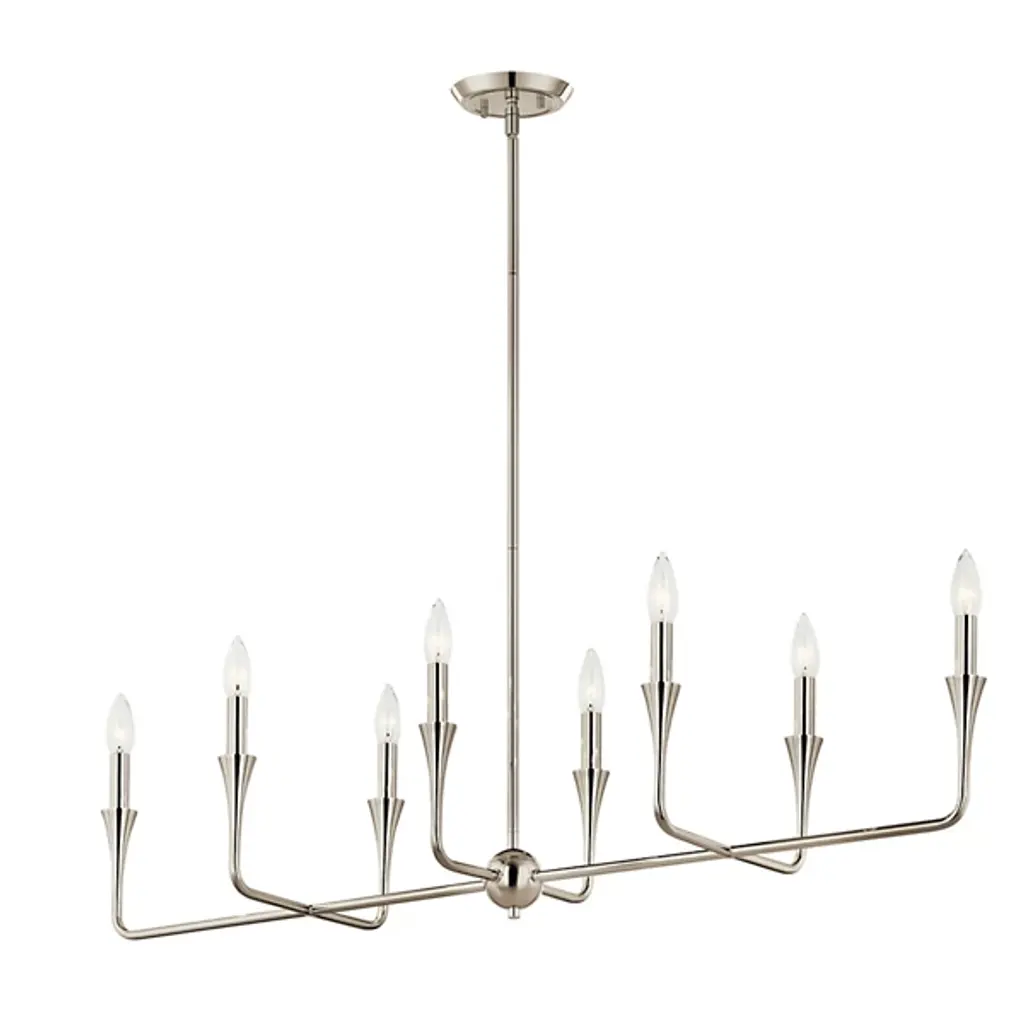 Discover sophistication with the Alvaro Linear Suspension from Kichler, featuring a sleek silhouette and unique tapered accent. Crafted with precision, each angle of Alvaro begins at the canopy, gracefully extending to the fixture's central root before blossoming outward and upward, casting a radiant glow. Adorned with bobeche on each arm, gently flaring into candlesticks, this fixture exudes soft modernity. Illuminate your space with Alvaro's refined design, adding understated elegance to any setting.