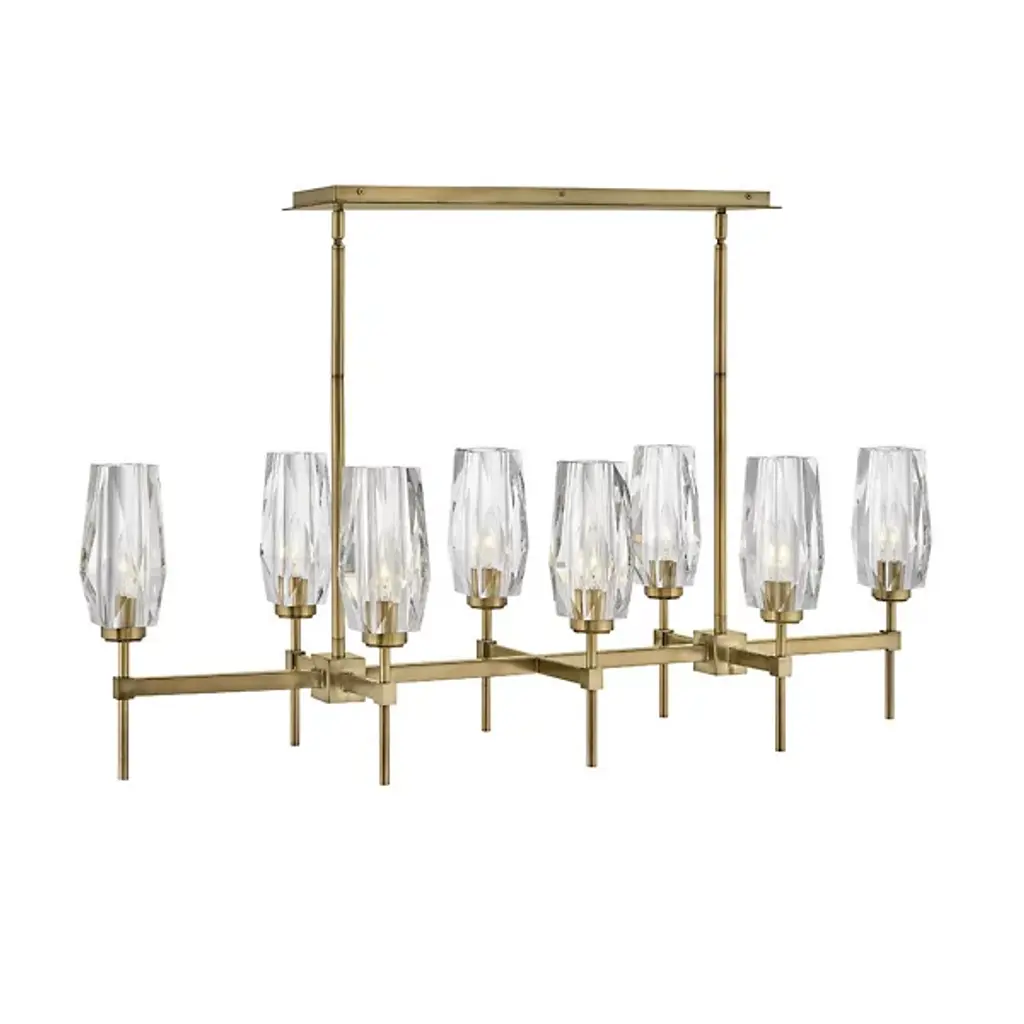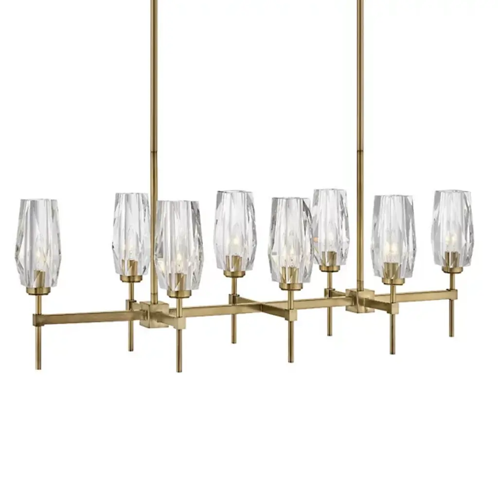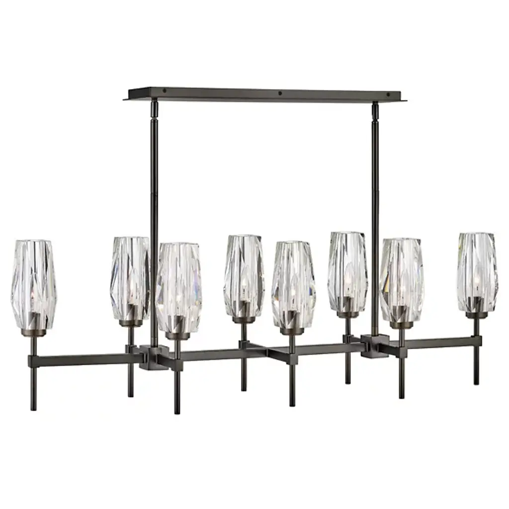 The Ana Linear Suspension by Hinkley Lighting is an elegant, statement-worthy addition to spaces. With a simple build, the structure of this piece has a neatly tailored look that is enhanced with a sophisticated finish as a single, linear bar supports an even arrangement of arms that each clasp slender stems at their ends. Each stem is topped with a beautiful, heavy cut, faceted crystal shade that gives this design a glamorous air, allowing light to playfully reflect and refract through their form, brightening up surroundings.