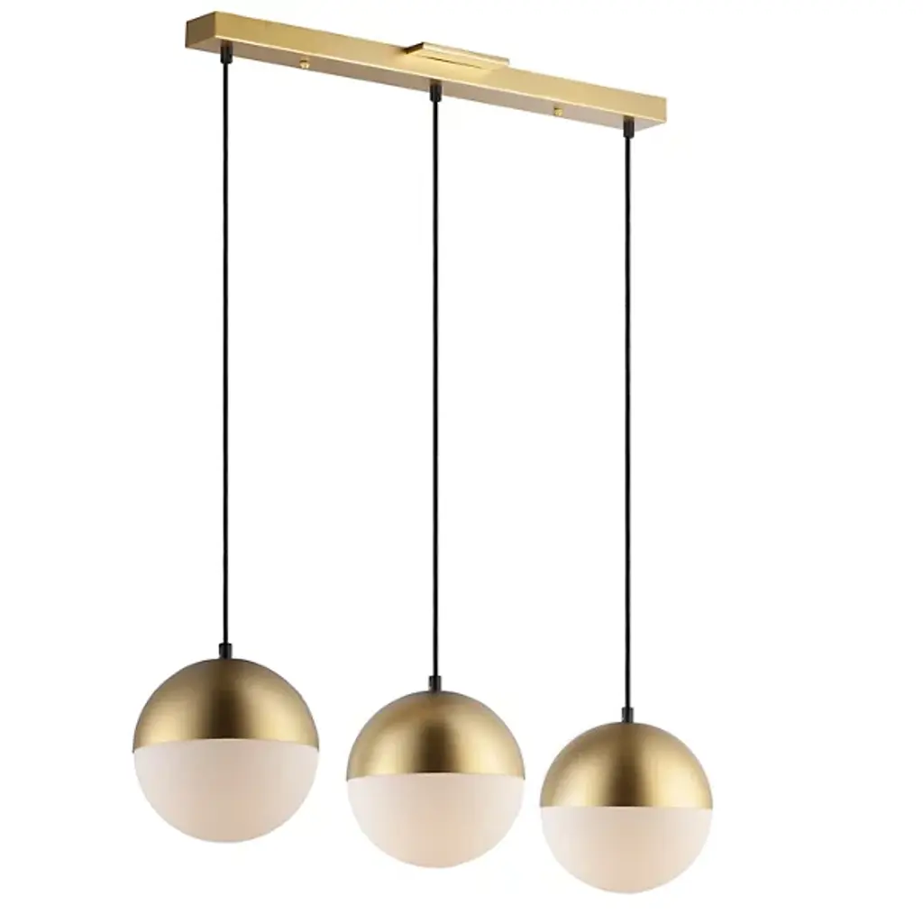 Bring a demonstration of calming, even light to your spaces with the Andrea Linear Suspension from Huxe. Like a half-moon in the night sky, this piece consists of a set of three precise orbs half-adorned with metal and satin white glass. Hanging from the end of a thin wire, each orb is set in a linear arrangement and contains an LED bulb that brings the shade to life. A warm and even layer of light enter the room for a welcoming and relaxing ambiance.