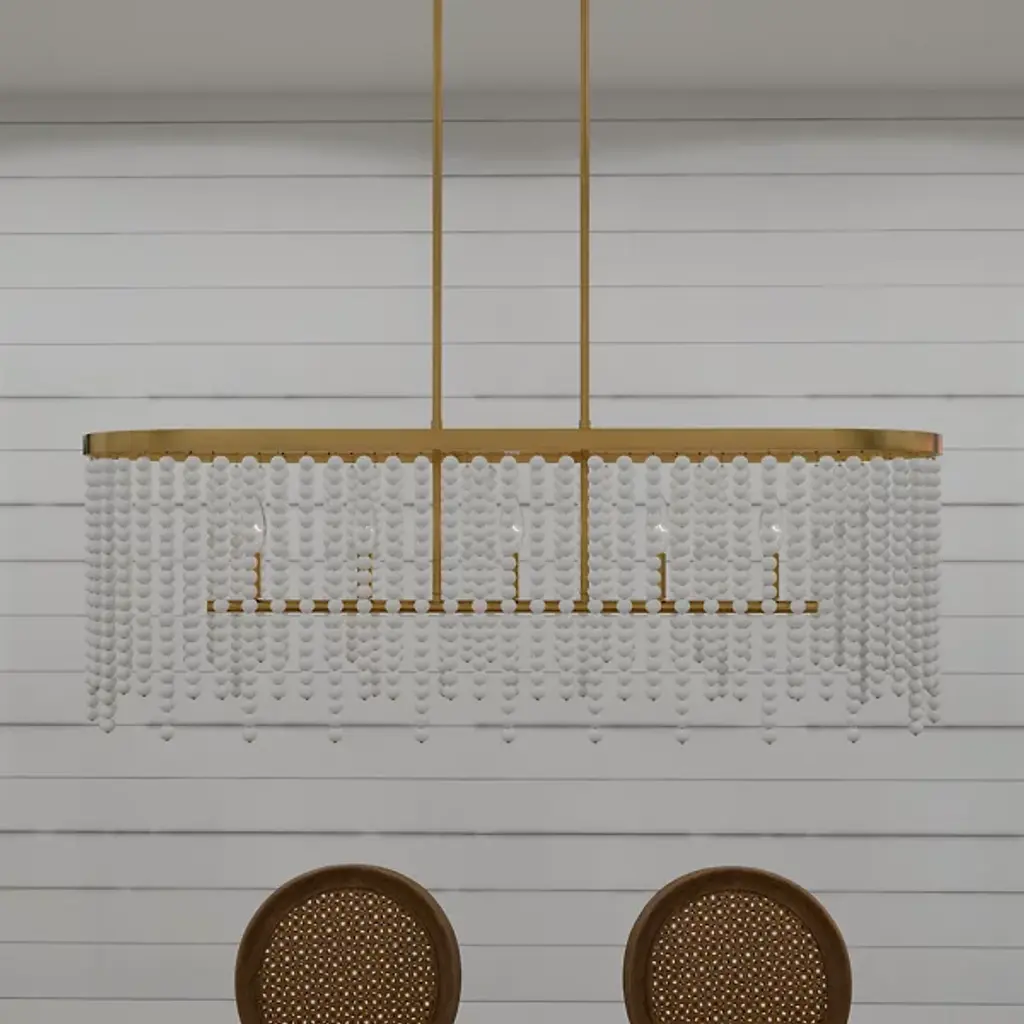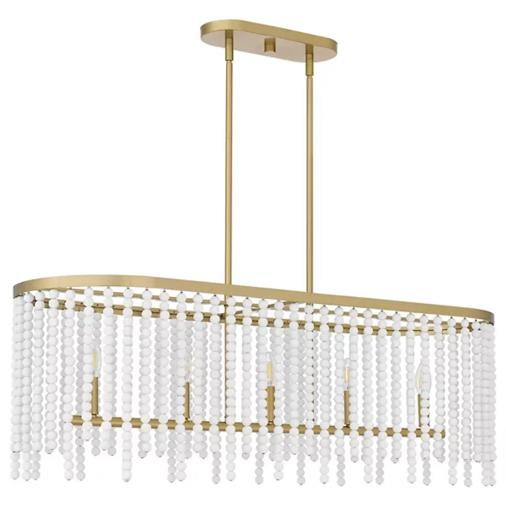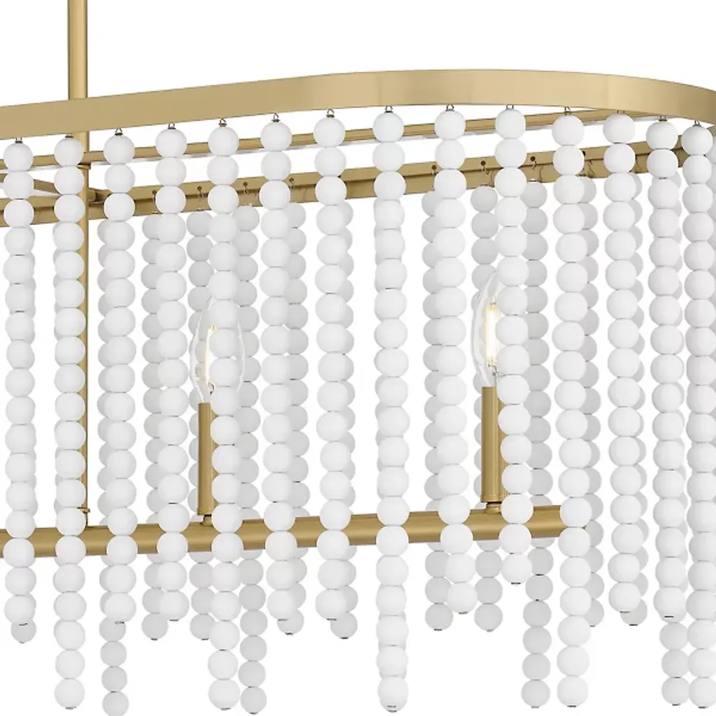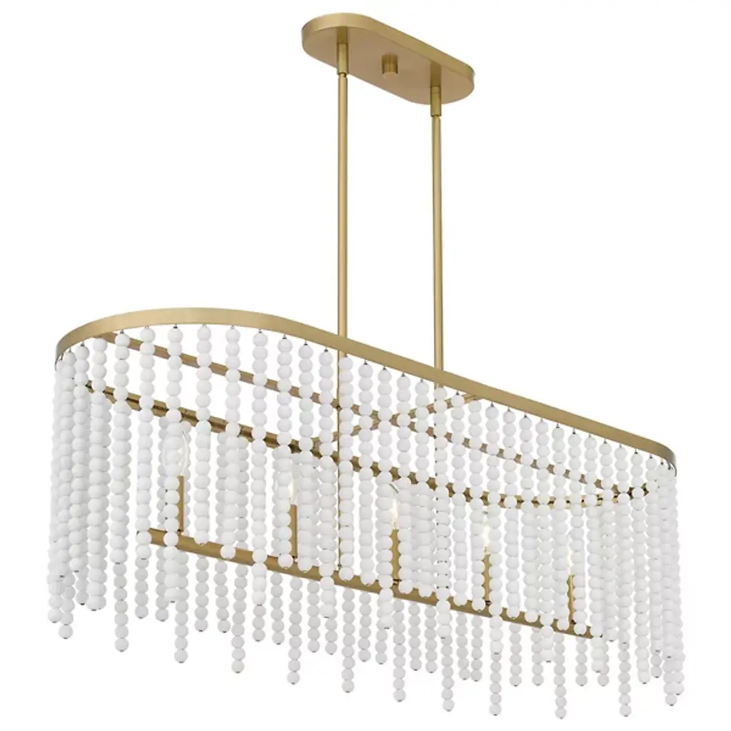 Delve into the captivating allure of the Apelle Linear Suspension by Quoizel, where timeless elegance meets enchanting whimsy in lighting design. Gracefully crafted with a silhouette adorned by charming white glass beads, this fixture emanates a spellbinding glamour. Enhanced by the warmth of its aged brass finish, it exudes character and sophistication, adding a touch of allure to any space. Embrace the harmonious fusion of playfulness and refinement with the Apelle Linear Suspension, an exquisite choice for spaces seeking charm and style.