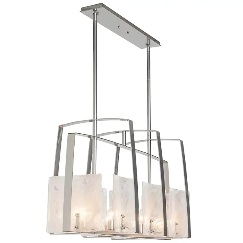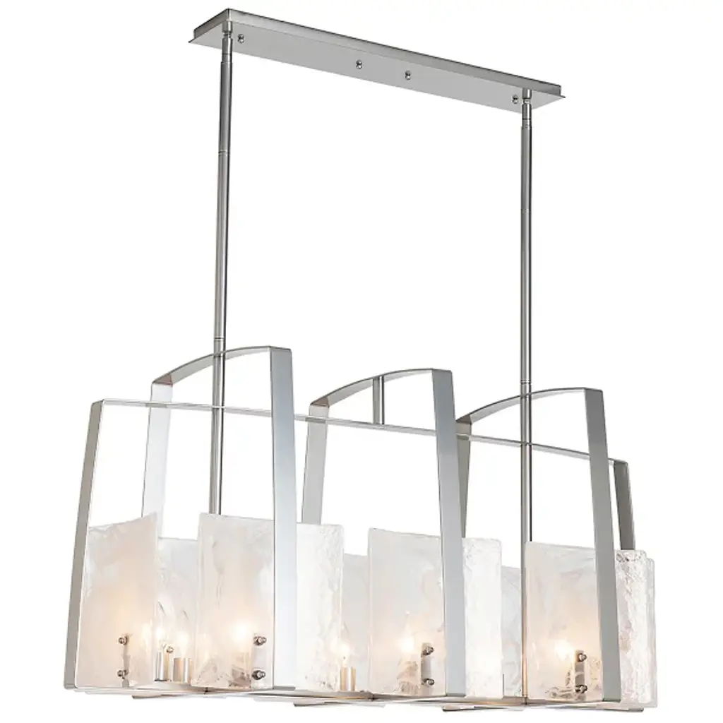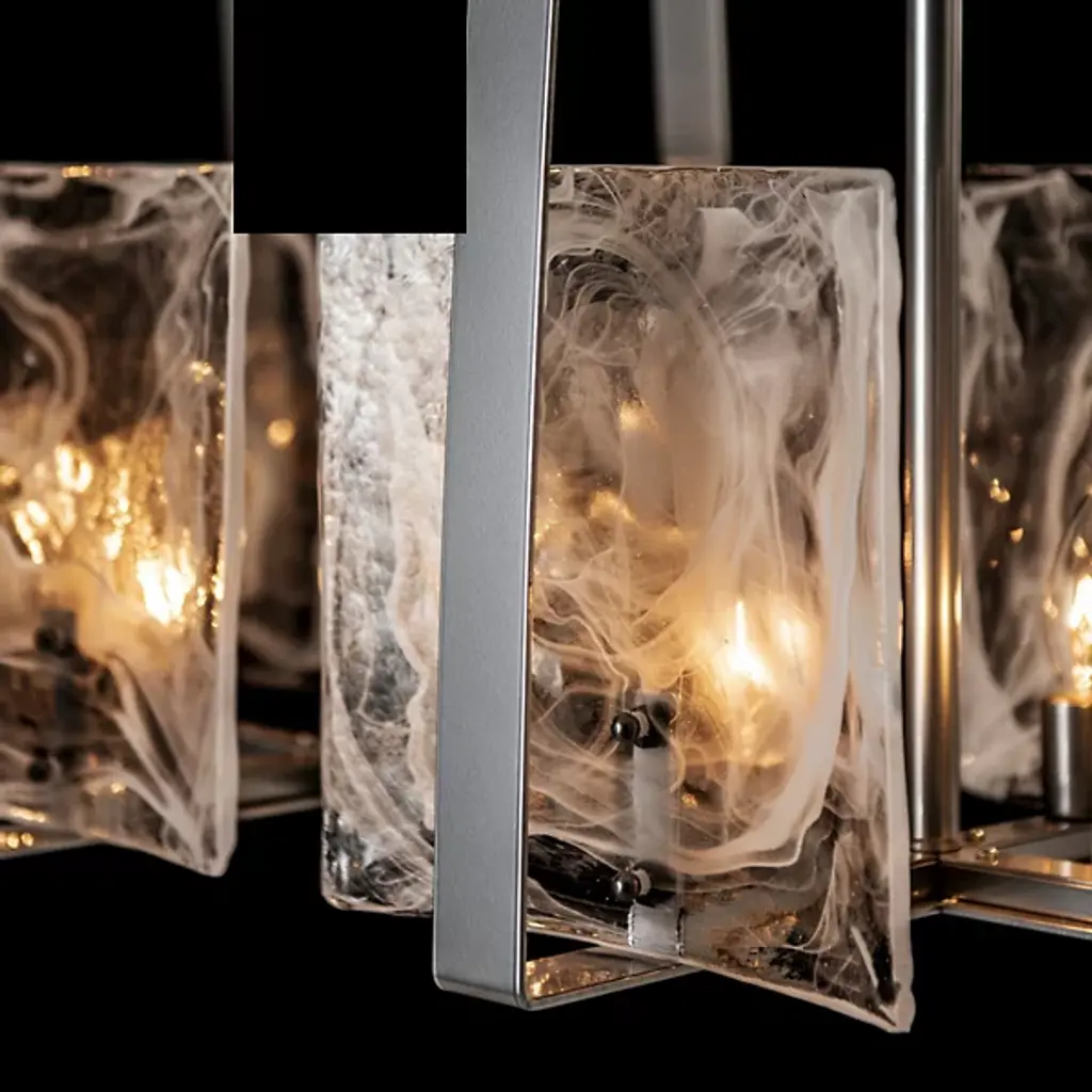 Architectural, linear lighting ideal for the modern kitchen or dining room. The generous proportions of the Arc Linear Suspension by Hubbardton Forge serve to really showcase the arcing lines of the frame. The handmade steel bands smoothly and gently curve up and around the convex panels of thick, textural art glass. As the glass works to diffuse the light produced by the bulbs behind it, the light helps to show off each panel’s distinctive texture and undeniable artistry.