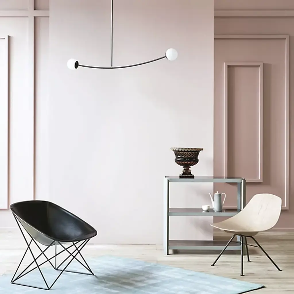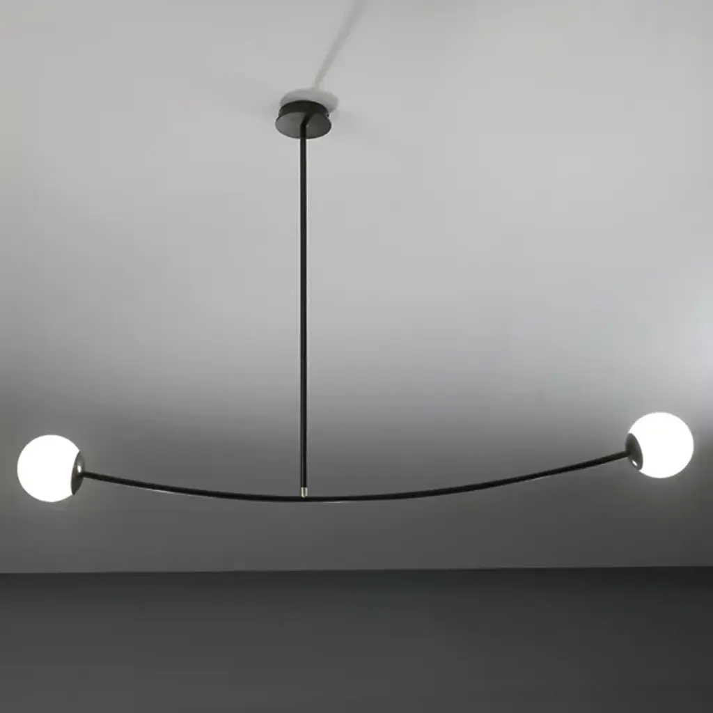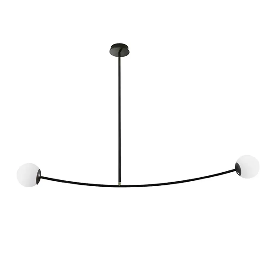 The Arch Linear Suspension from MM Lampadari sets an easy-going tone with an airy, mobile-like design inspired by the clean silhouettes of the 1970s. Designer Matteo Valenti's design focus is on beauty and refinement. Here, Valenti showcases the beauty of the pure line through a slender metal framework. The piece's arm arcs gently with globe shades at each end in a silhouette evocative of a dimpled smile. These opal-white glass spheres display a pristine glow with minimal glare. The multi-directional setup of these bright spheres translates to a sweeping ambient glow.