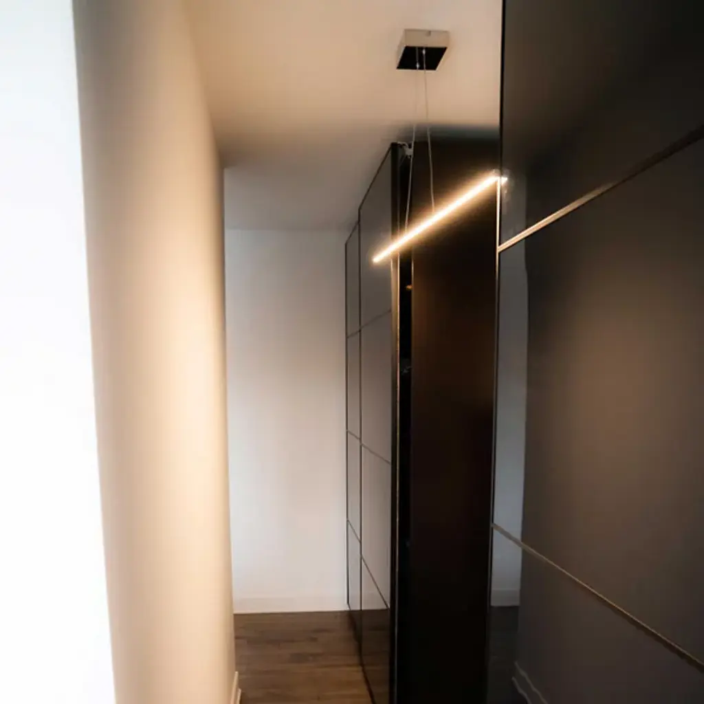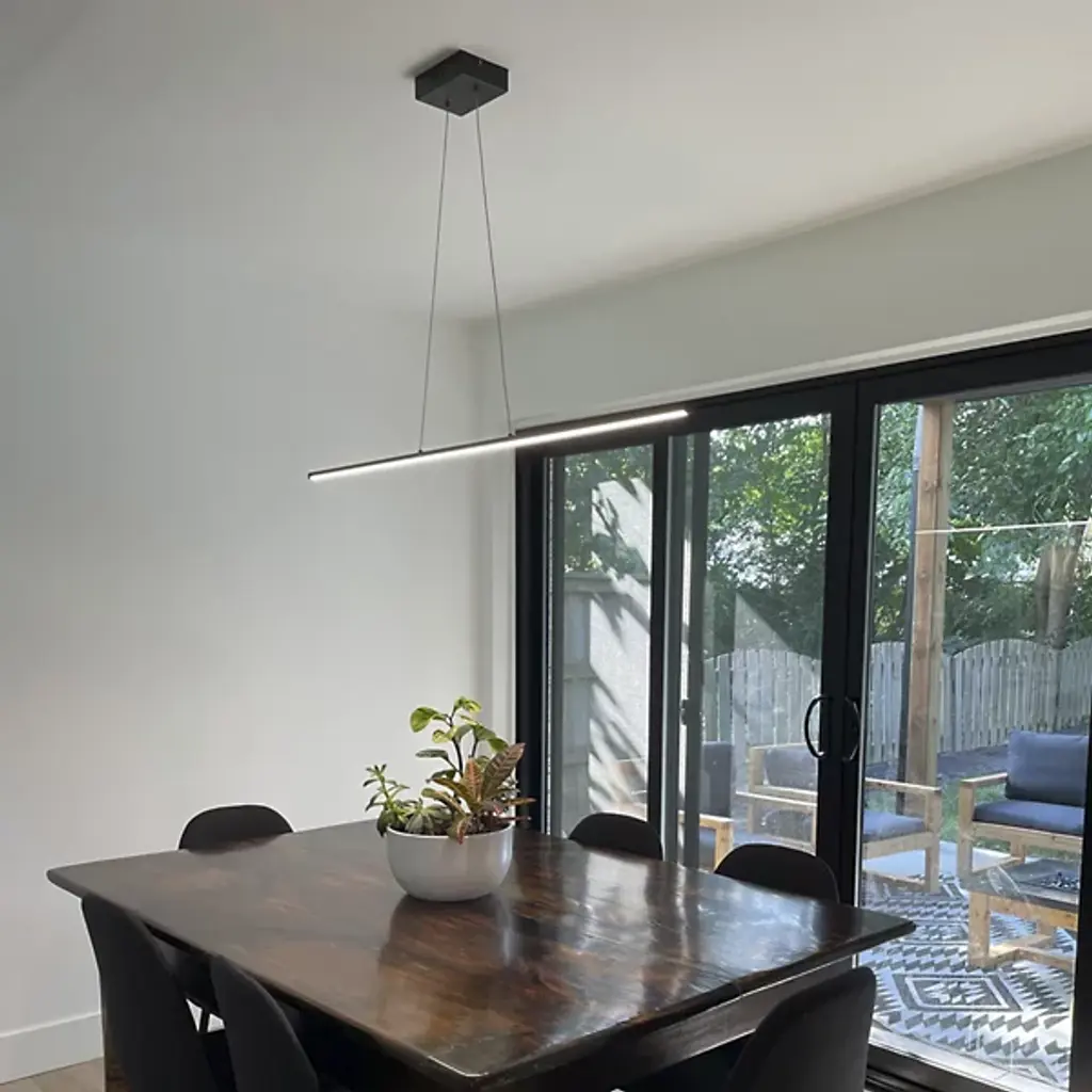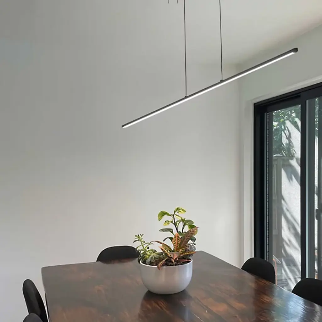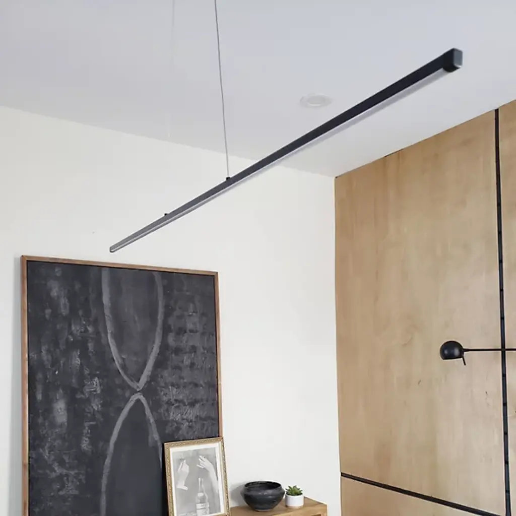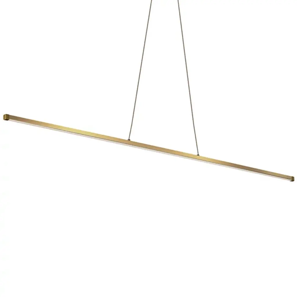 Sleek and simple. The Array LED Linear Suspension by Dainolite is a sophisticated addition to spaces. With a slim, minimal silhouette, the beautifully finished metal body of this piece is effortlessly suspended from a rectangular canopy with a pair of cables that angle outward to balance it above the areas it brightens. Filtering evenly through an acrylic diffuser, the energy-efficient illumination from this piece complements a wide range of rooms as the form around it is neatly capped at either end for a tailored touch.