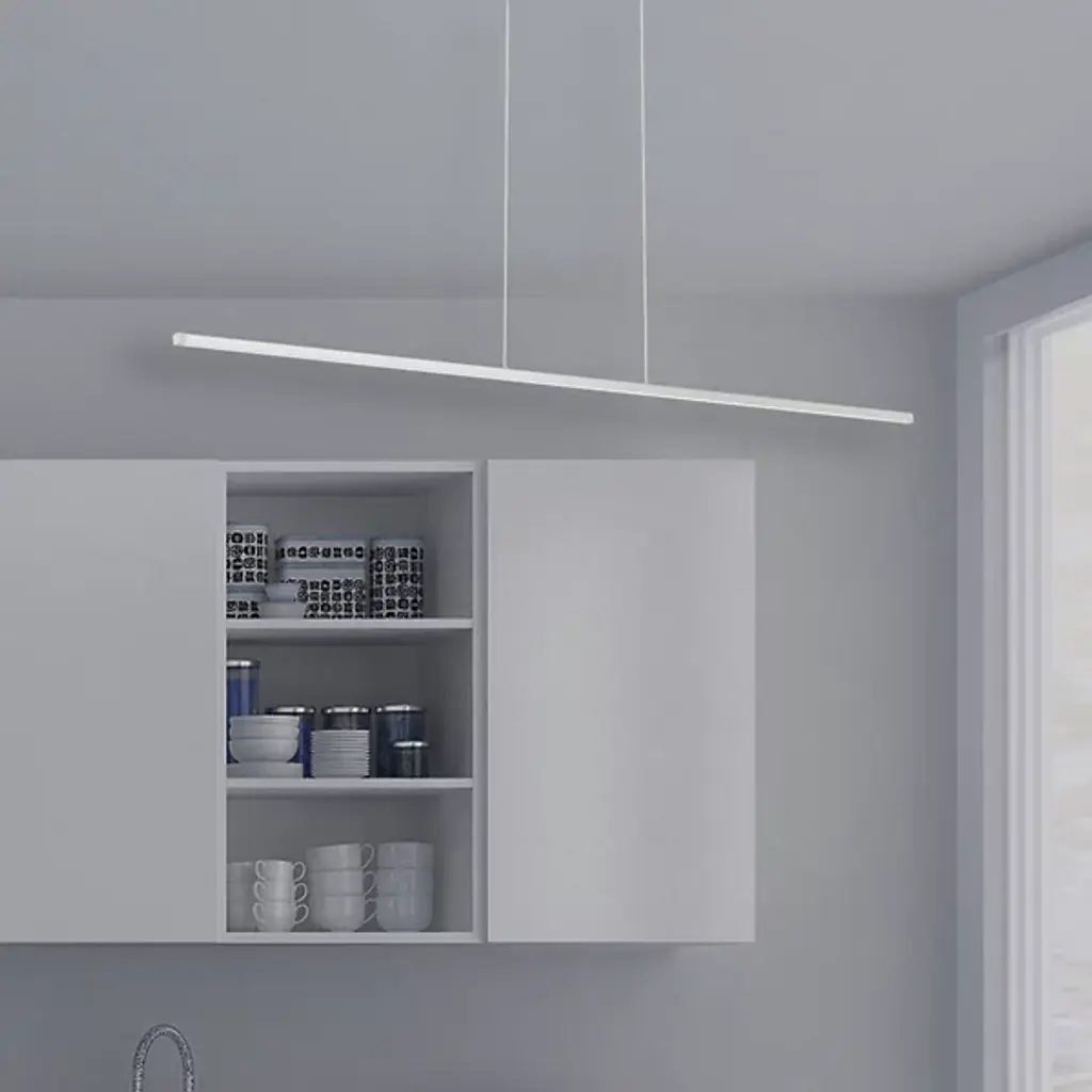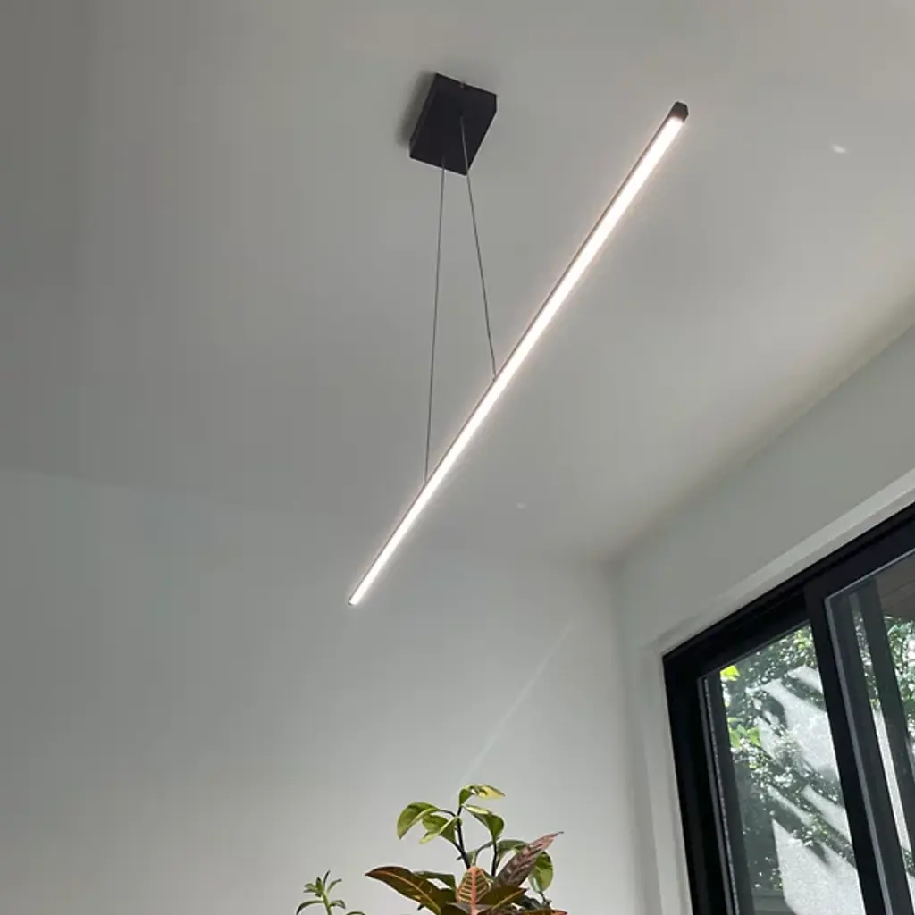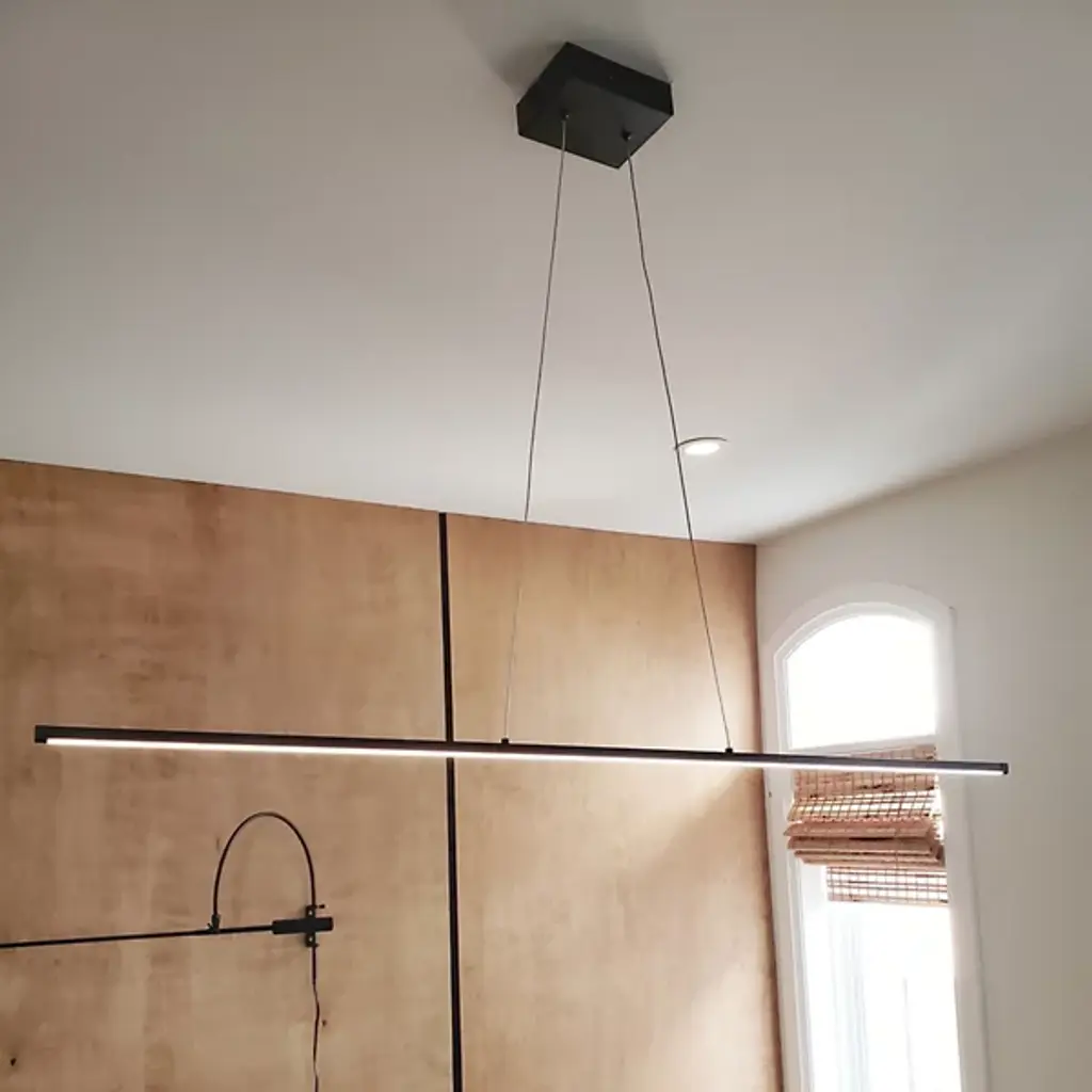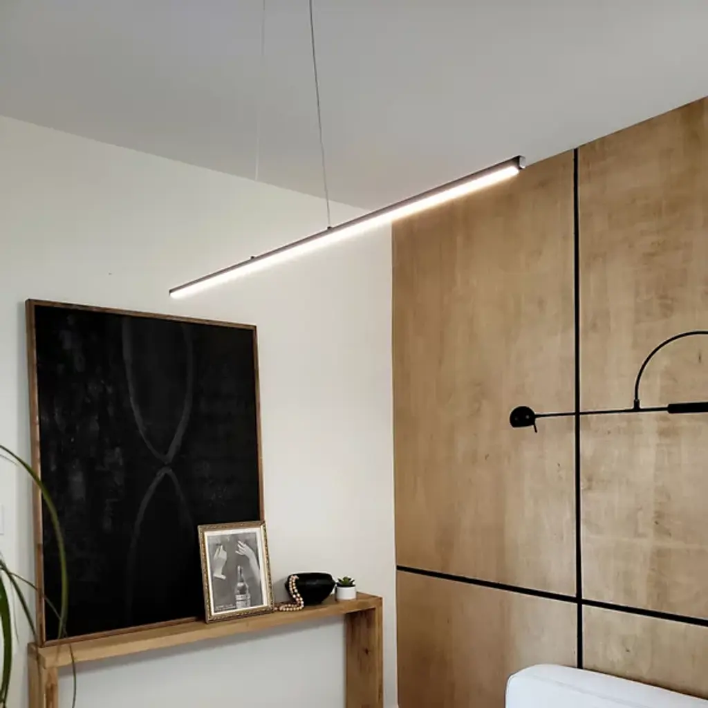 Sleek and simple. The Array LED Linear Suspension by Dainolite is a sophisticated addition to spaces. With a slim, minimal silhouette, the beautifully finished metal body of this piece is effortlessly suspended from a rectangular canopy with a pair of cables that angle outward to balance it above the areas it brightens. Filtering evenly through an acrylic diffuser, the energy-efficient illumination from this piece complements a wide range of rooms as the form around it is neatly capped at either end for a tailored touch.