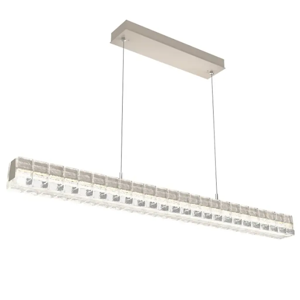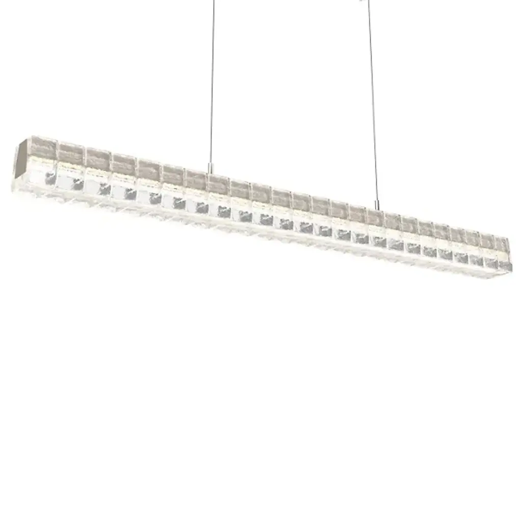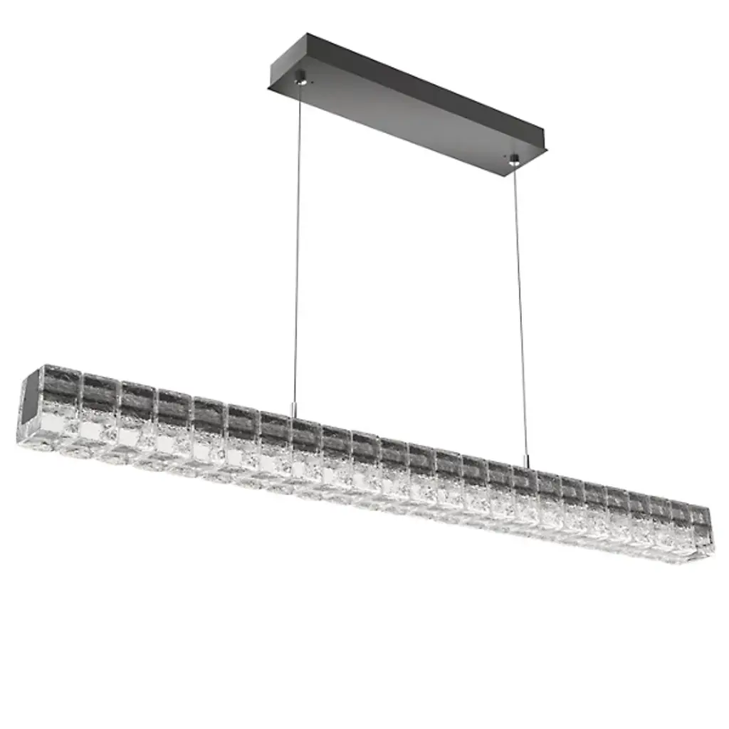 Hammerton Studio presents the Asscher LED Linear Suspension. A 48" wide row of symmetrical channel-set diffusers, each handcrafted from clear artisan cast glass, evokes the look of diamond jewelry in this glittering linear chandelier. Sleek and sparkling, this clean-lined design elevates kitchens, bars, and other functional entertaining spaces without blocking views.
