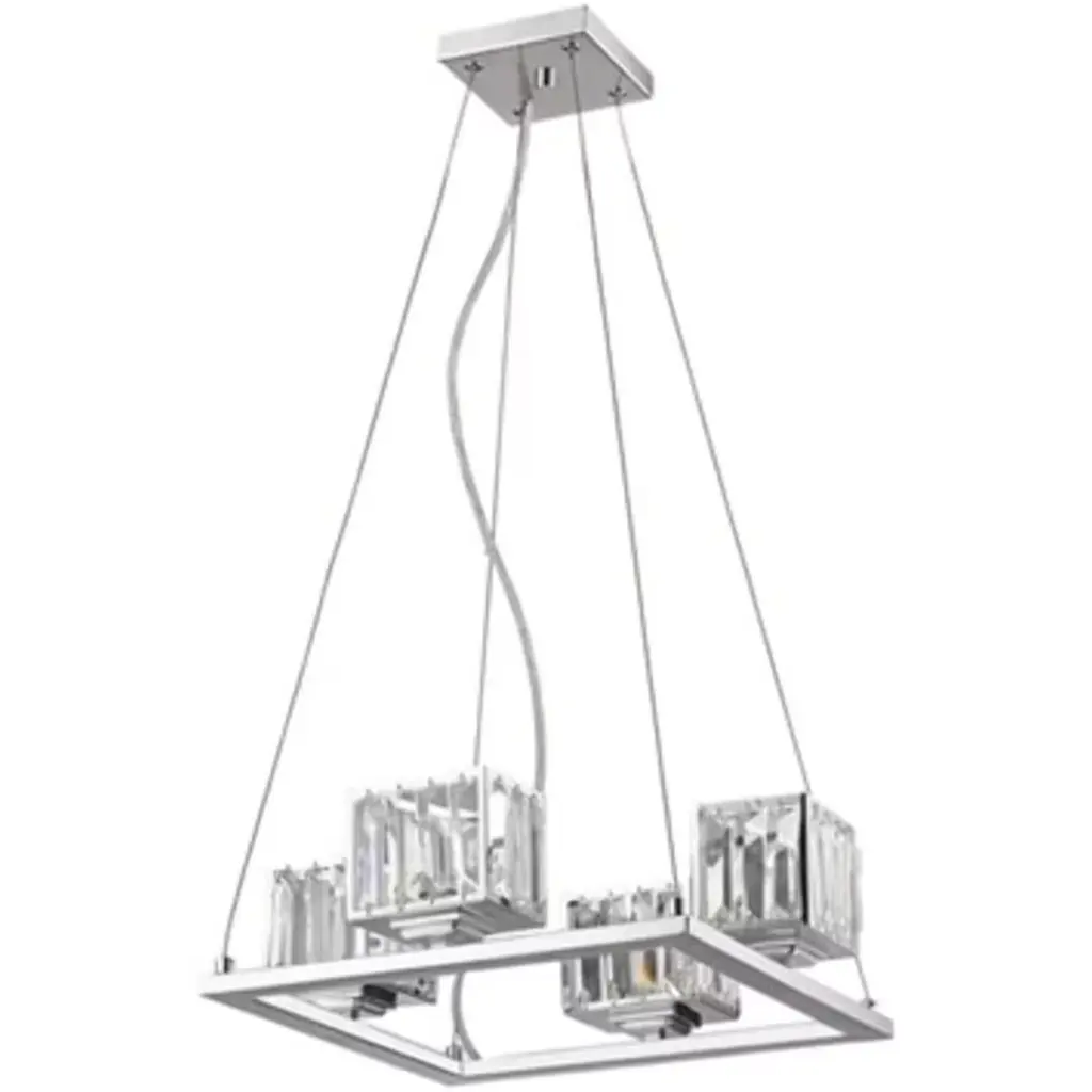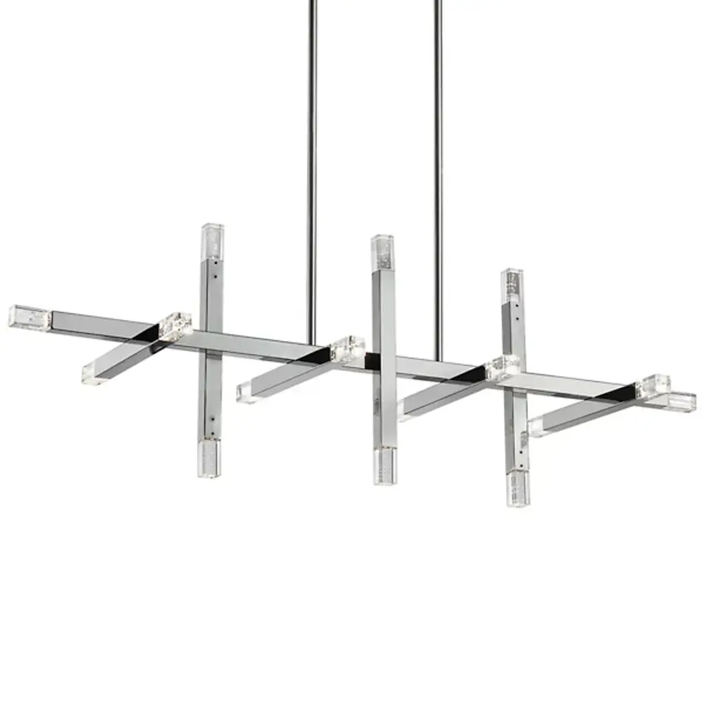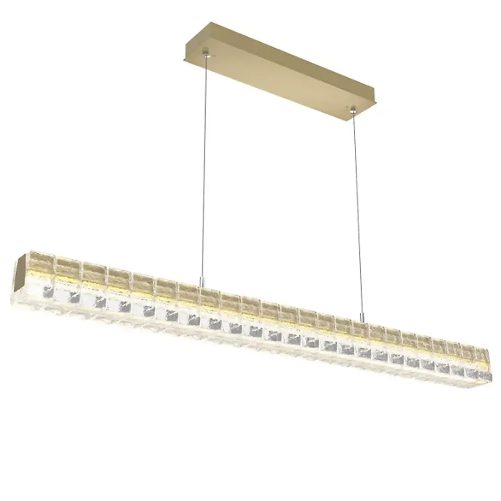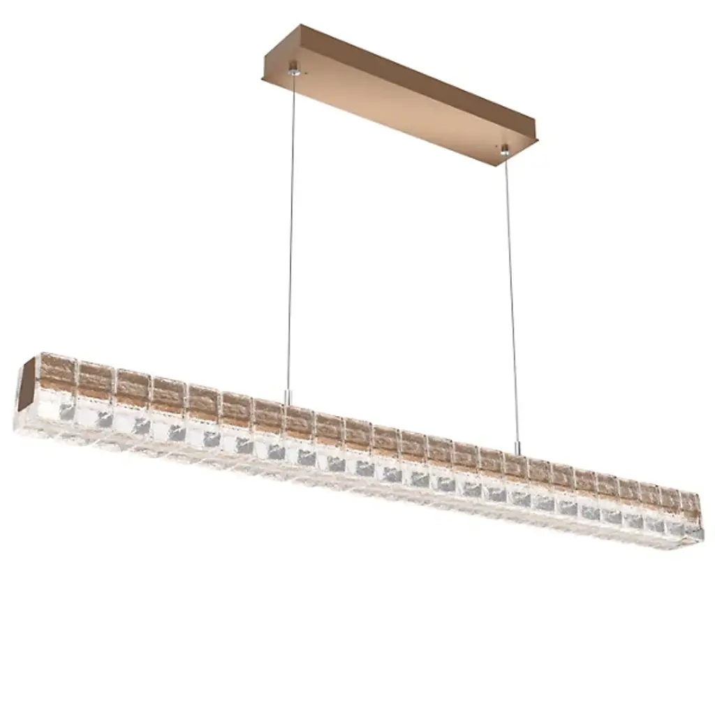 Hammerton Studio presents the Asscher LED Linear Suspension. A 48" wide row of symmetrical channel-set diffusers, each handcrafted from clear artisan cast glass, evokes the look of diamond jewelry in this glittering linear chandelier. Sleek and sparkling, this clean-lined design elevates kitchens, bars, and other functional entertaining spaces without blocking views.
