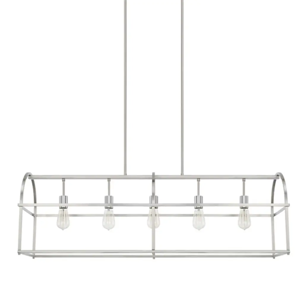 The Aubrey Linear Suspension by Capital Lighting is an airy, elegant addition to spaces with a contemporary feel. Suspended by a pair of down rods, an openly styled, beautifully finished metal frame creates a curved silhouette around a linear arrangement of exposed bulbs. Simple yet striking, the clean lines of this design lend a tailored touch to spaces while allowing plenty of light to escape onto surroundings, making this piece a practical choice for a range of locations.