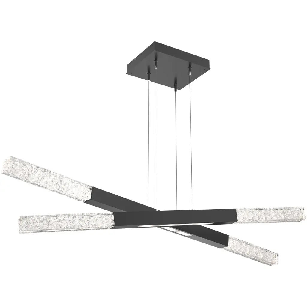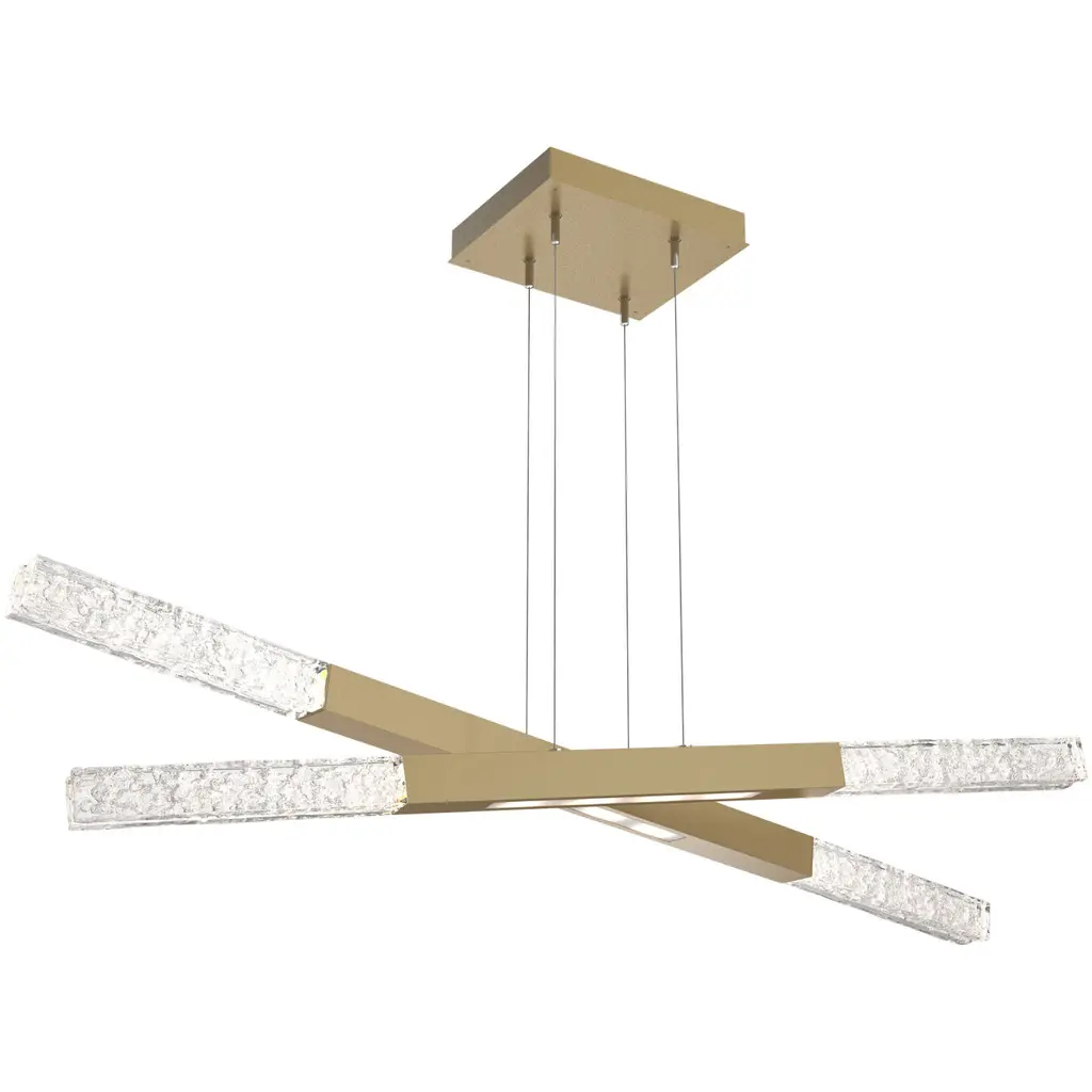 Adorn your space with a crisp glow. The Axis Moda Double LED Linear Suspension from Hammerton Studio is an elegant modular piece designed to fit perfectly with a range of styles and spaces. A set of thin wires drop from the ceiling and uphold two smooth metal bars and adorned with Axis cast glass tips. The angle and height of each bar can be adjusted at will, ensuring the perfect demonstration at all times. An integrated LED within the piece emits a bright and welcoming touch of light.