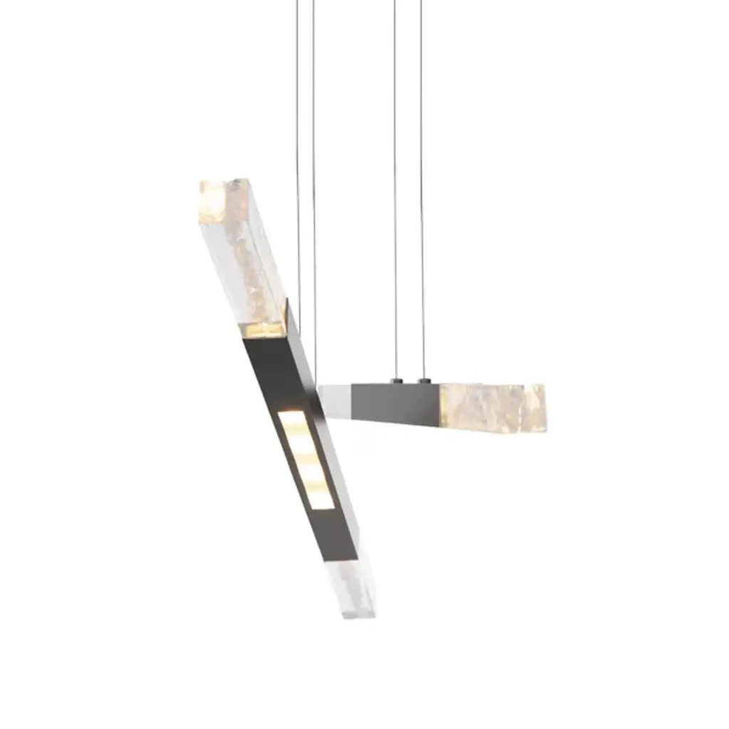 Adorn your space with a crisp glow. The Axis Moda Double LED Linear Suspension from Hammerton Studio is an elegant modular piece designed to fit perfectly with a range of styles and spaces. A set of thin wires drop from the ceiling and uphold two smooth metal bars and adorned with Axis cast glass tips. The angle and height of each bar can be adjusted at will, ensuring the perfect demonstration at all times. An integrated LED within the piece emits a bright and welcoming touch of light.