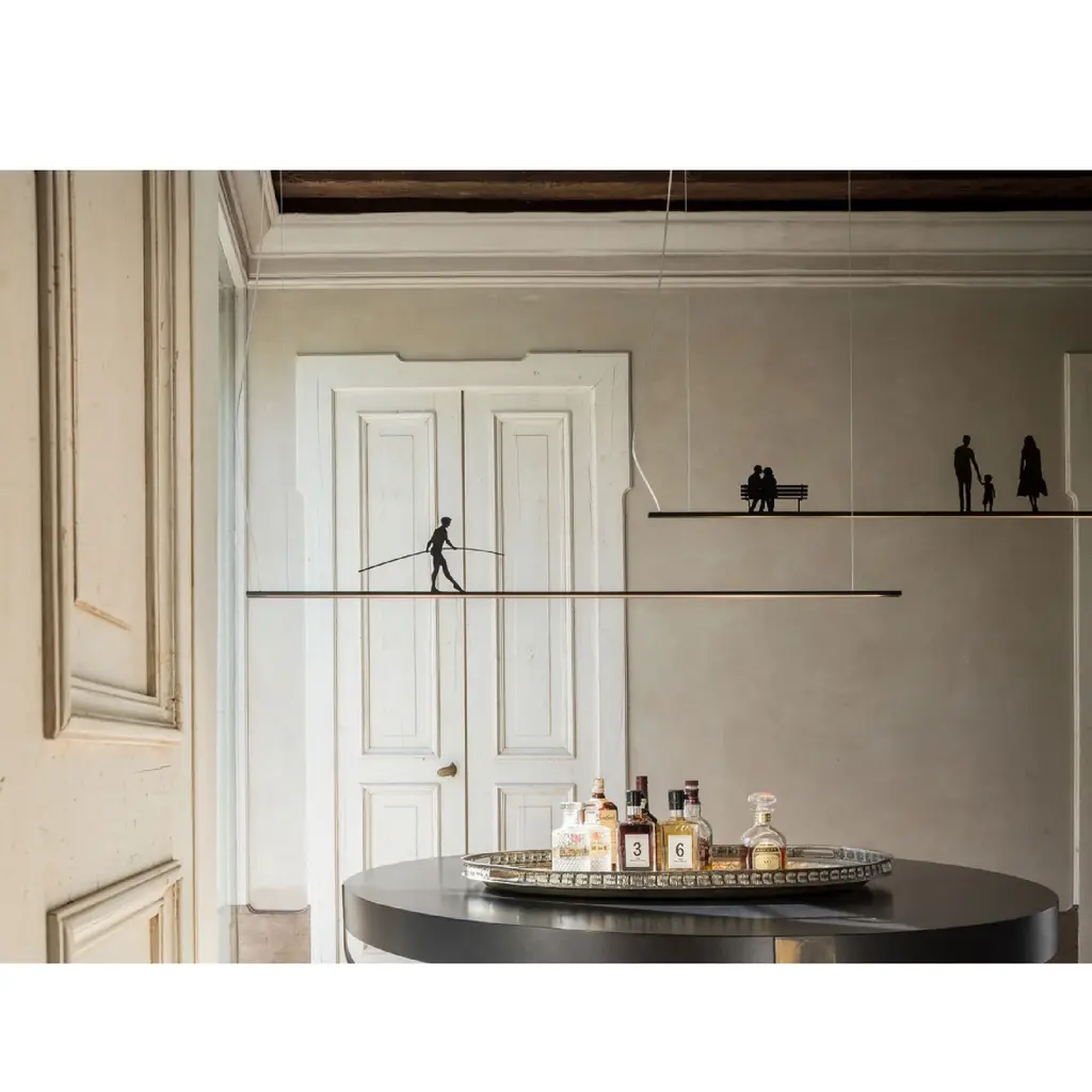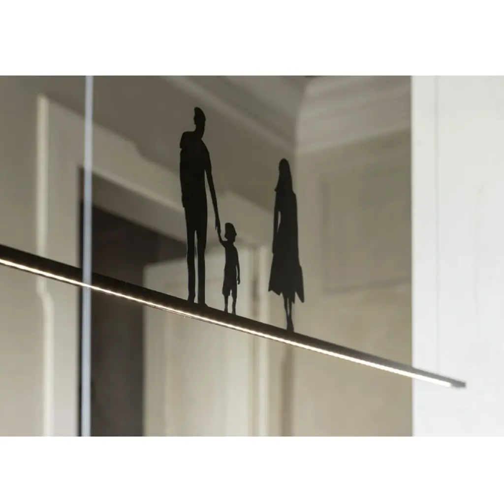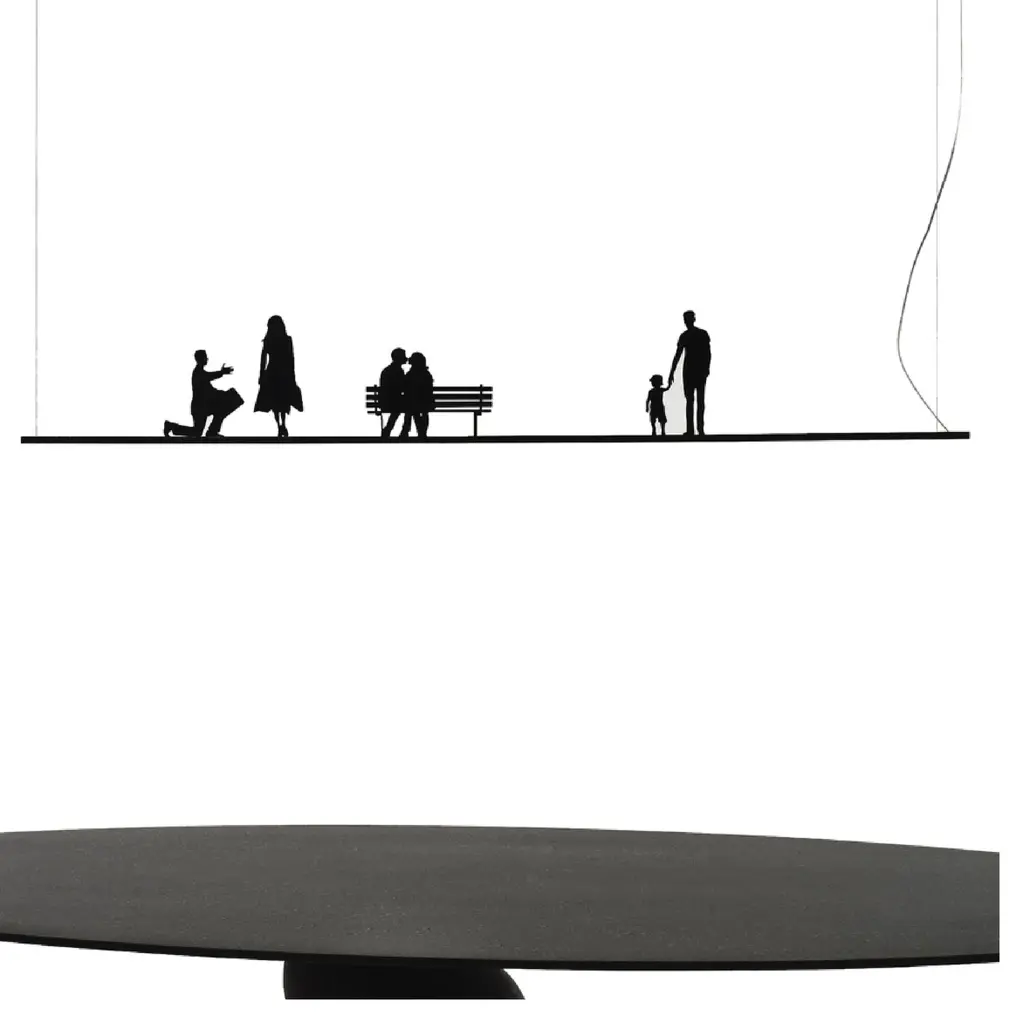 Introducing Phil, the Backlit Silhouette Hanging Lamp from Mogg. This black metal suspension lamp features a unique design with backlit silhouettes that tell captivating stories. Its LED light provides 3300 lumens of warm light to create a cozy atmosphere. Choose from 3 different decoration sets to personalize your space. Elevate your home decor with this exclusive piece.