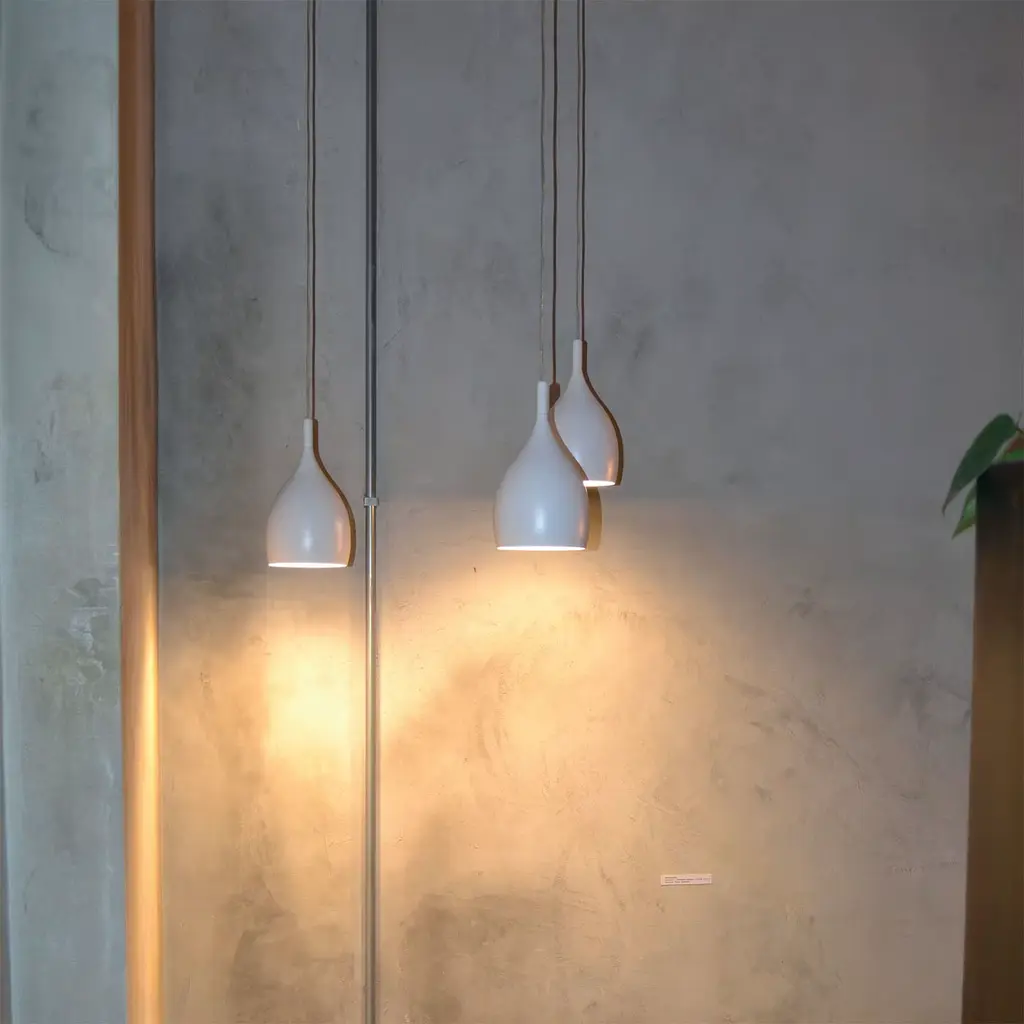 Suspension lamp made of turned aluminum sheet, with transparent power cable and with particular for decentralization included. Also available in polished chrome.