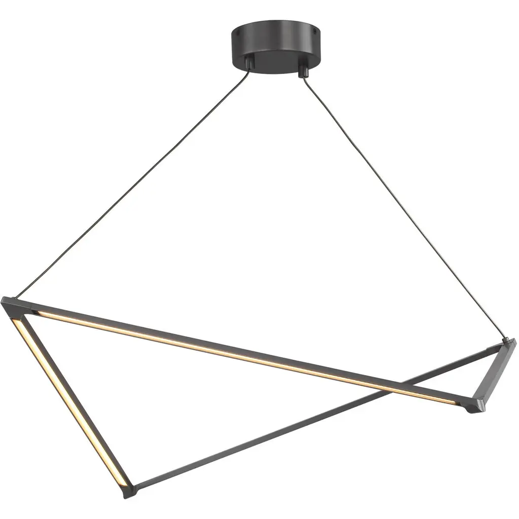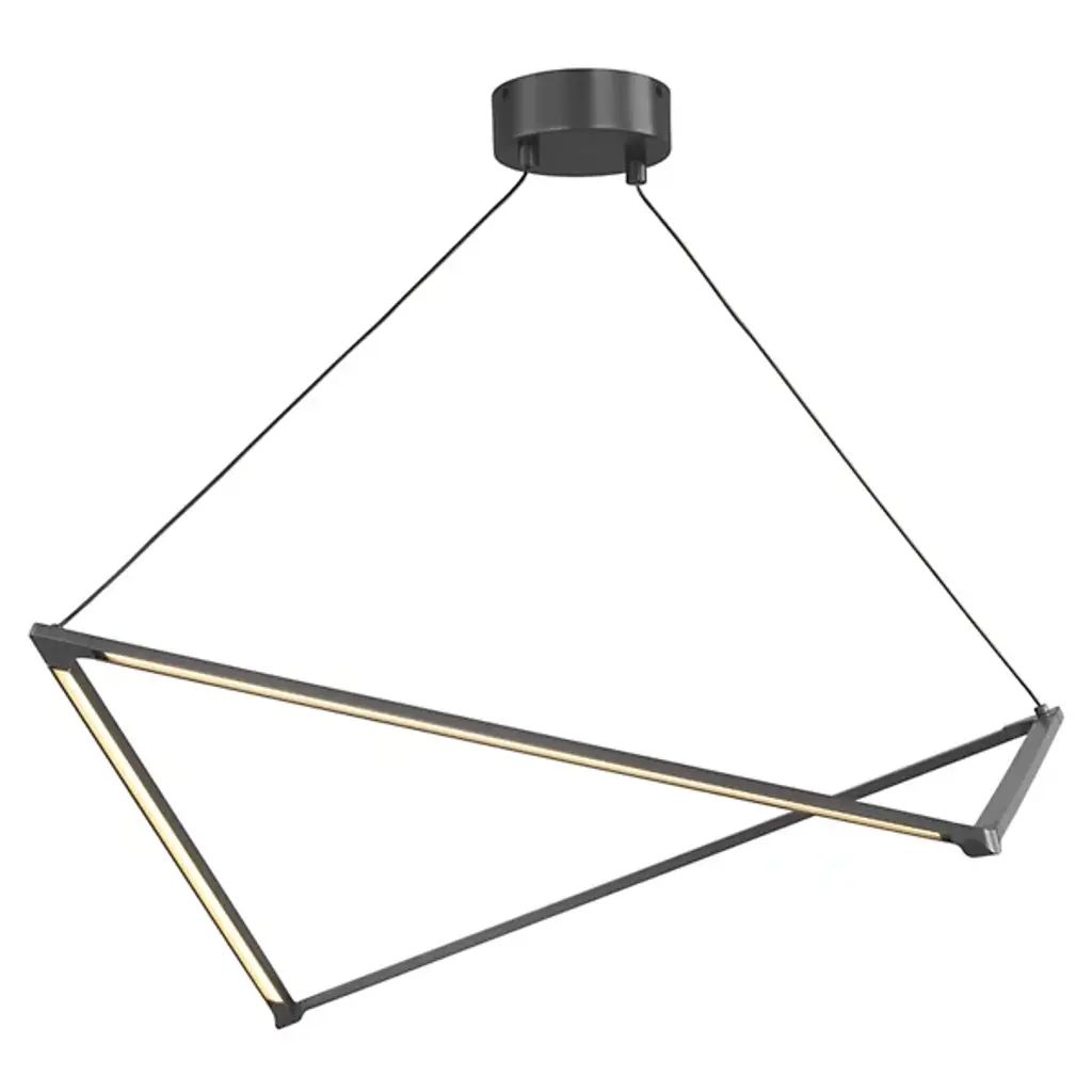 Lend your interiors a stylish, sculptural presence with the Balto Linear Suspension 277V from Visual Comfort Modern, formerly known as Tech Lighting, A minimalist design retained by a circular canopy, slender cables descend to support a triangular framework below. It’s an excellent choice over gathering spaces and appears to float when illuminated, while its integrated LED lamping extends across the lower edges of the frame, gentled by a translucent diffuser into extending a warm layer of pleasing light below the fixture.