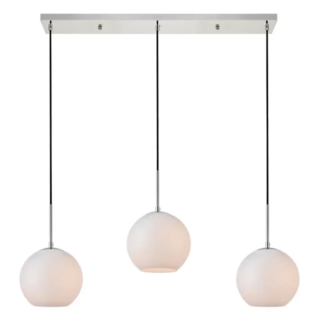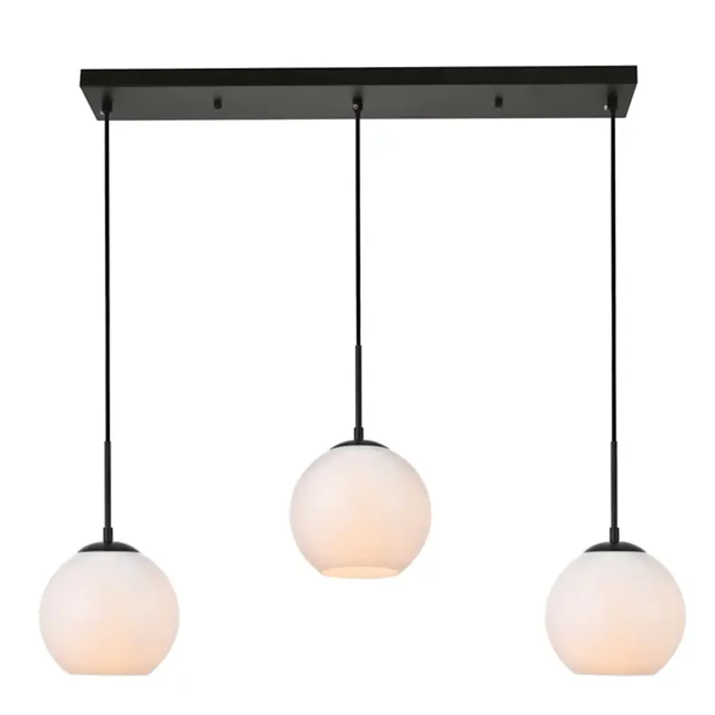 The Basia 3 Light Linear Suspension by Huxe combines refined style with practicality, adding cosmopolitan sophistication to any space. Perfect for entryways, hallways, bathrooms, kitchens, or closets, these lamps feature a sleek iron frame with a disk-shaped canopy. With its open center, the white spherical glass shade allows for effortless bulb replacement (filament-style bulb not included), ensuring convenient maintenance. Elevate your urban living with this product's harmonious blend of style and functionality, simplifying city life with elegance and ease.