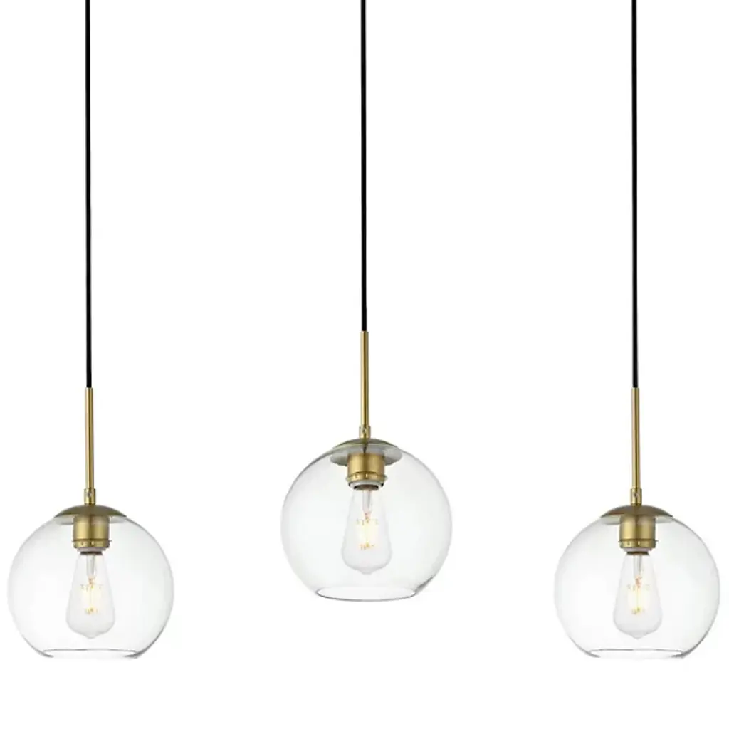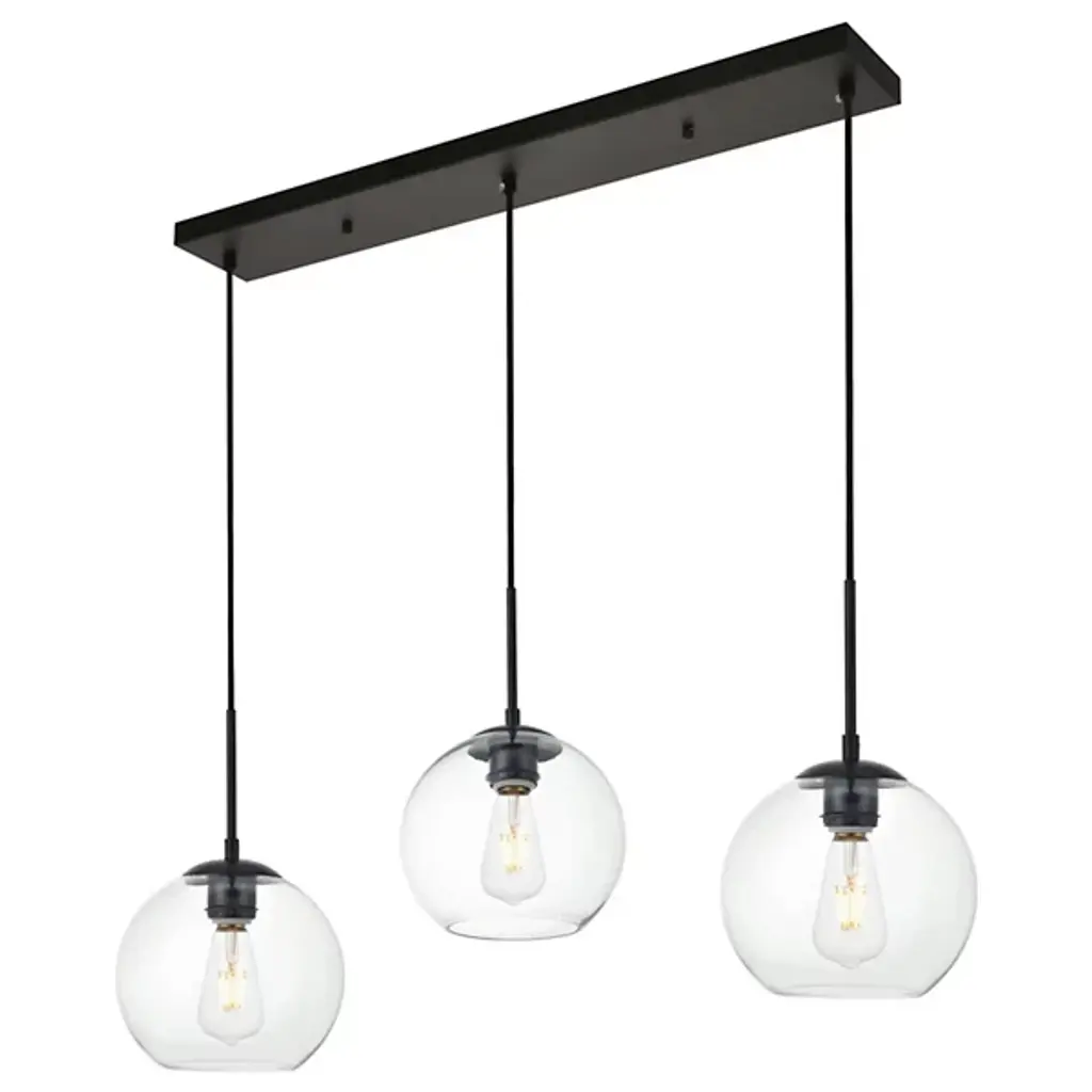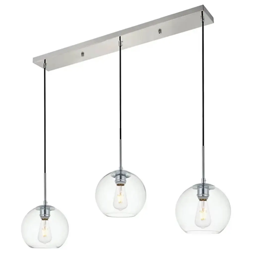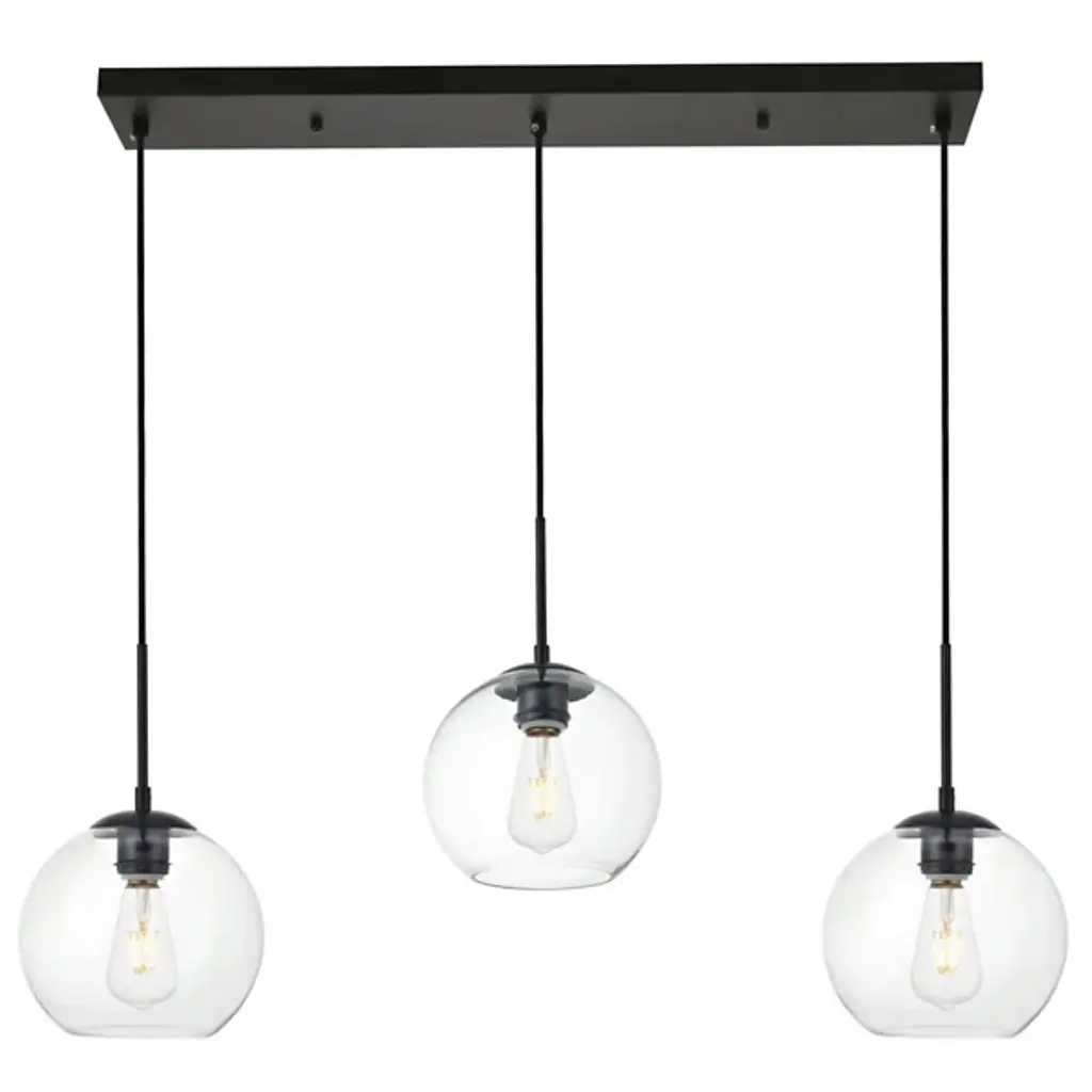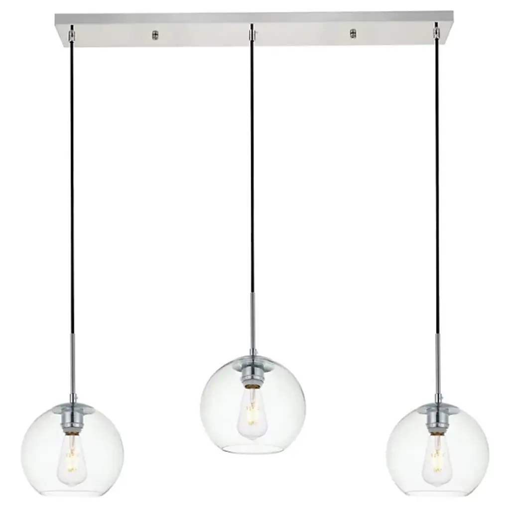 The Baxter Linear Suspension from Elegant Lighting is a precisely aligned trio of glass globes. These luminous spheres hang in perfect harmony, their transparent bodies revealing the warm-hearted bulbs within. This fixture's linear design speaks the language of symmetry and balance, making it an ideal illuminator for long dining tables or kitchen islands. The contrast between the substantial glass orbs and the barely-there cords creates an illusion of flotation.