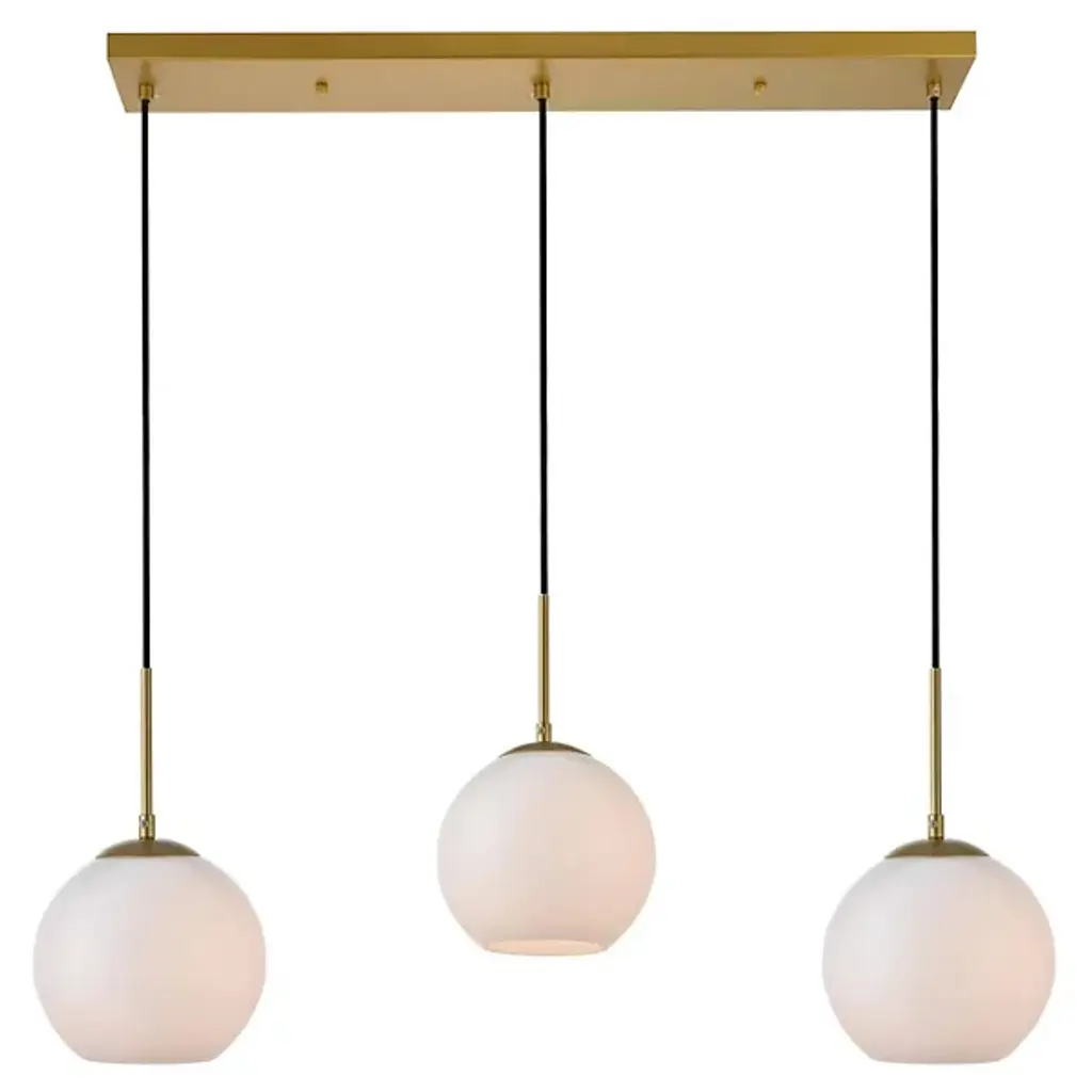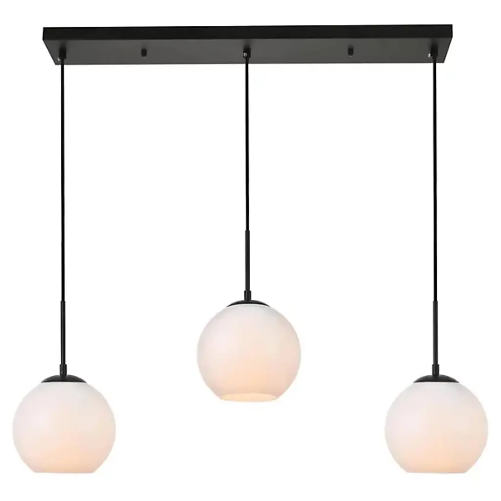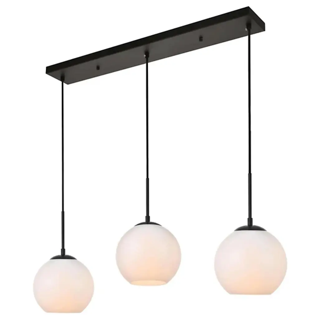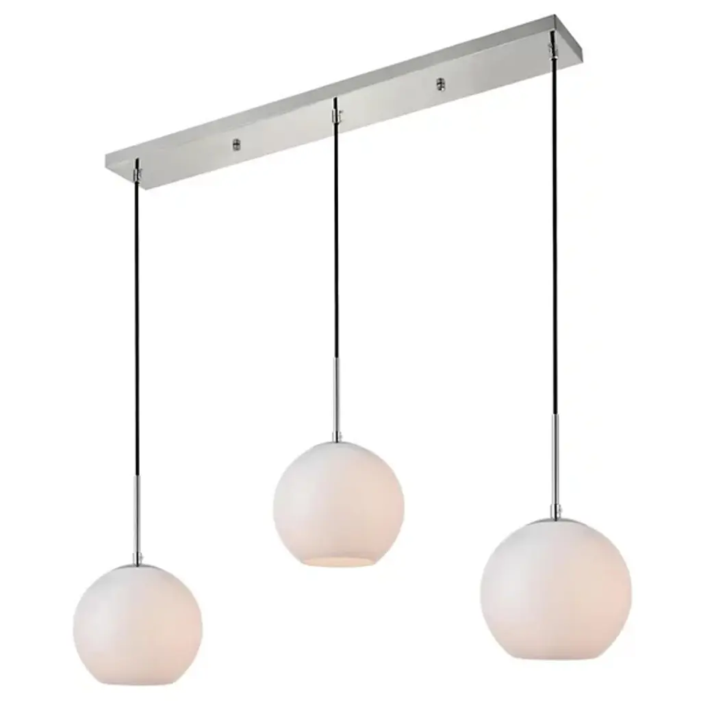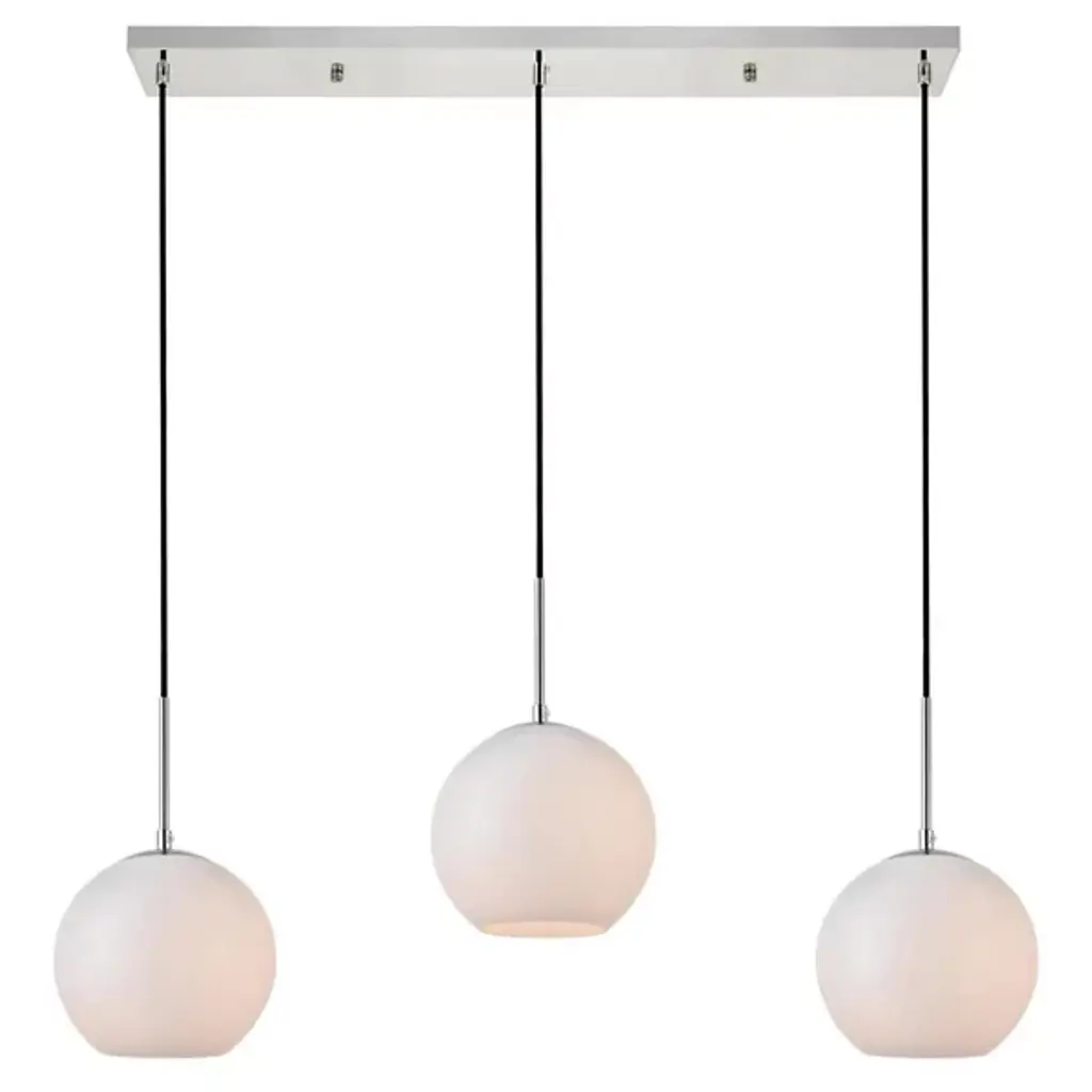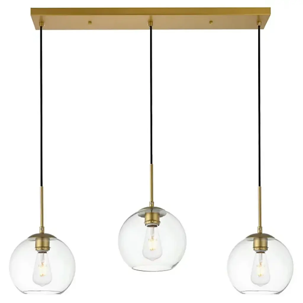 The Baxter Linear Suspension from Elegant Lighting is a precisely aligned trio of glass globes. These luminous spheres hang in perfect harmony, their transparent bodies revealing the warm-hearted bulbs within. This fixture's linear design speaks the language of symmetry and balance, making it an ideal illuminator for long dining tables or kitchen islands. The contrast between the substantial glass orbs and the barely-there cords creates an illusion of flotation.