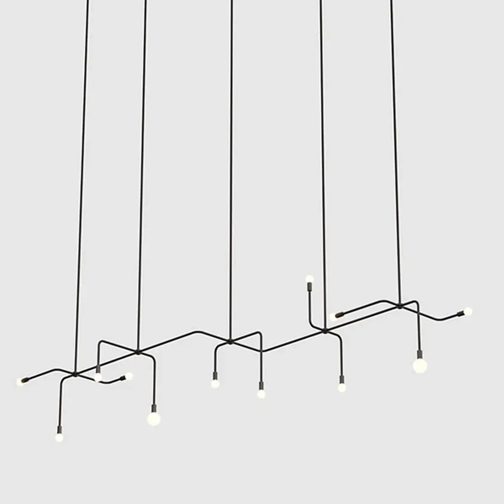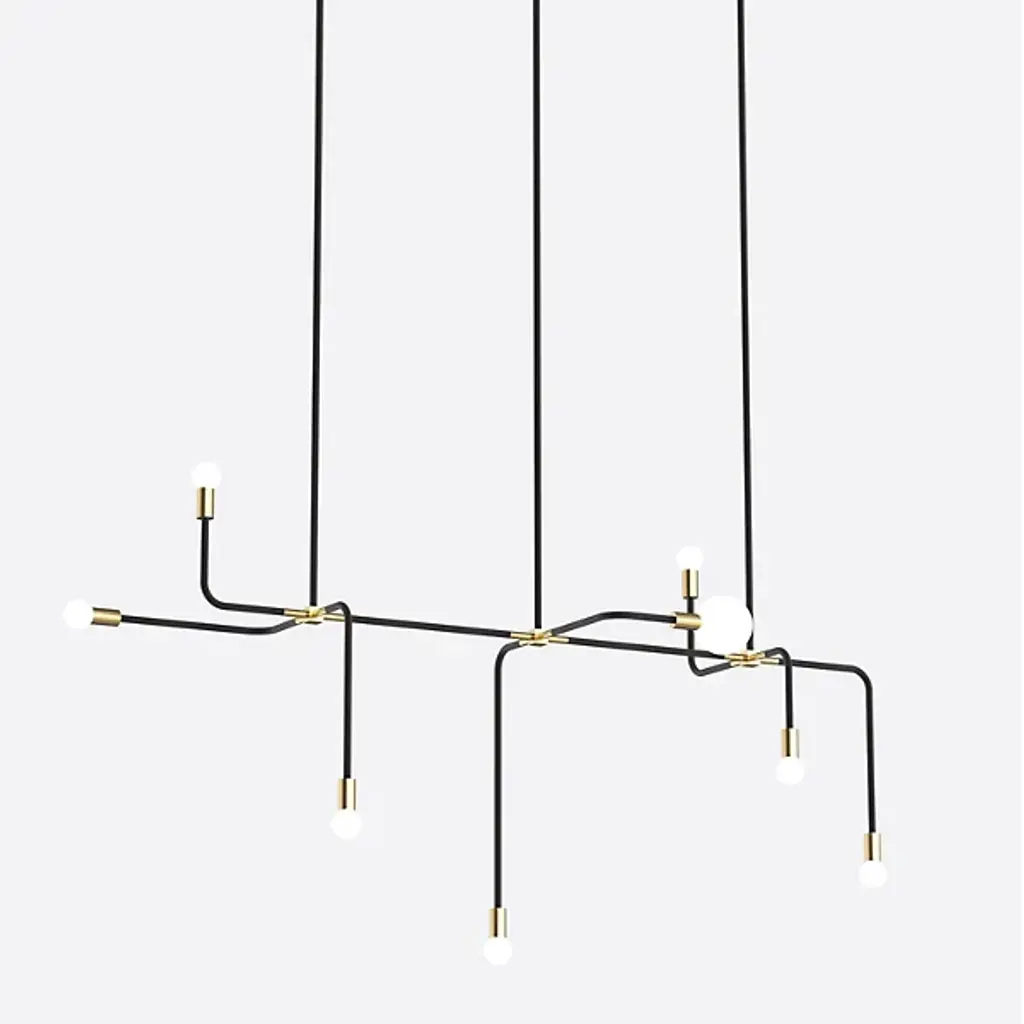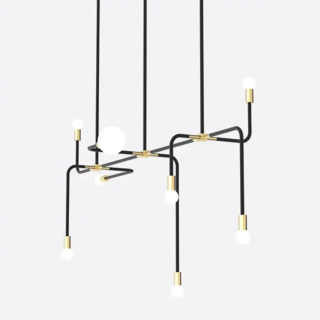 Elegant, artistic, expressive. Fuse the delightful forms of the Memphis movement with the bold patterns of traditional Chinese screens and you get the inspiring visual of the Beaubien Linear Suspension from Lambert & Fils. Designer Samuel Lambert brings a signature aesthetic that feels both humble and complex. Appearing to float in the air, the piece draws a graphic rectangular frame with a tubular metal frame. Short arms inside mesmerize in movement like the intricate pattern of a Chinese screen. Milk glass globes give the linear design an enchanting quality. The globes appear like the bright, exciting shapes of a Memphis design from the 80s. Lit with bright LEDs, the globes produce clean illumination that fills the room with warm comfort.