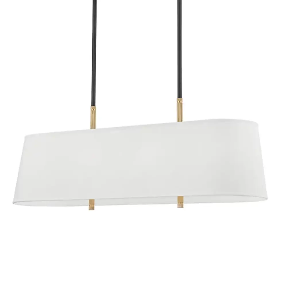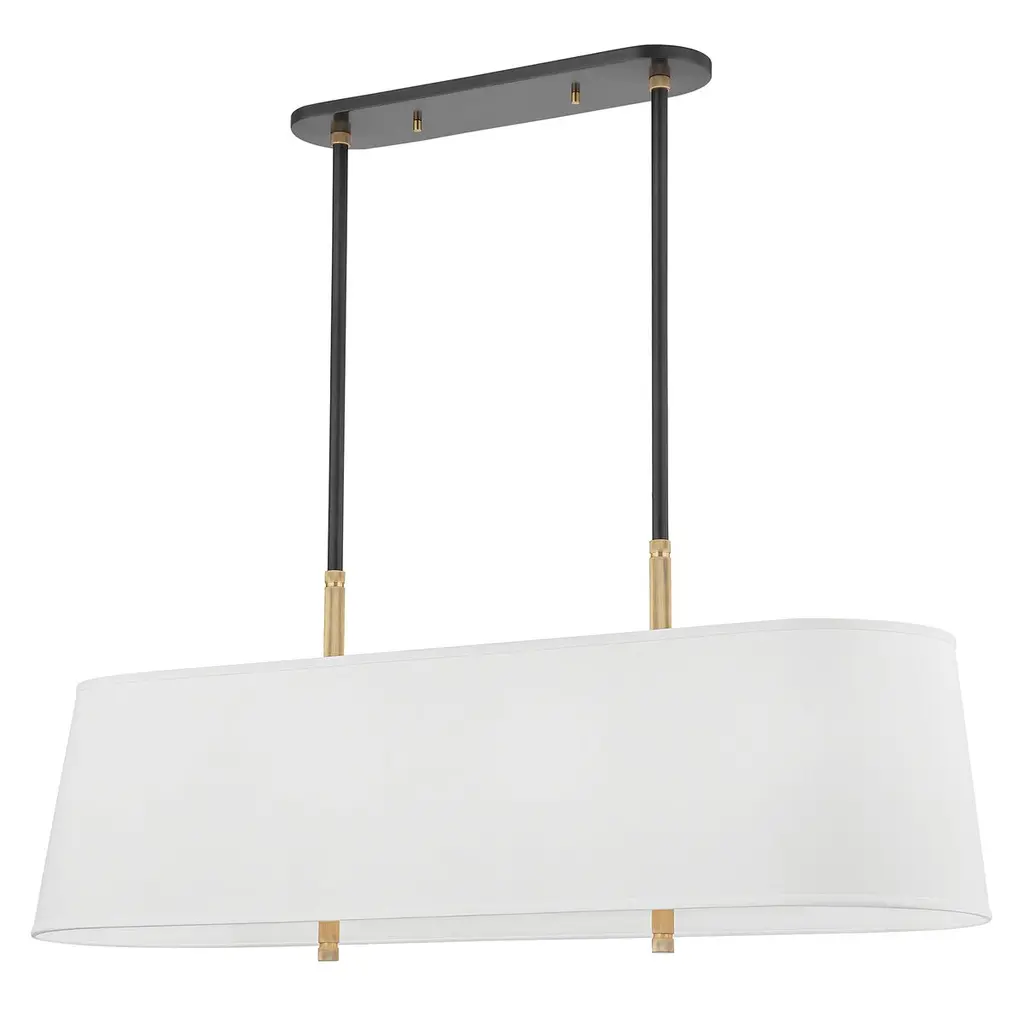 Simple and sleek, the Bowery Linear Suspension from Hudson Valley Lighting creates a comforting layer of light as it hangs from the ceiling in your modern home. Workable with a range of rooms and home styles, this piece features an oval ceiling mount and a pair of downrods made of smooth metal. A large Belgian linen shade sits below, holding a set of eight crisp bulbs that emanate a warm ambient light.
