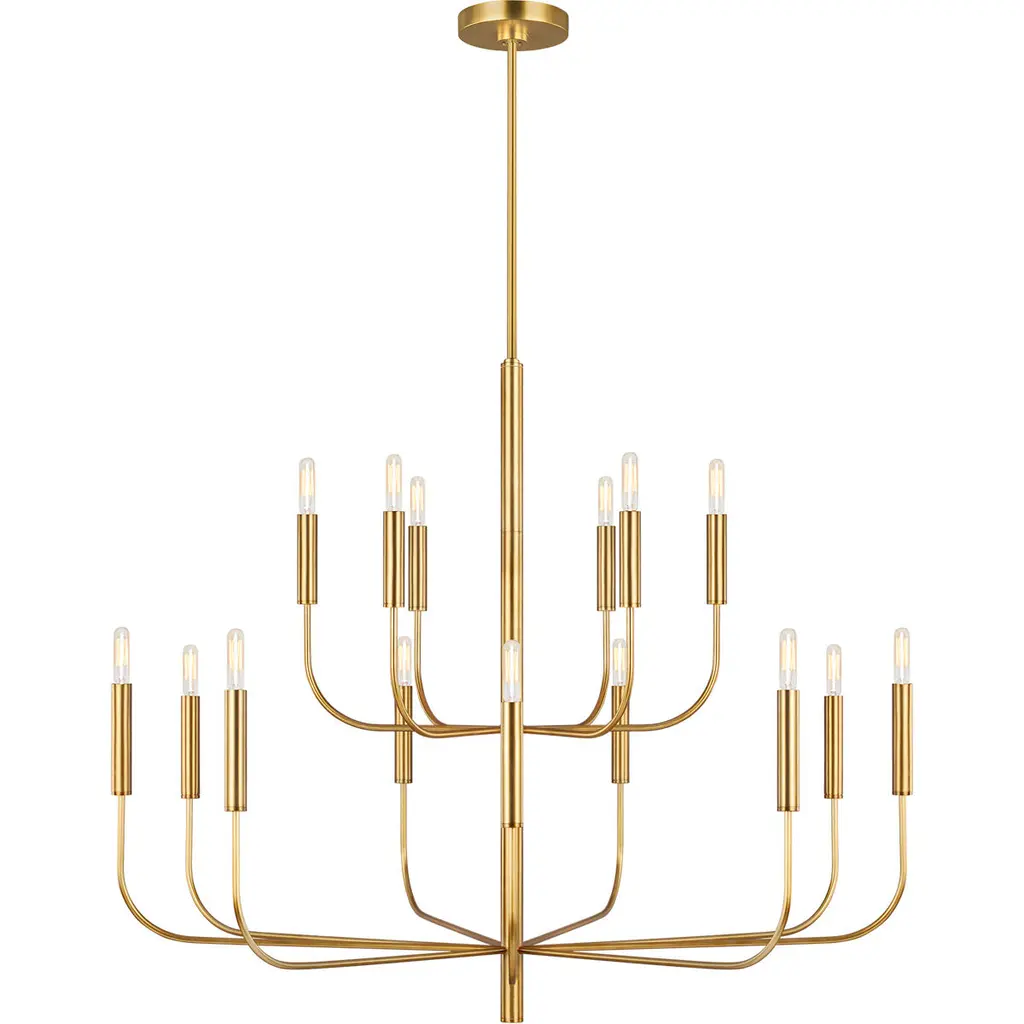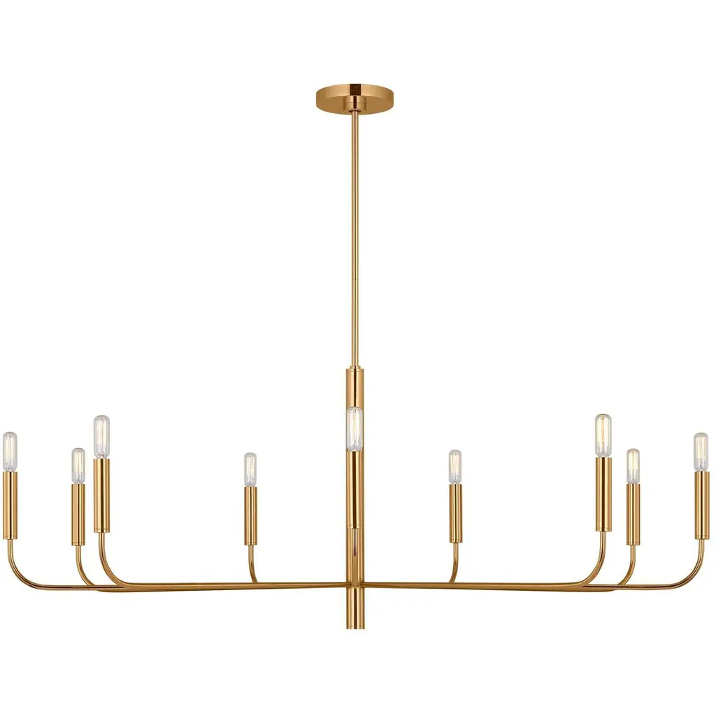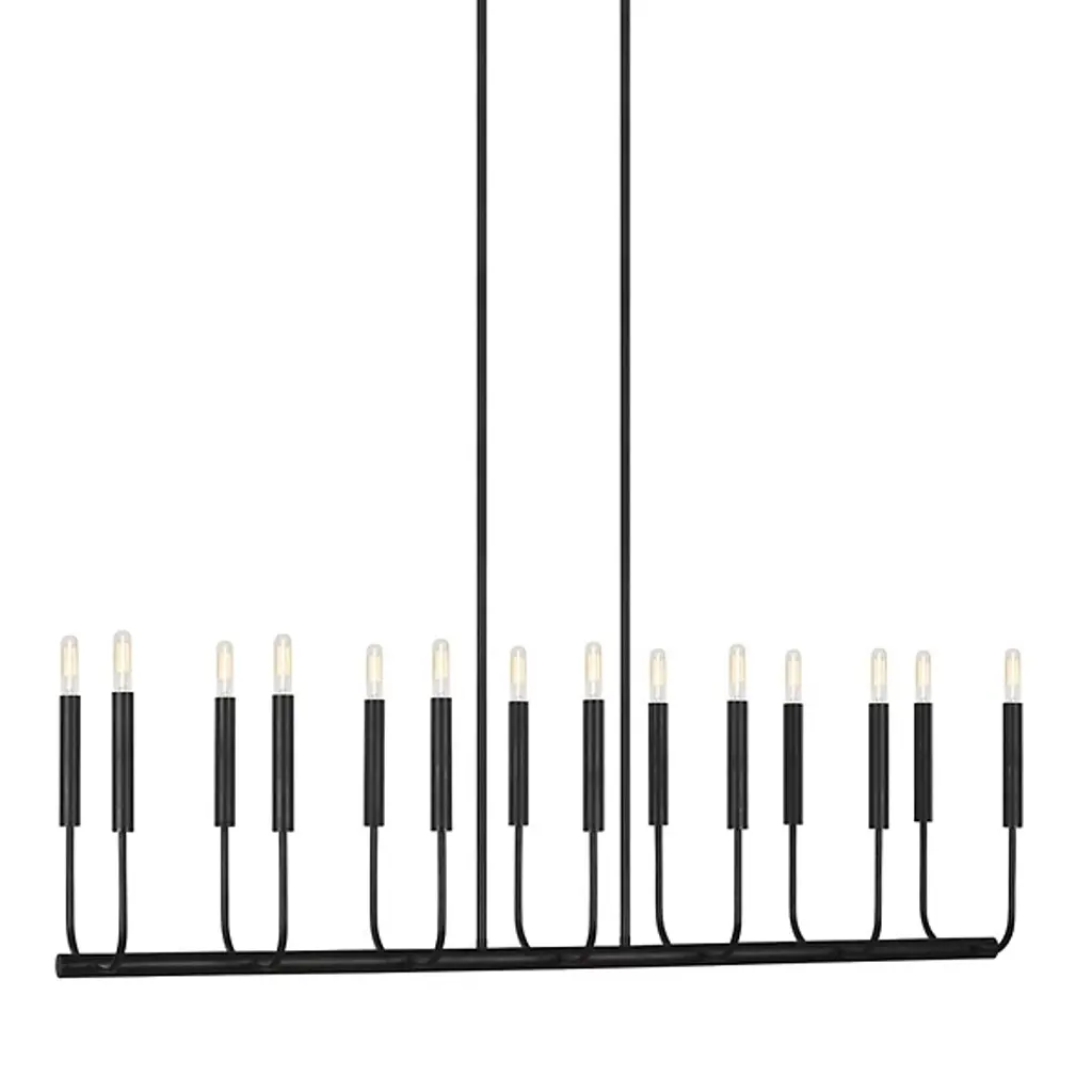 Refined, handsome, and pleasantly stylish. Everything about the Brianna Linear Suspension from ED Ellen Degeneres feels precise and uniform – 2 qualities guests will appreciate as they bask under its light. Pairs of bent arms appear to flow from one side to another, anchored by a sharp cylindrical body. The subtlety of its dual suspension and geometric canopy add to the neatness in which the piece portrays itself. With candelabra bulbs atop slender lamp holders, a lavish glow permeates out, appearing like abstracted, figural silhouettes.
