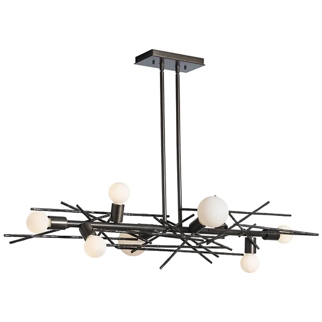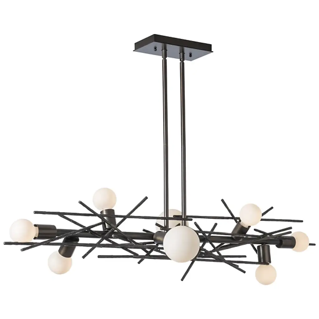 Embodying Hubbardton Forge's commitment to high-quality craftsmanship, the Brindille 8-Light Linear Suspension is a showcase of style and substance. Meticulously handmade in Vermont, USA, this transitional fixture exhibits a linear design forged in robust steel. The unique arrangement of exposed bulbs creates a warm and inviting illumination ideal for various rooms of your home. Though it exhibits a minimalistic silhouette, the Brindille Pendant manages to make a distinct impression with its radiant allure and well-balanced proportions.